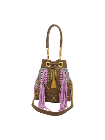 Borsa di piccole dimensioni Marc Ellis realizzata in stoffa a scacchi con frange in ecopelliccia,...
