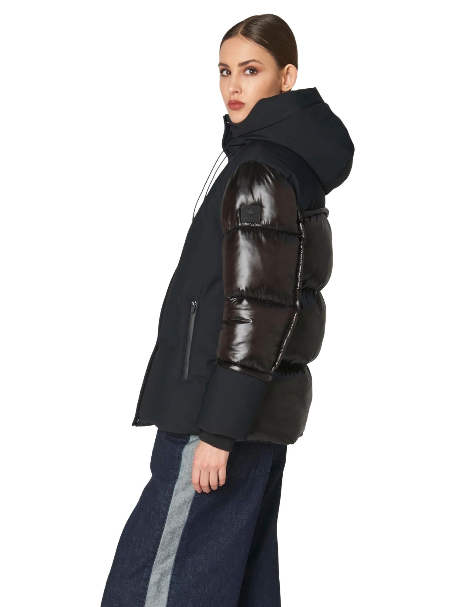 Piumino reversibile Canadian realizzato ed imbottito in poliestere con inserti trapuntati, chiusura tramite zip frontali, cappuccio regolabile, doppia tasca e logo sul braccio.