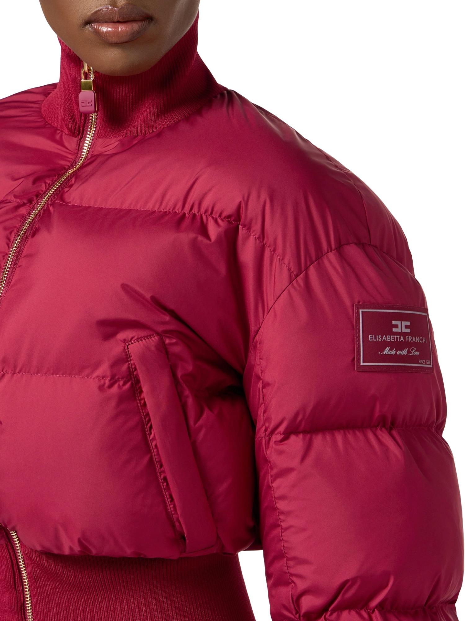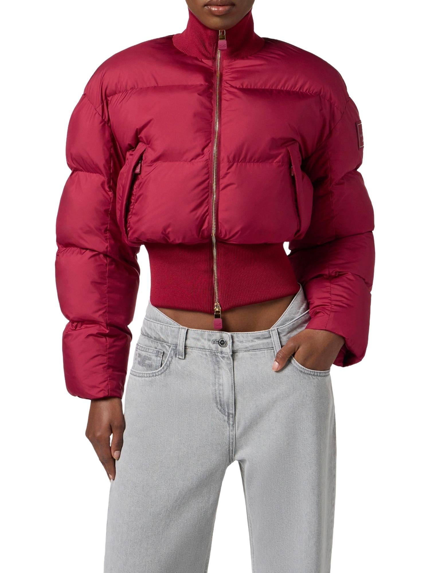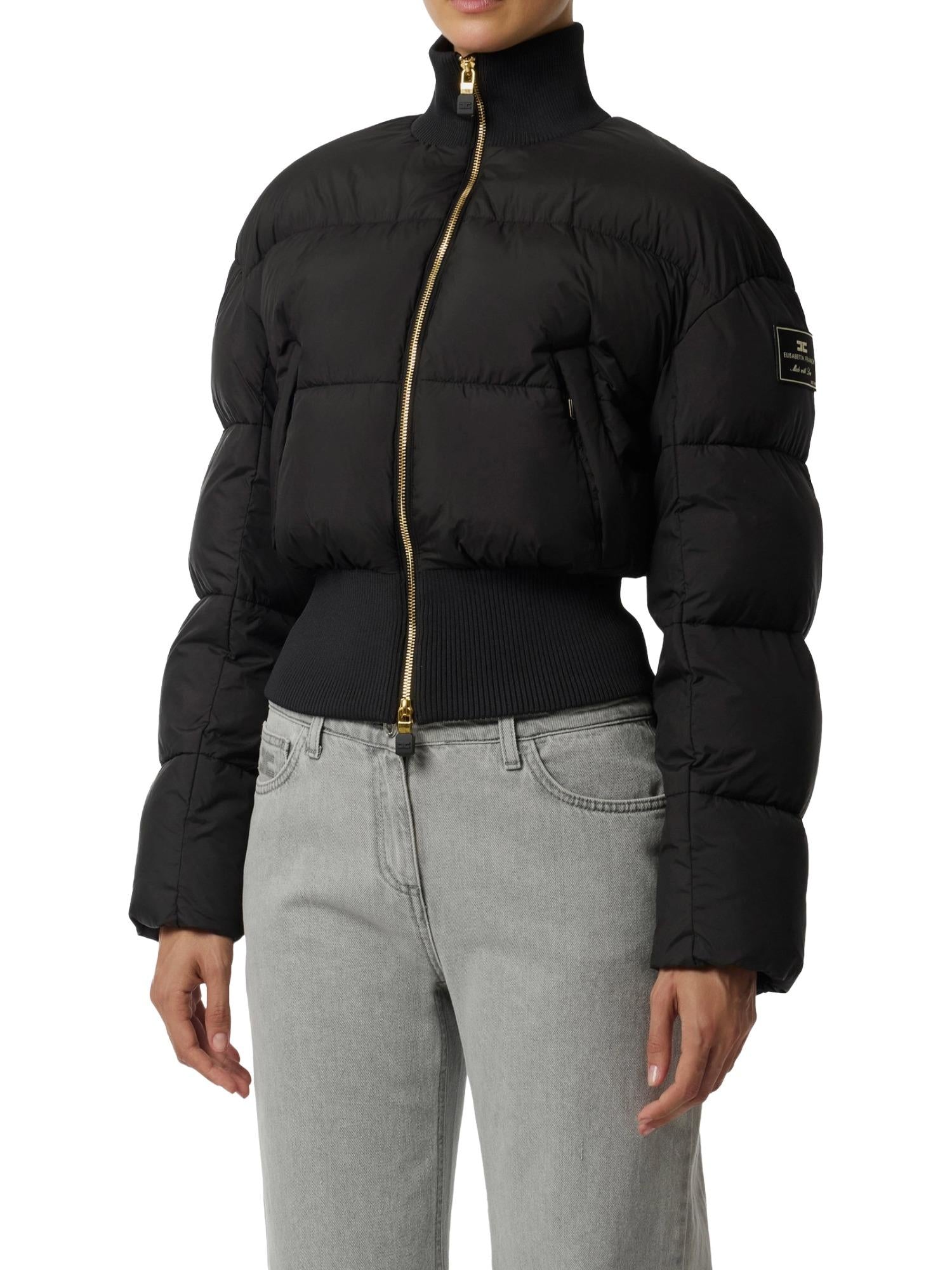 Doudoune courte Elisabetta Franchi réalisée en tissu technique et rembourrée en polyester avec fermeture zippée à col montant, ourlet côtelé, poches latérales et logo appliqué sur l'épaule.