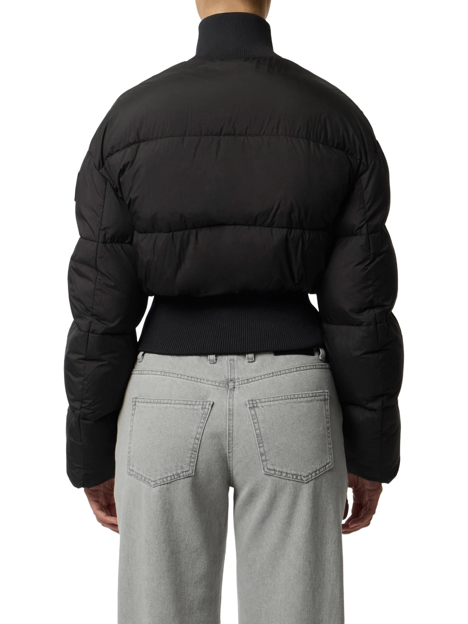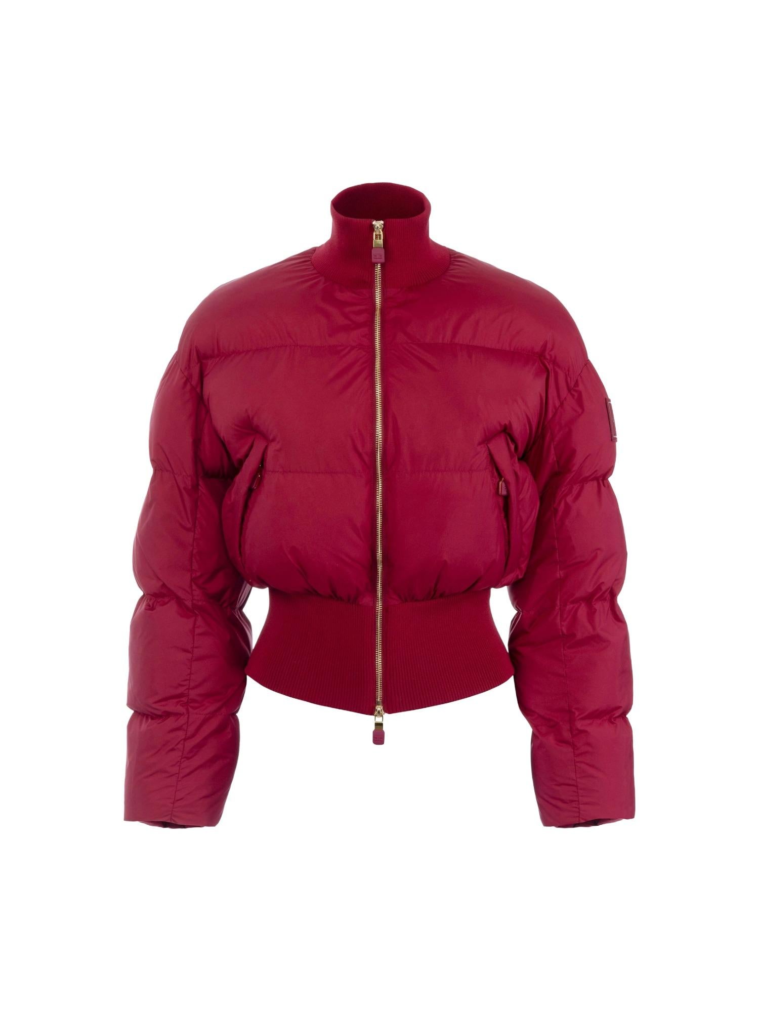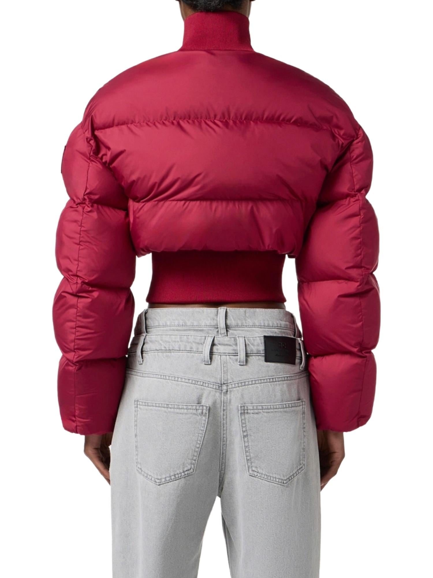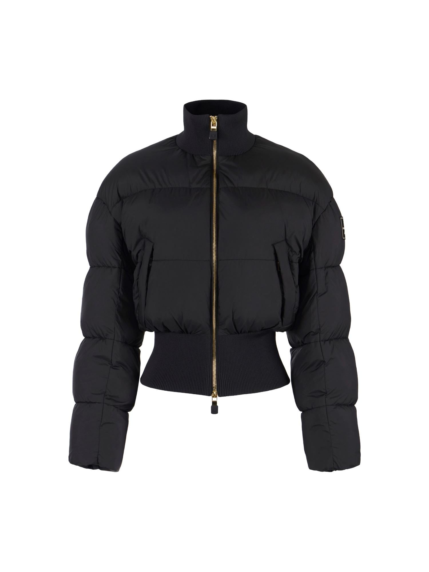 Doudoune courte Elisabetta Franchi réalisée en tissu technique et rembourrée en polyester avec fermeture zippée à col montant, ourlet côtelé, poches latérales et logo appliqué sur l'épaule.