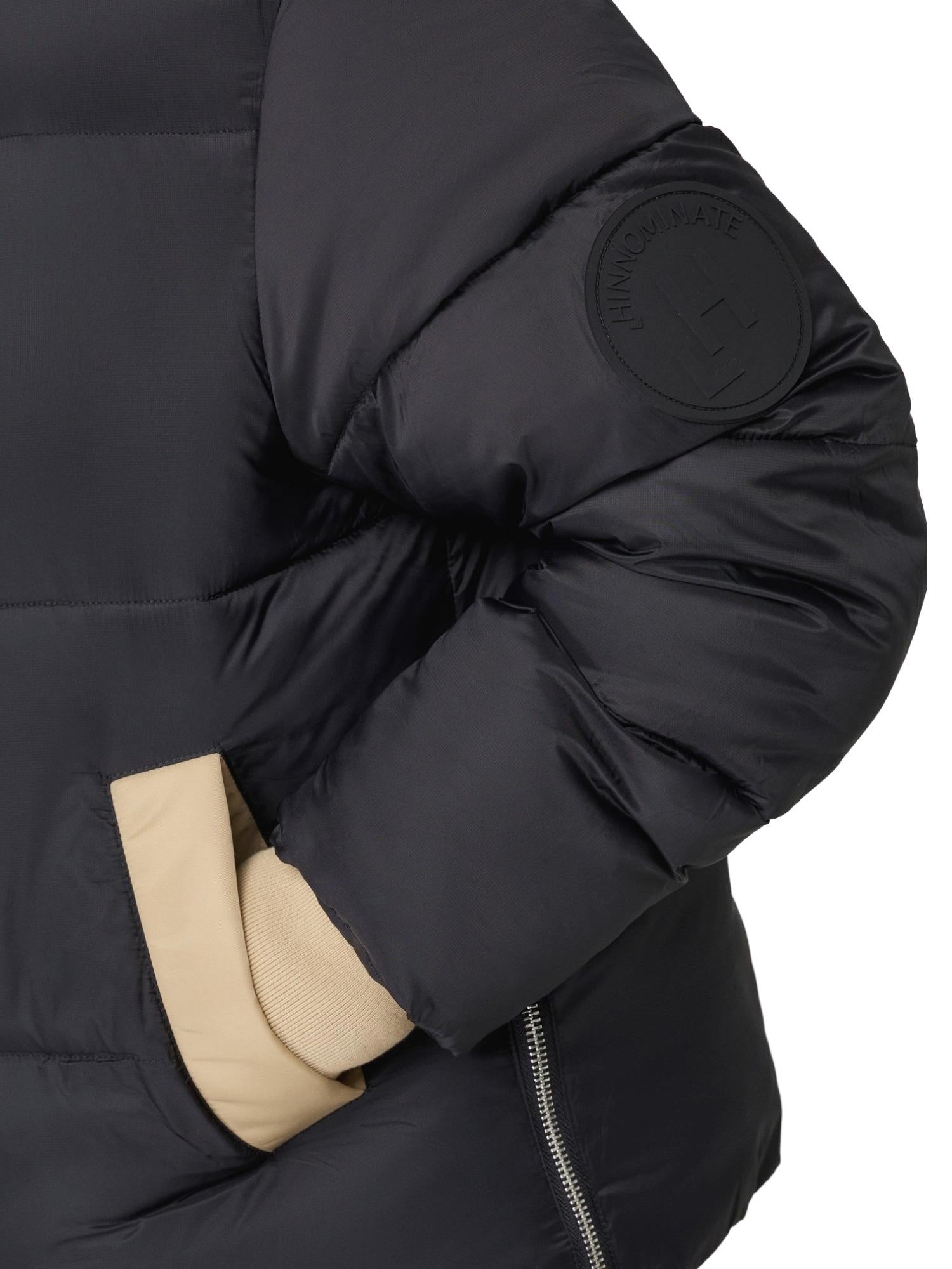 Doudoune matelassée Hinnominate réalisée en nylon avec fermeture zippée frontale, col college, poches latérales et ourlet et poignets contrastants.