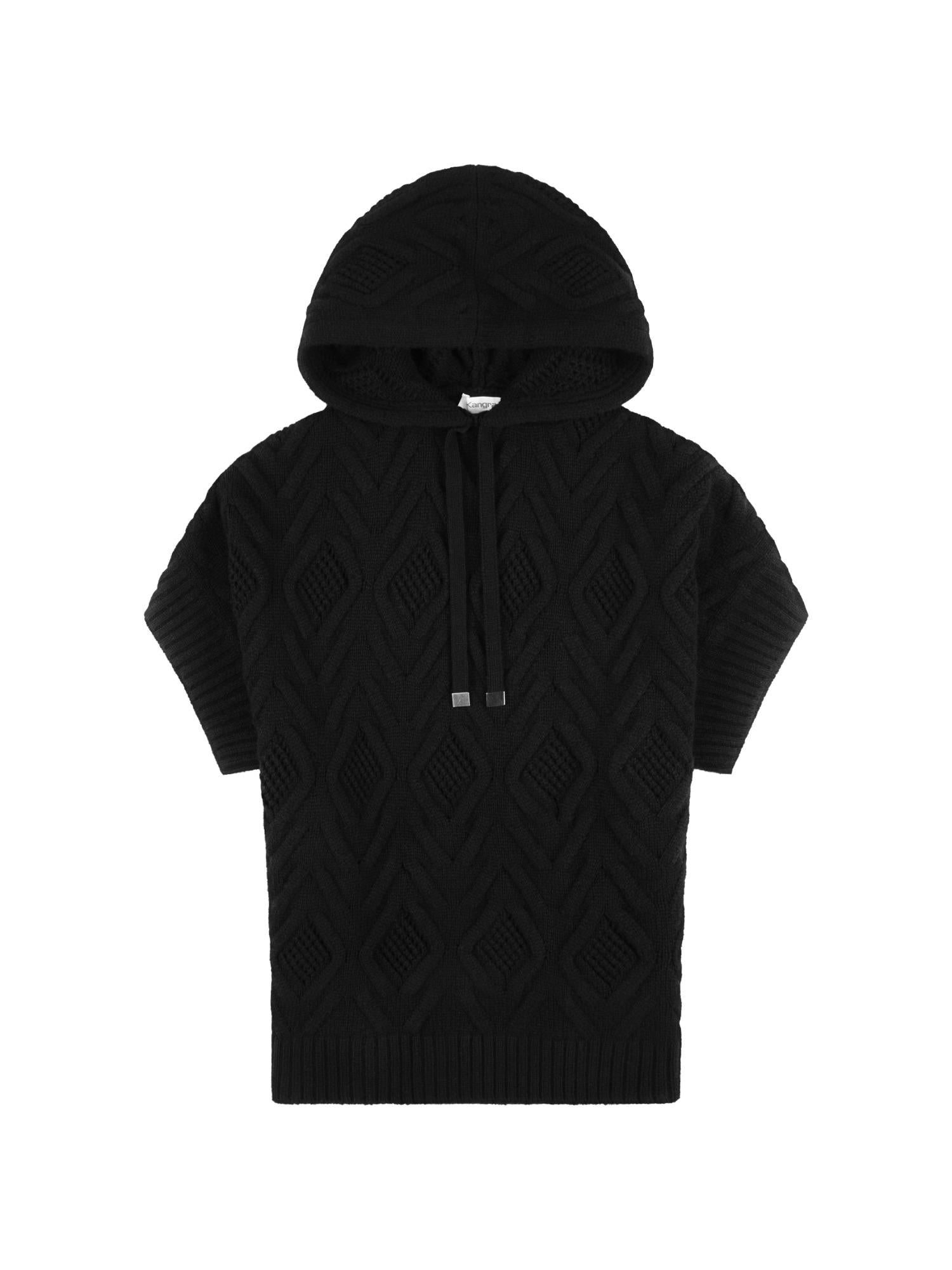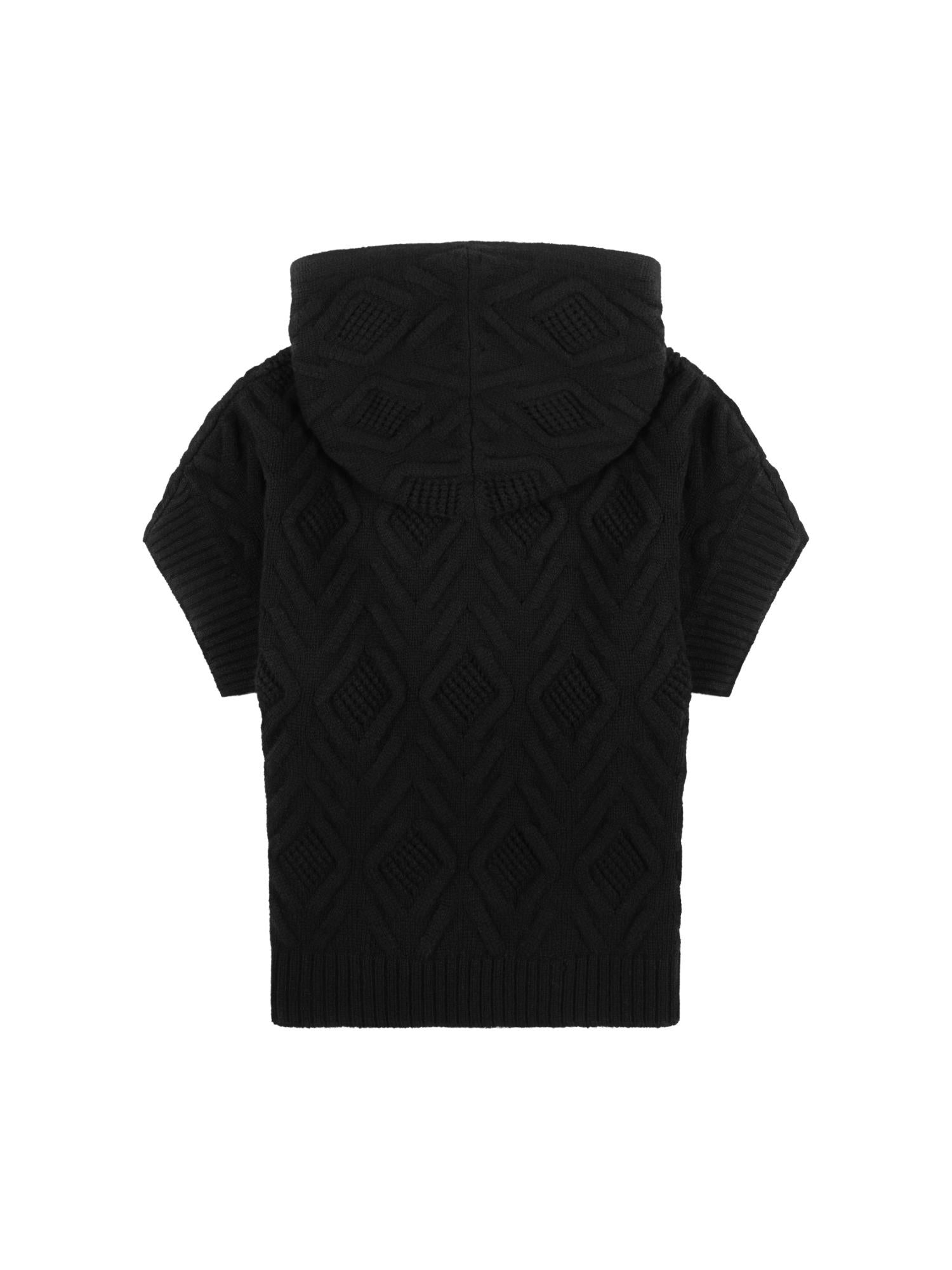Felpa con cappuccio smanicata Kangra realizzata in pura lana lavorata a losanghe dalla vestibilità oversize.