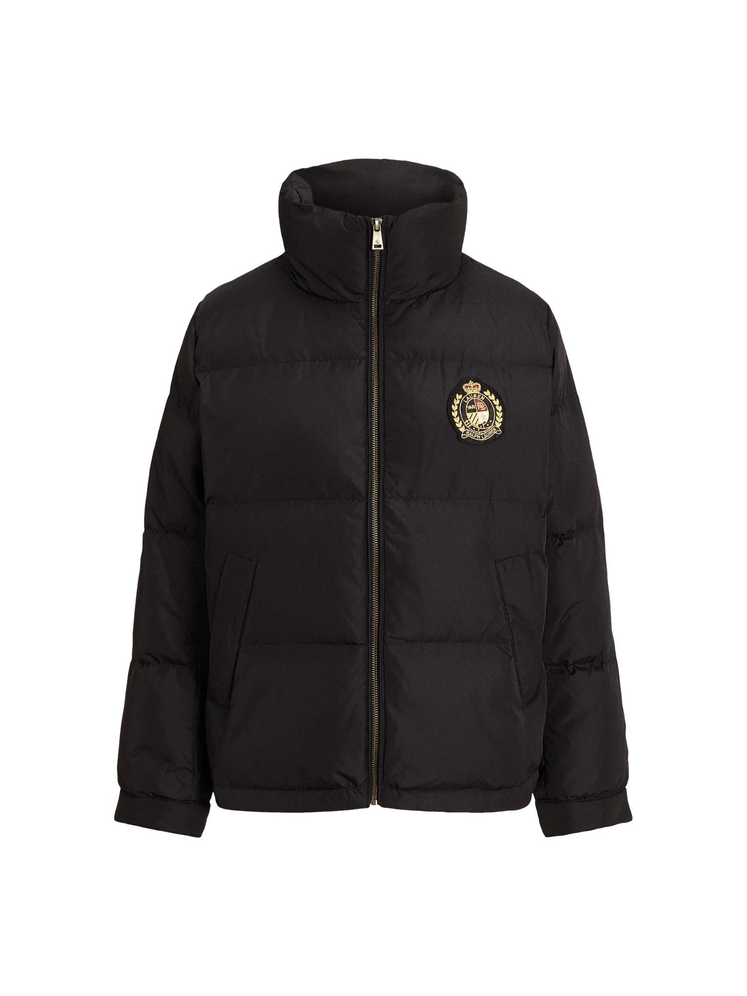 Doudoune courte Lauren Ralph Lauren réalisée en tissu technique avec rembourrage en duvet de canard, fermeture zippée frontale, col montant, poches latérales et logo appliqué sur la poitrine.