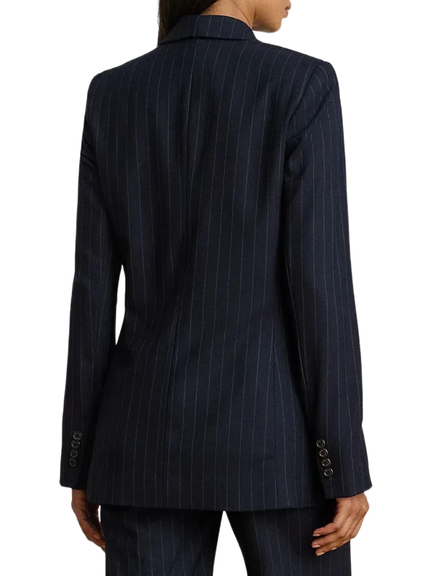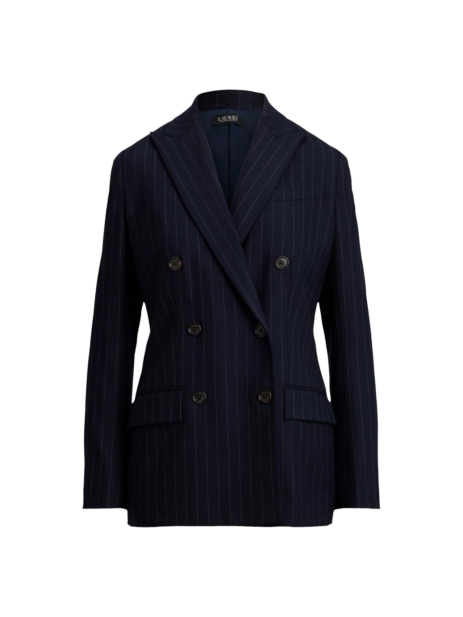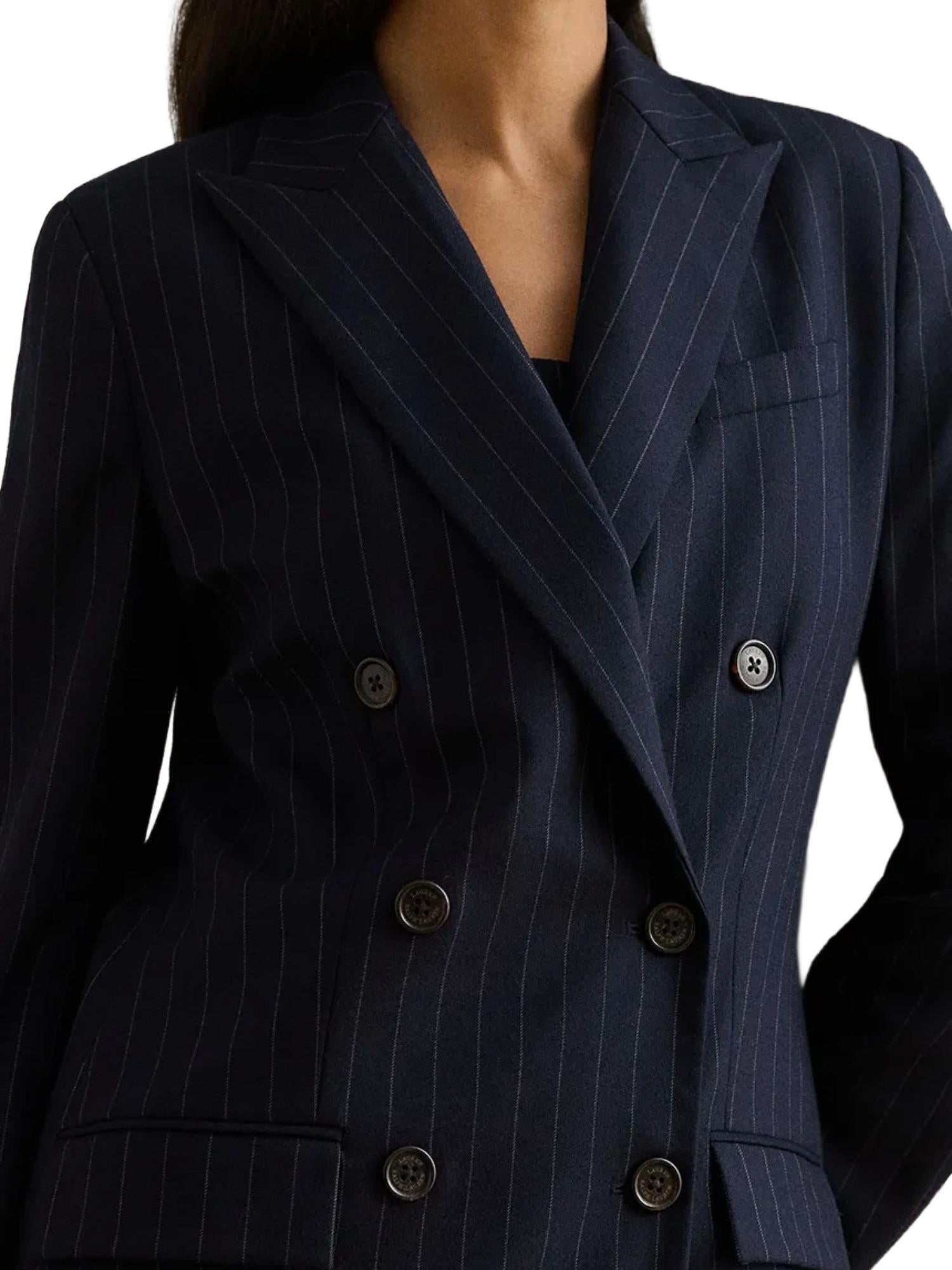 Veste à rayures Lauren Ralph Lauren réalisée en mélange de laine avec fermeture croisée par boutons, revers en pointe et poches à rabat à l'avant.