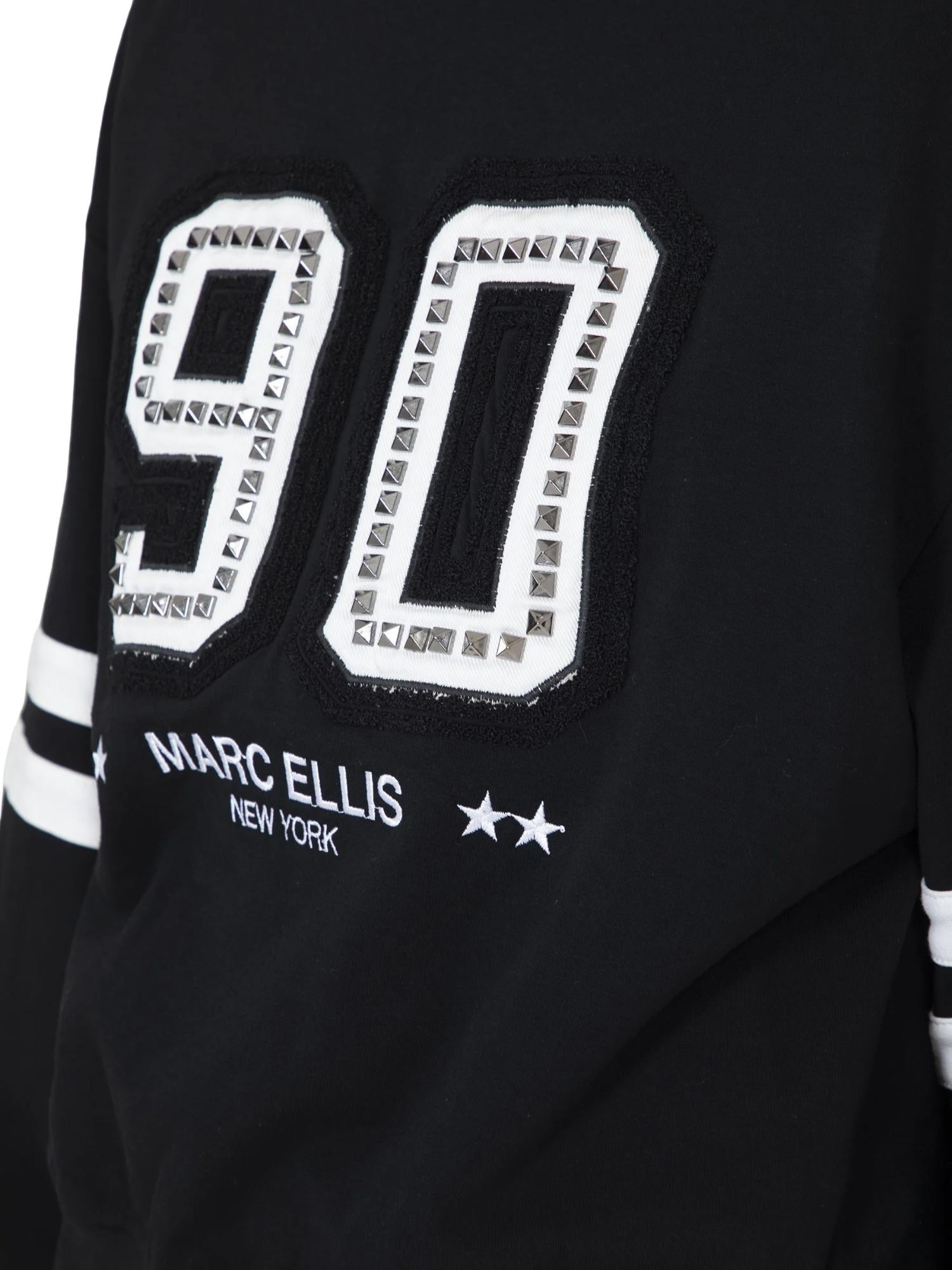 Felpa oversize a girocollo Marc Ellis realizzata in cotone elasticizzato con 90 frontale e borchie applicate.