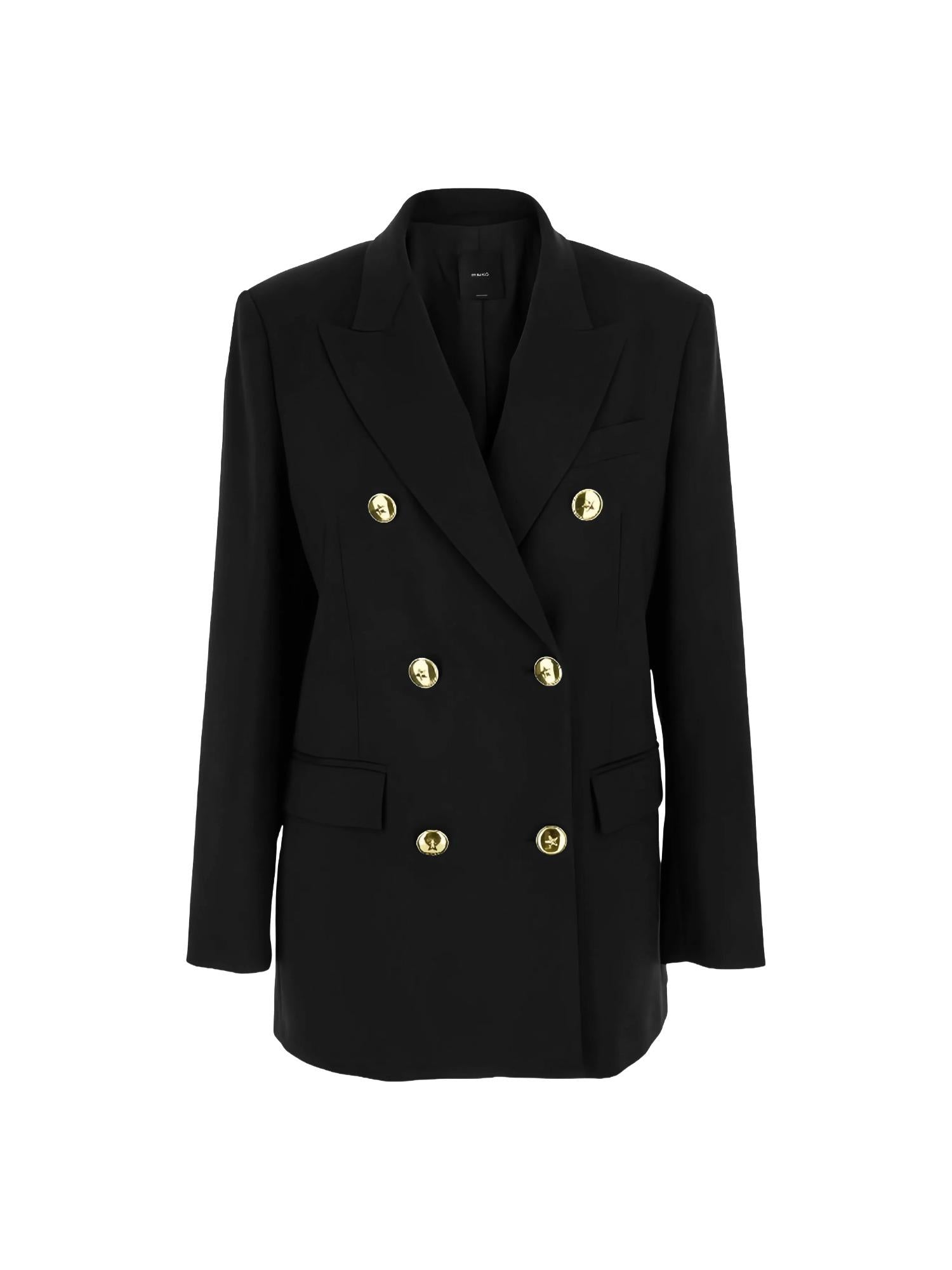 Giacca Pinko realizzata in misto lana con chiusura doppiopetto tramite bottoni oro, revers a lancia e tasche con patta.