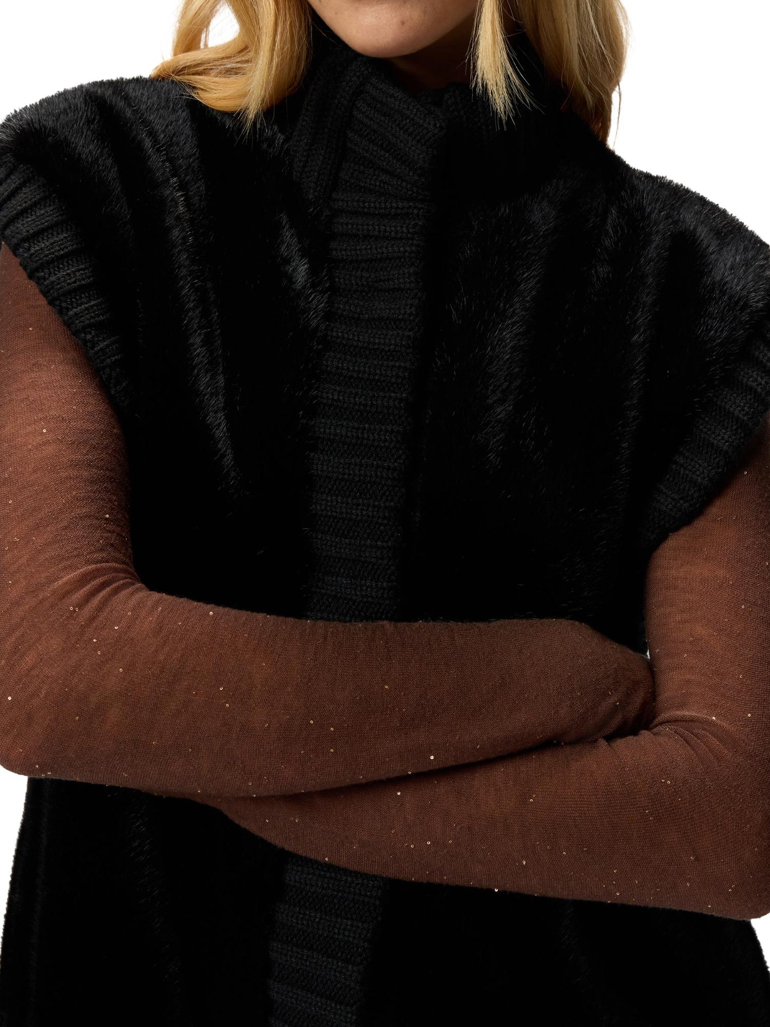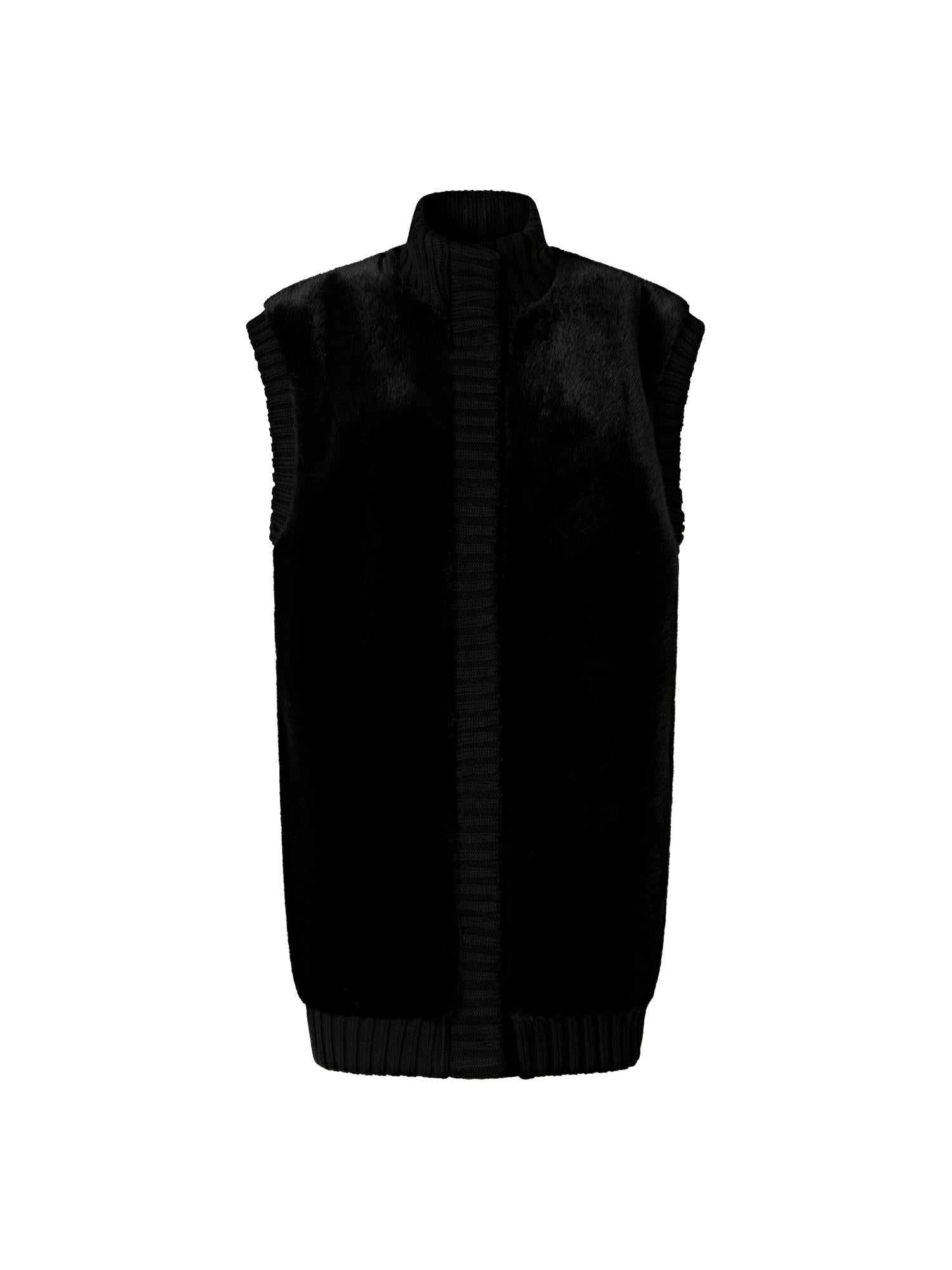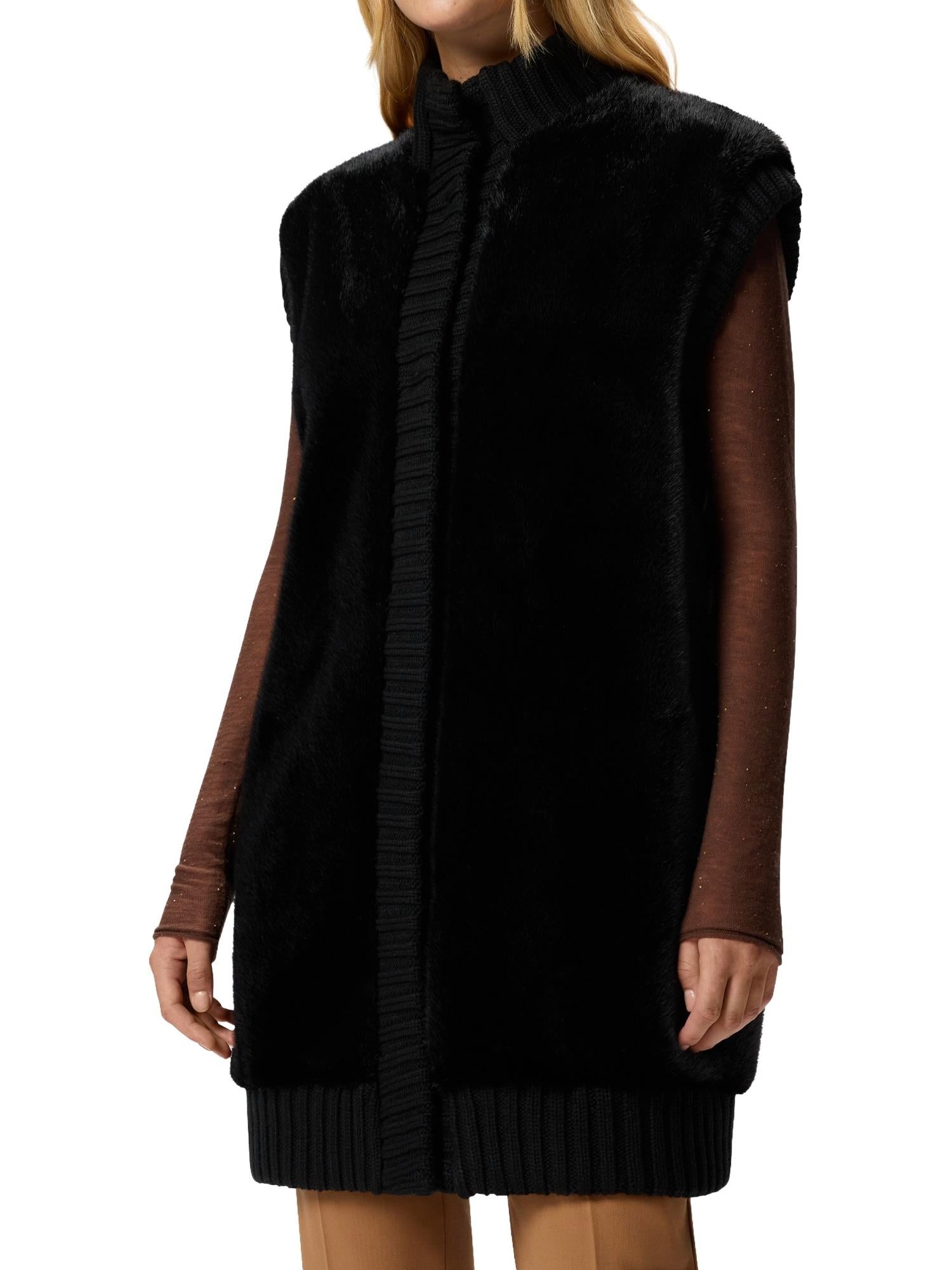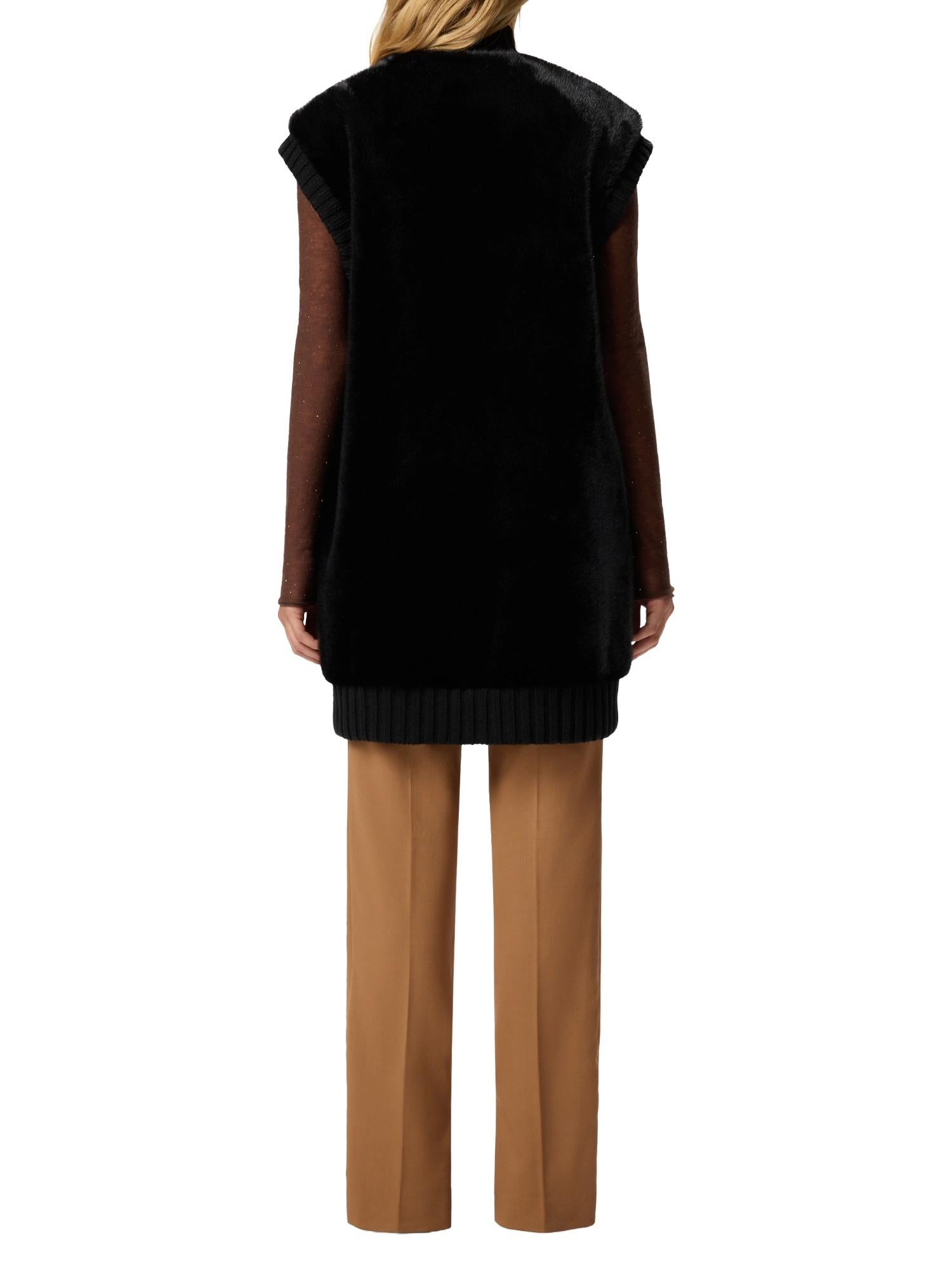 Gilet long Pinko réalisé en fausse fourrure avec des bordures en mélange laine, fermeture par boutons et design à col montant.