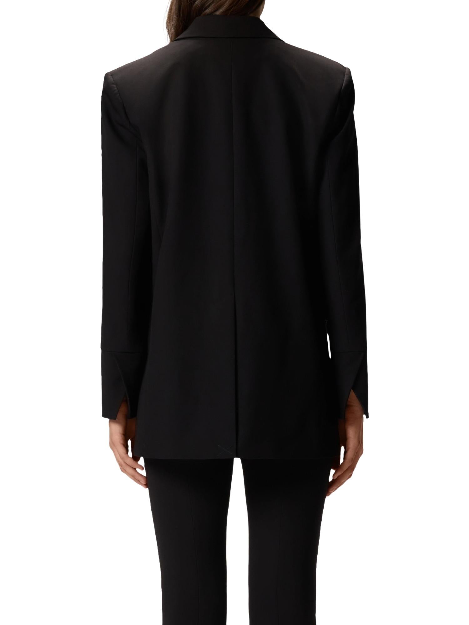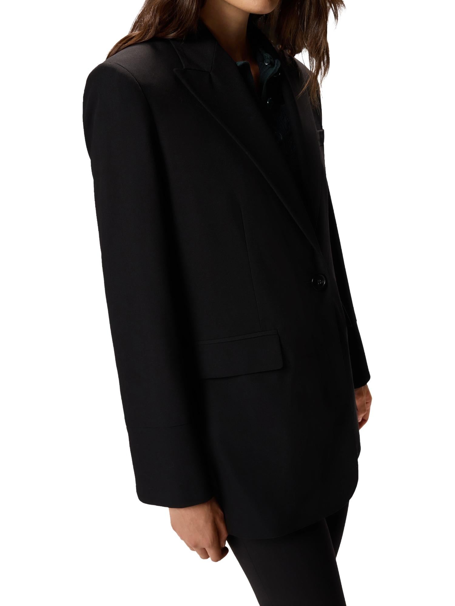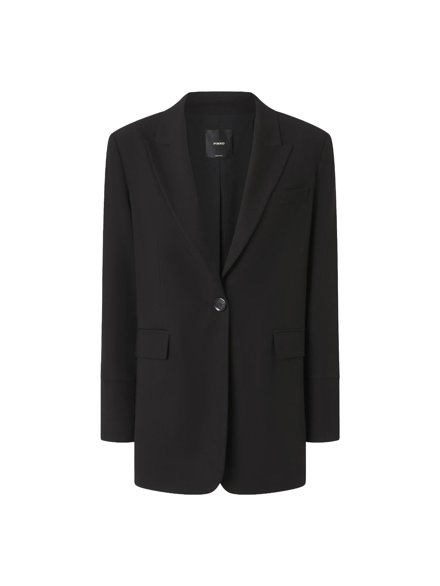Veste oversize Pinko réalisée en tissu technique stretch avec fermeture simple boutonnage, revers à pointe et poches à rabat.