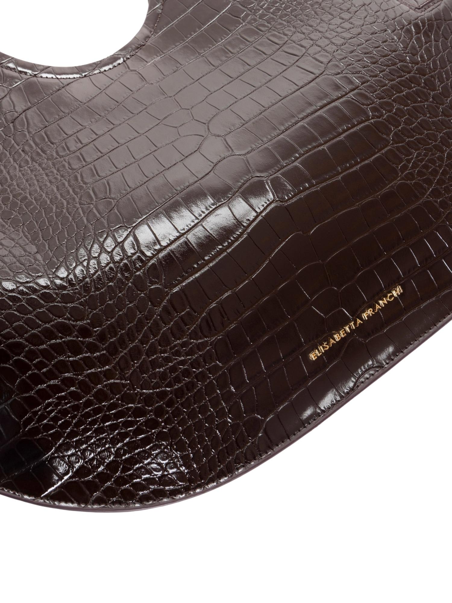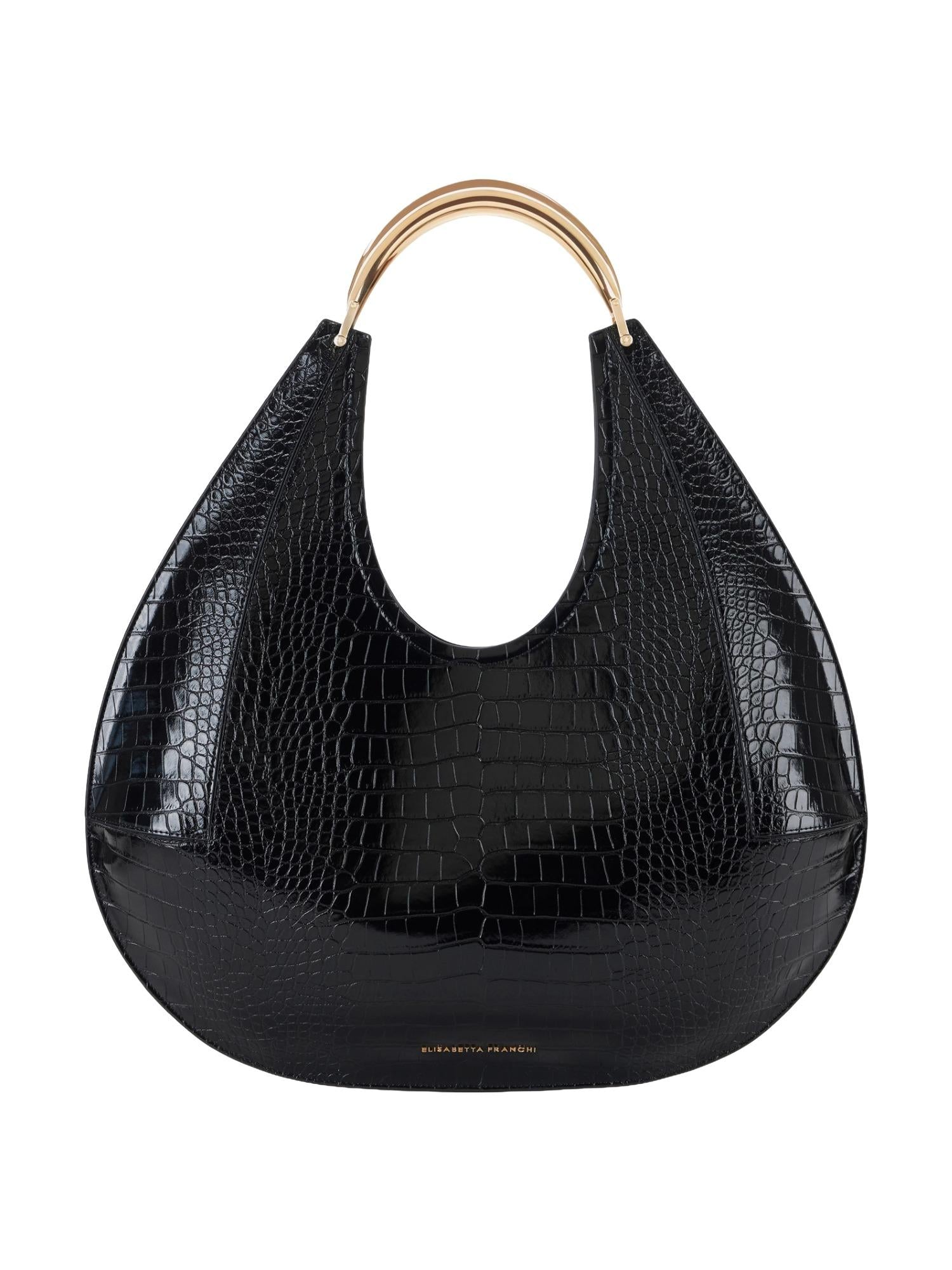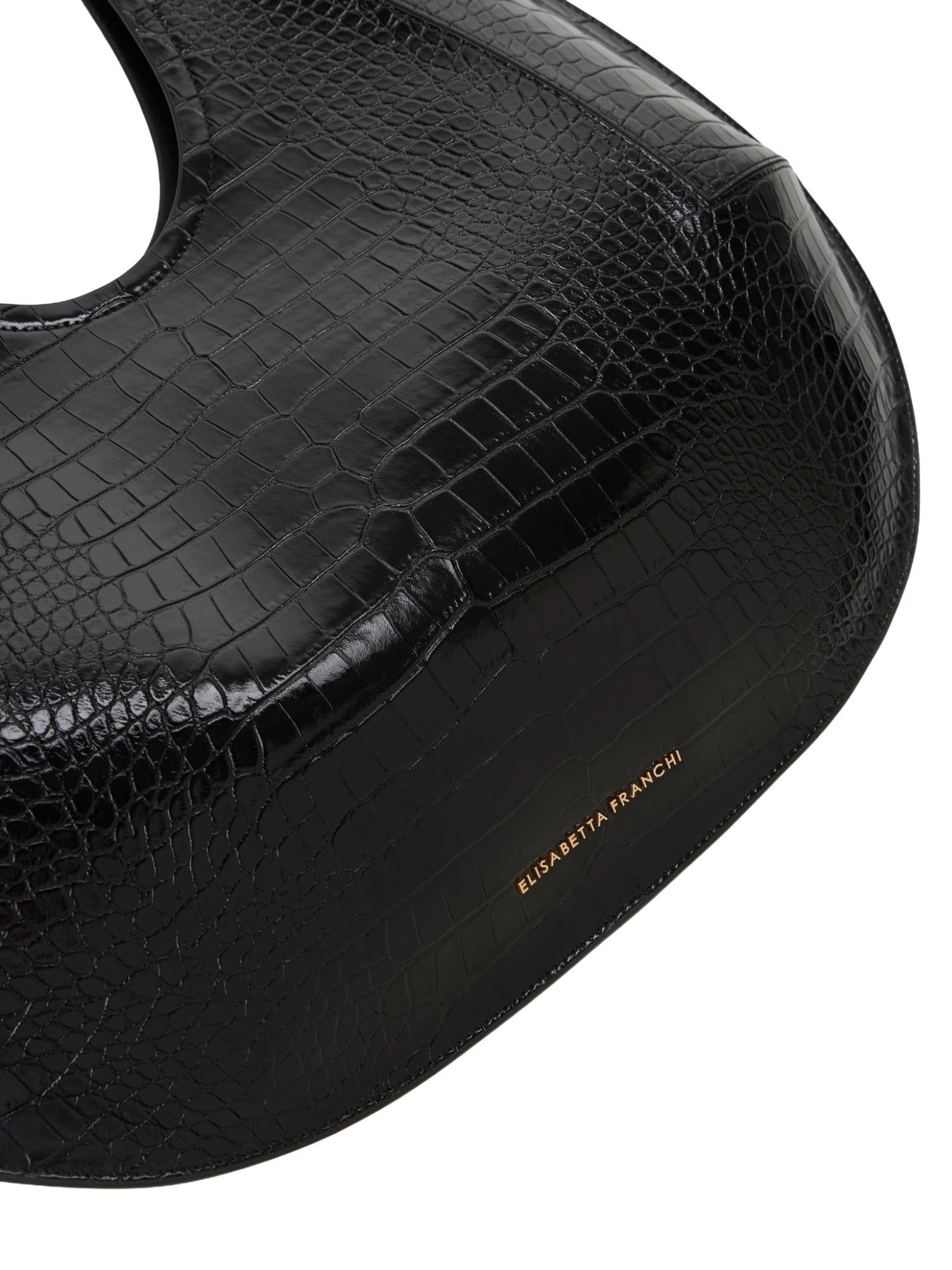 Borsa hobo di grandi dimensioni Elisabetta Franchi realizzata in ecopelle stampa coccodrillo con manico gioiello, chiusura magnetica, tasca interna con zip e logo frontale.