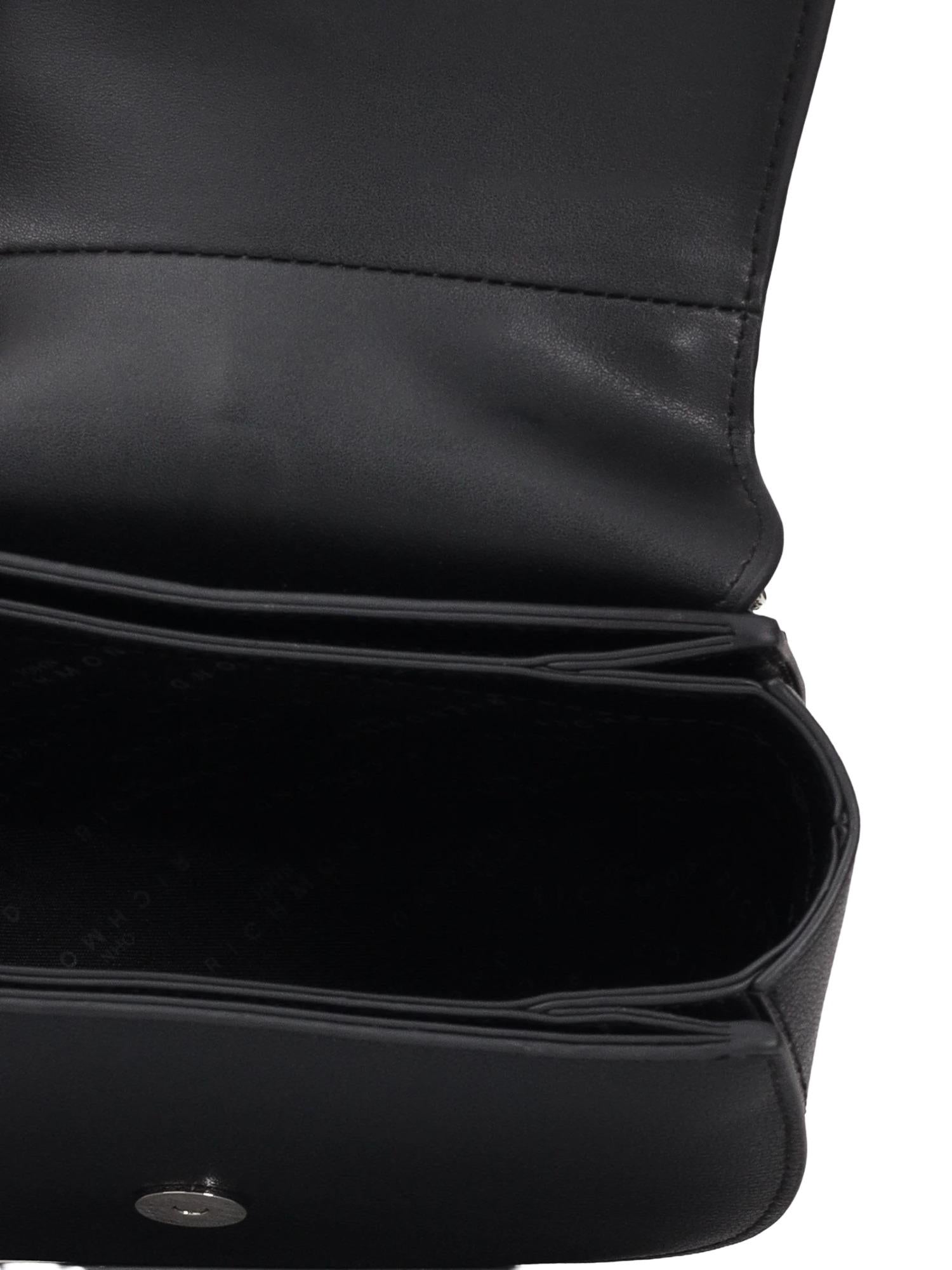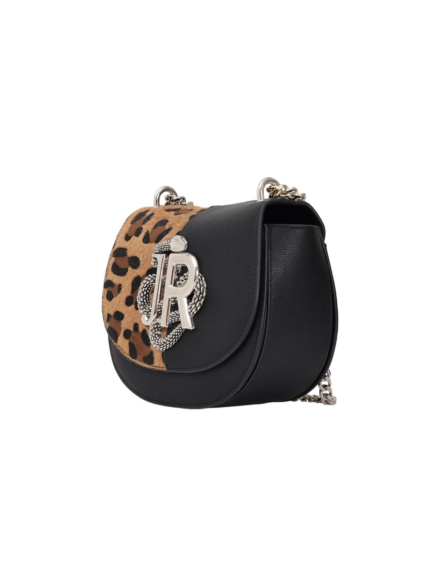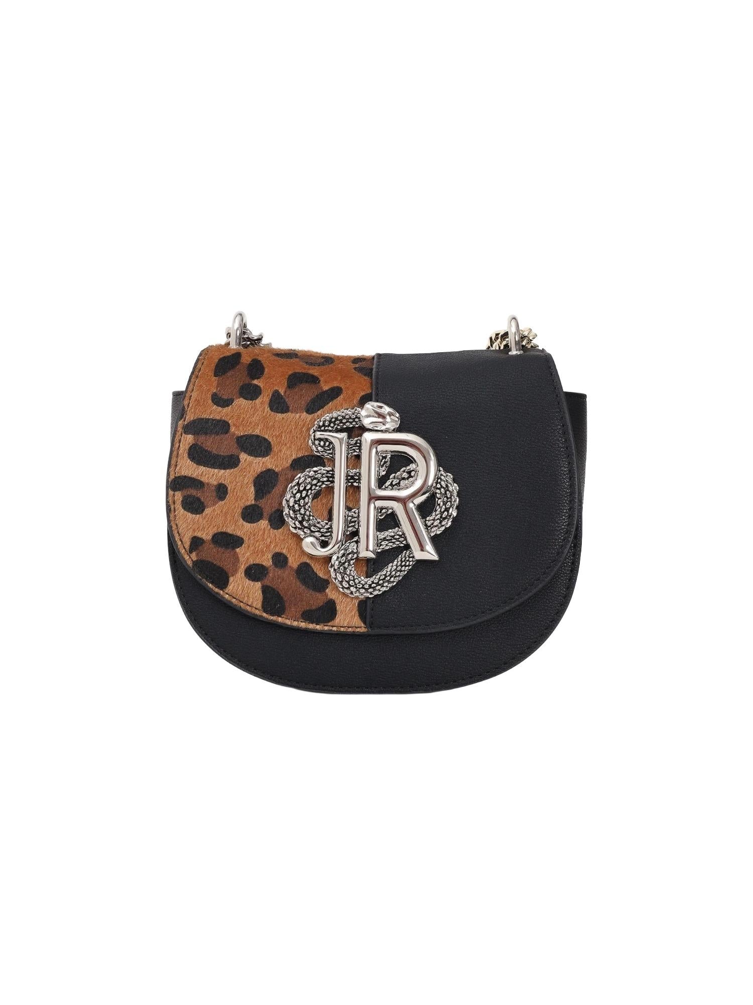 Borsa hobo John Richmond realizzata in ecopelle con chiusura tramite bottone magnetico, tracolla in catena con spallaccio, unico scomparto interno, design con inserto animalier e placca logo con serpente frontale.