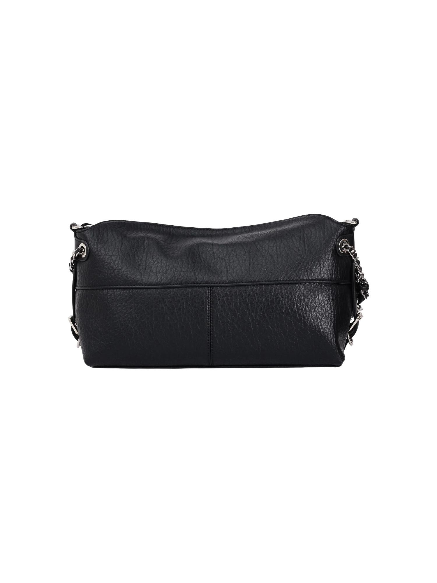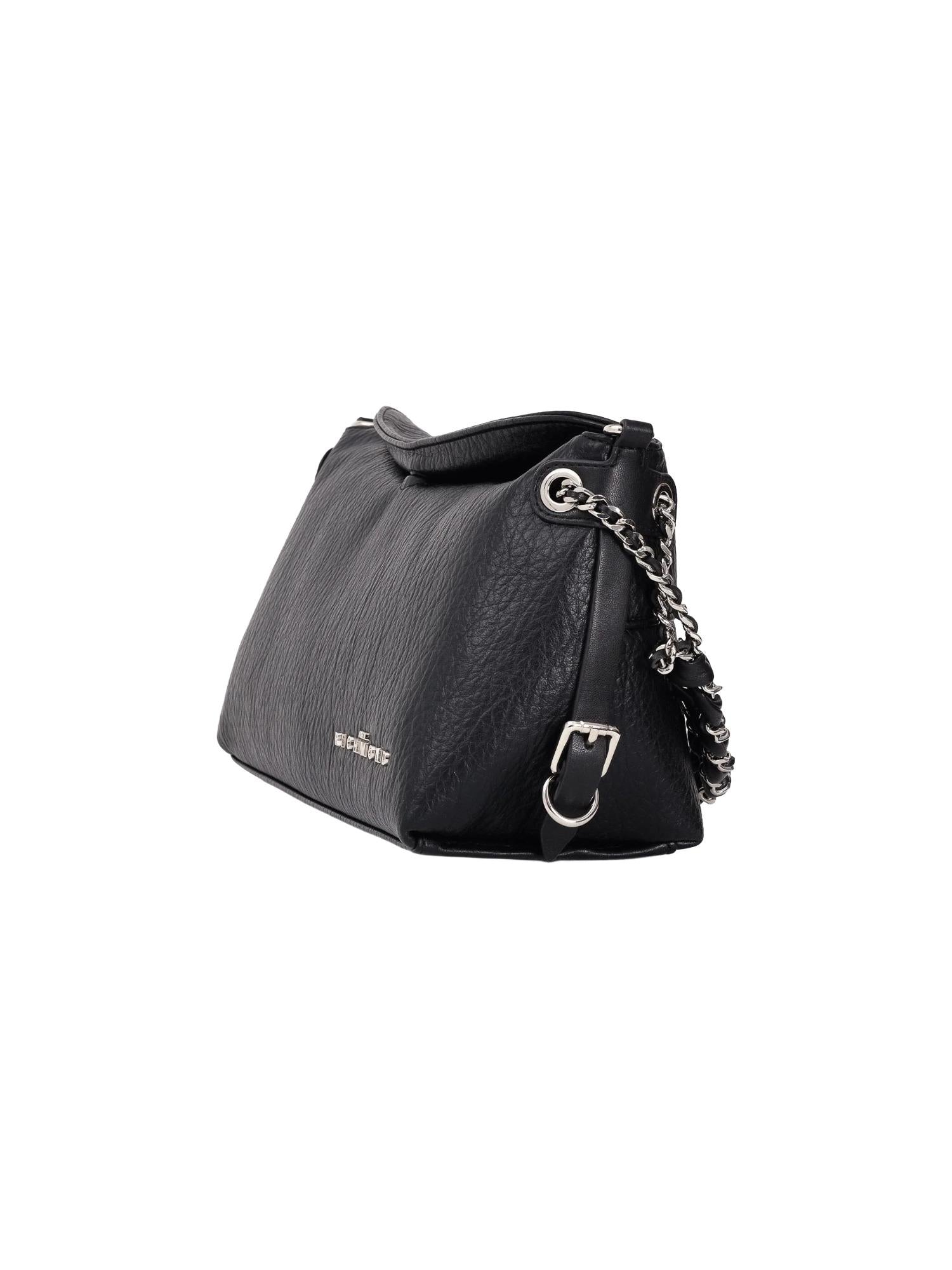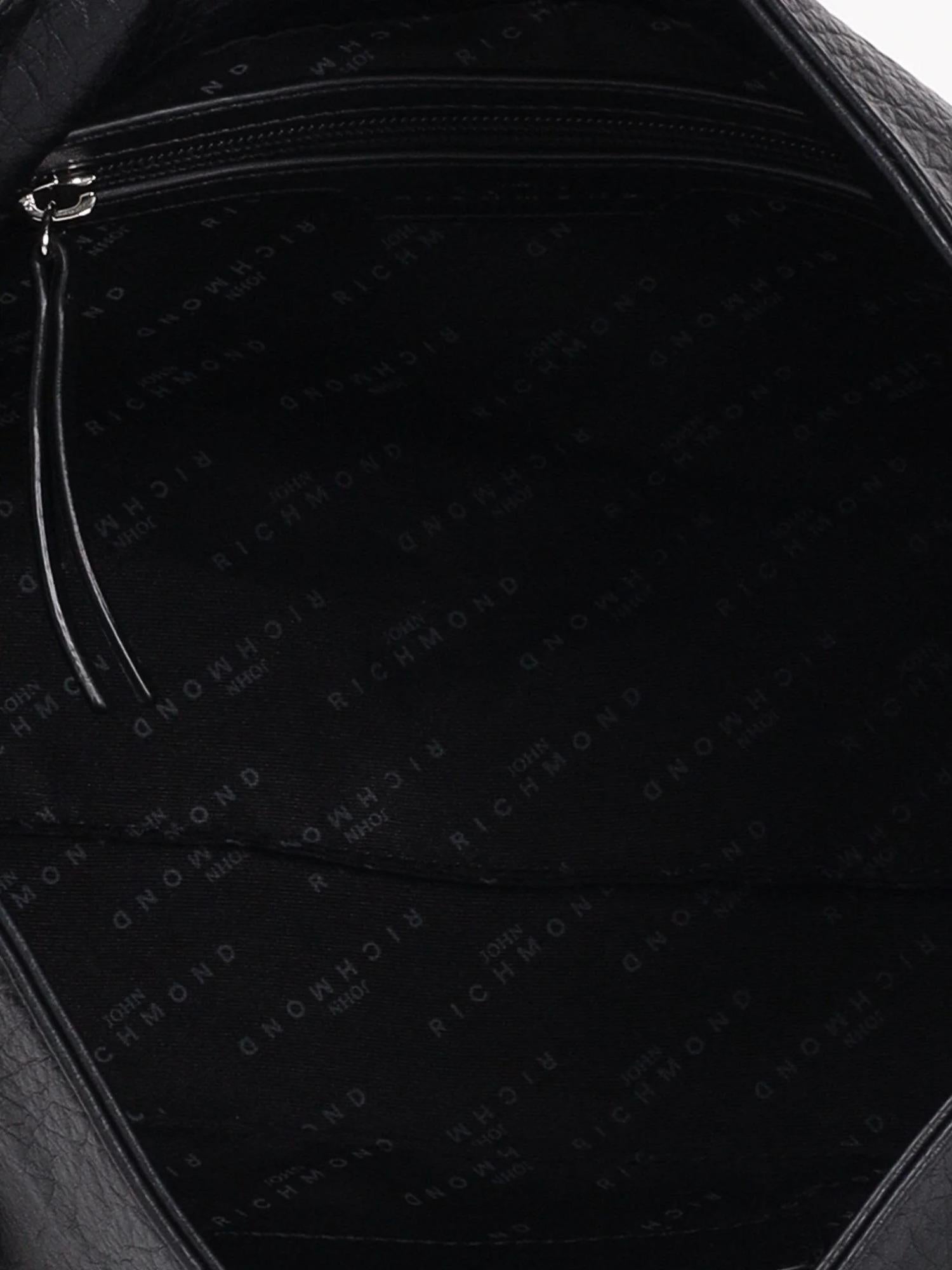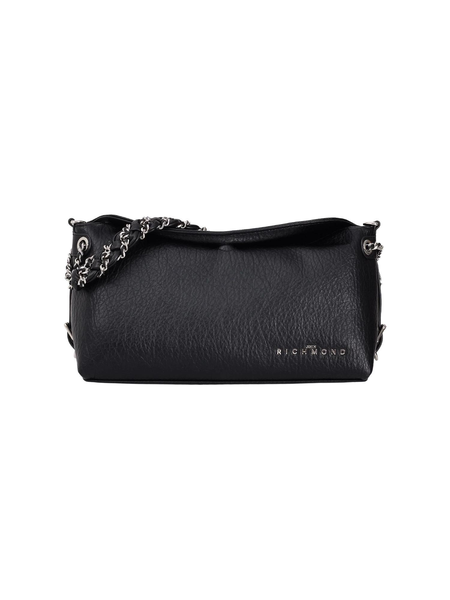 Borsa John Richmond realizzata in ecopelle martellata con chiusura tramite zip, manico in catena e logo frontale.