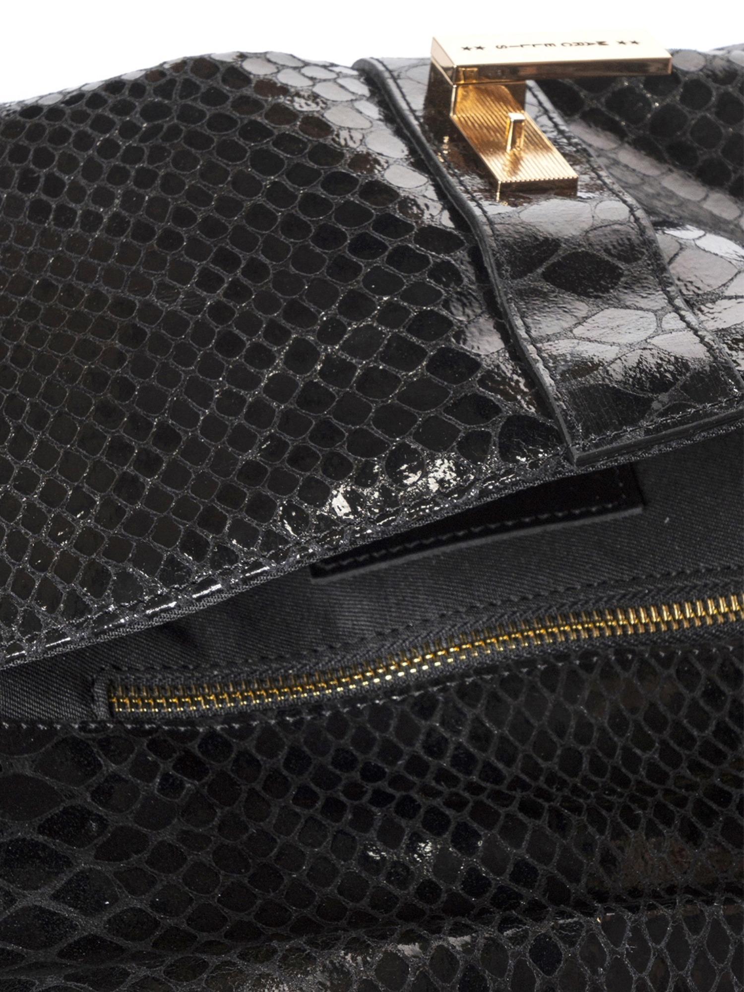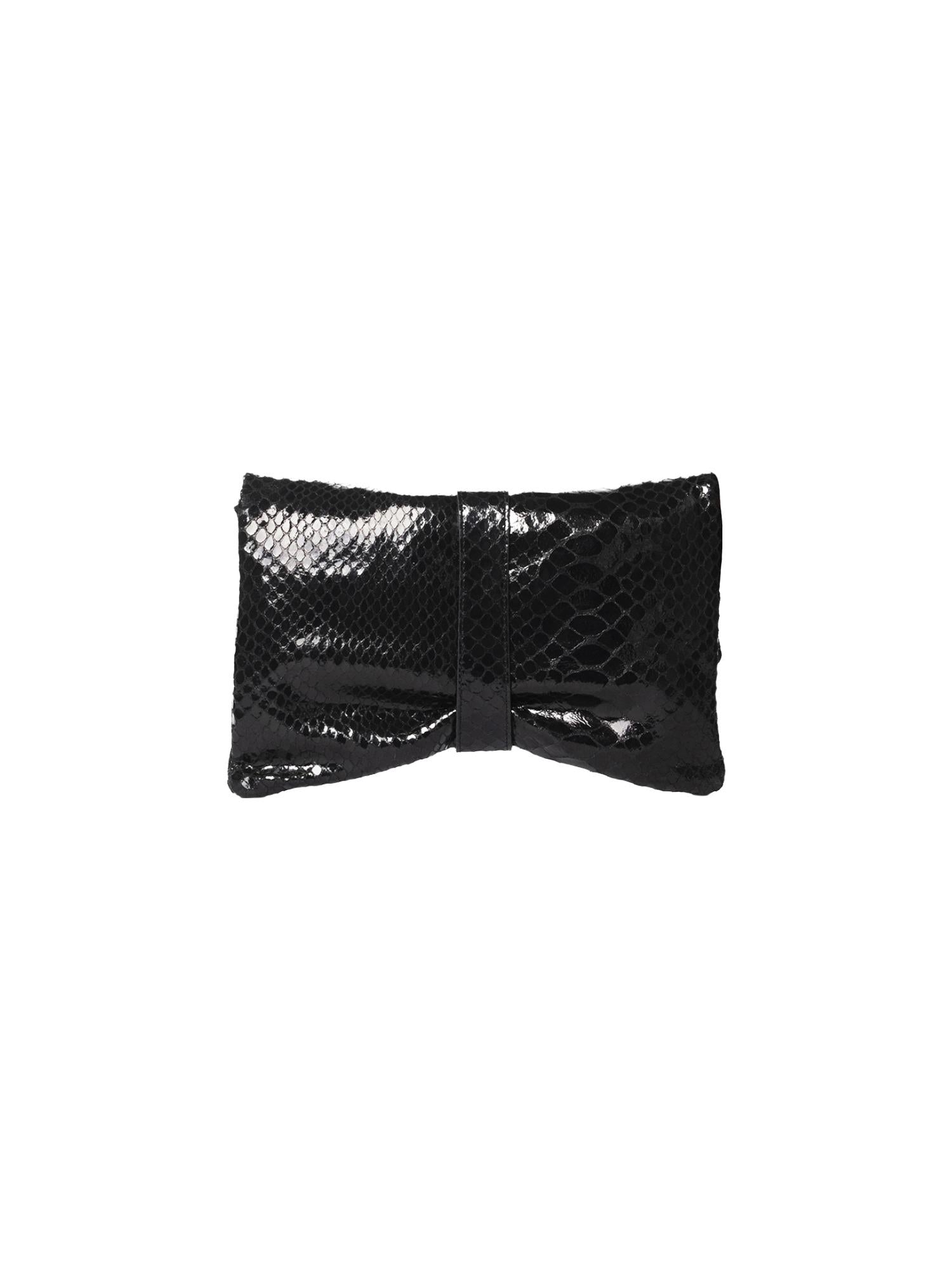 Borsa a forma di fiocco Marc Ellis realizzata in vera pelle lucida con stampa pitonata con chiusura frontale, tracolla in catena e logo sul davanti.