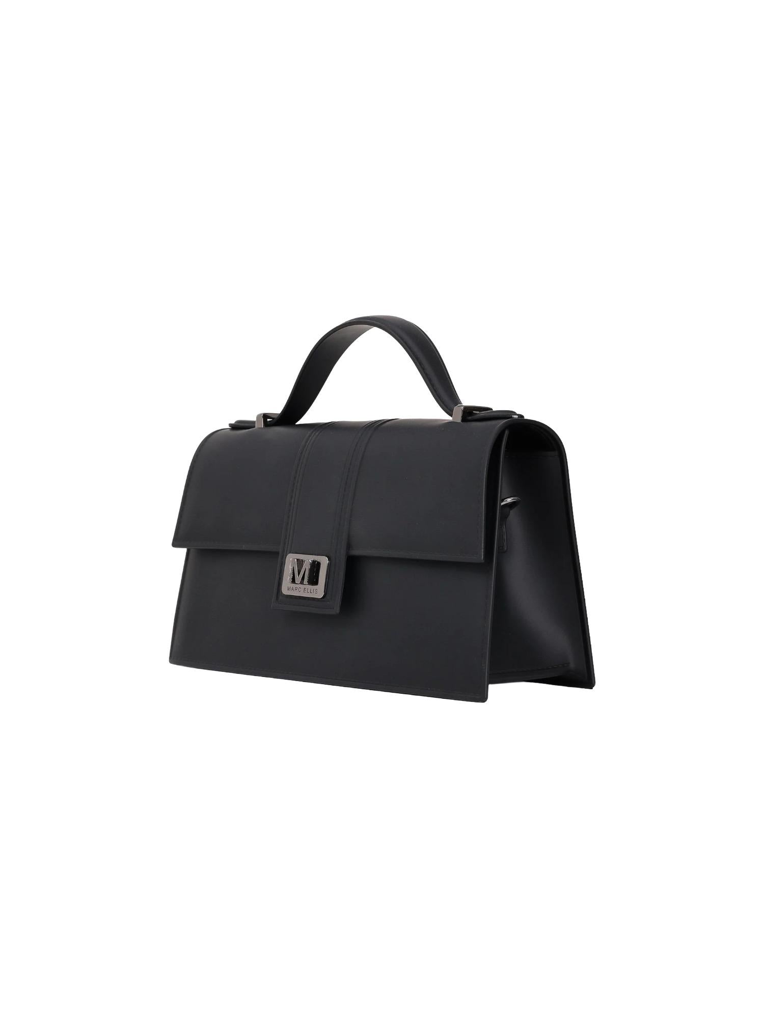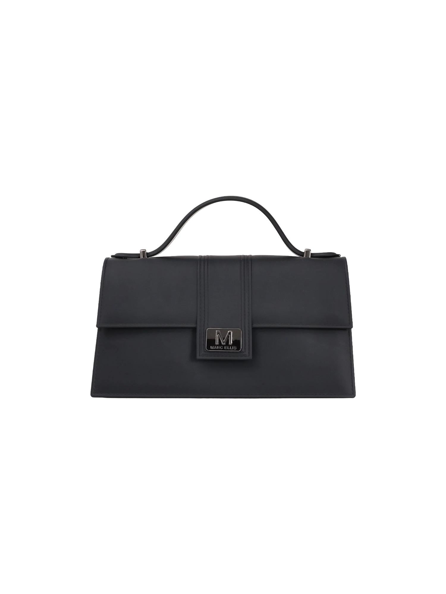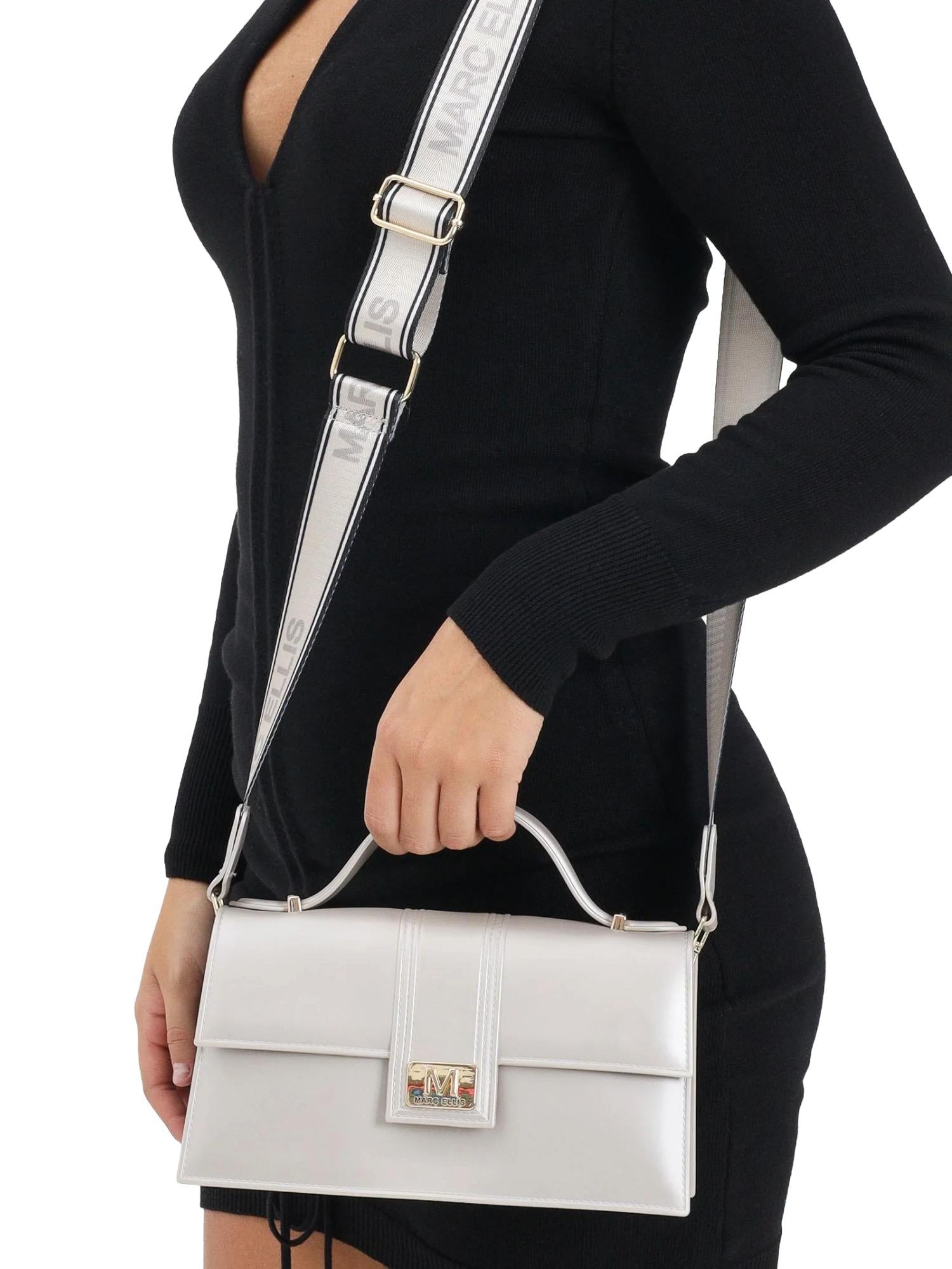 Borsa Marc Ellis realizzata in PVC con chiusura tramite bottone magnetico, unico scomparto interno, manico piatto e tracolla in tessuto logato removibile.