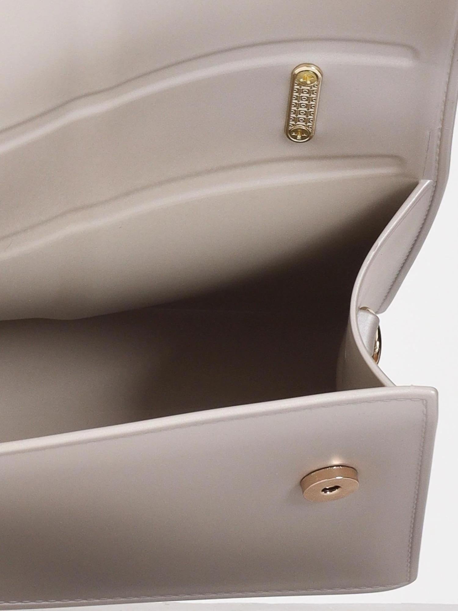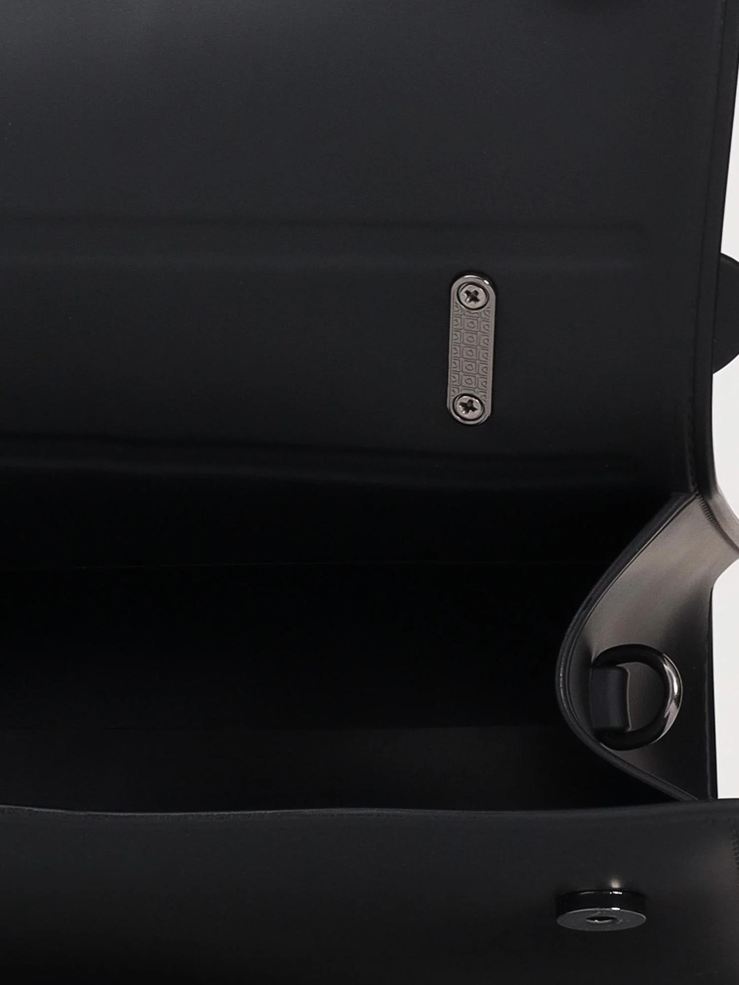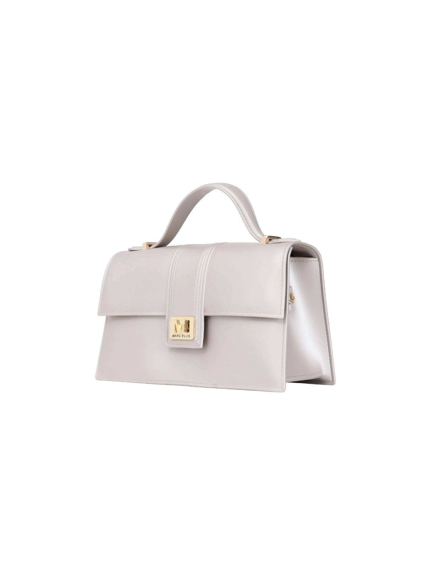 Borsa Marc Ellis realizzata in PVC con chiusura tramite bottone magnetico, unico scomparto interno, manico piatto e tracolla in tessuto logato removibile.