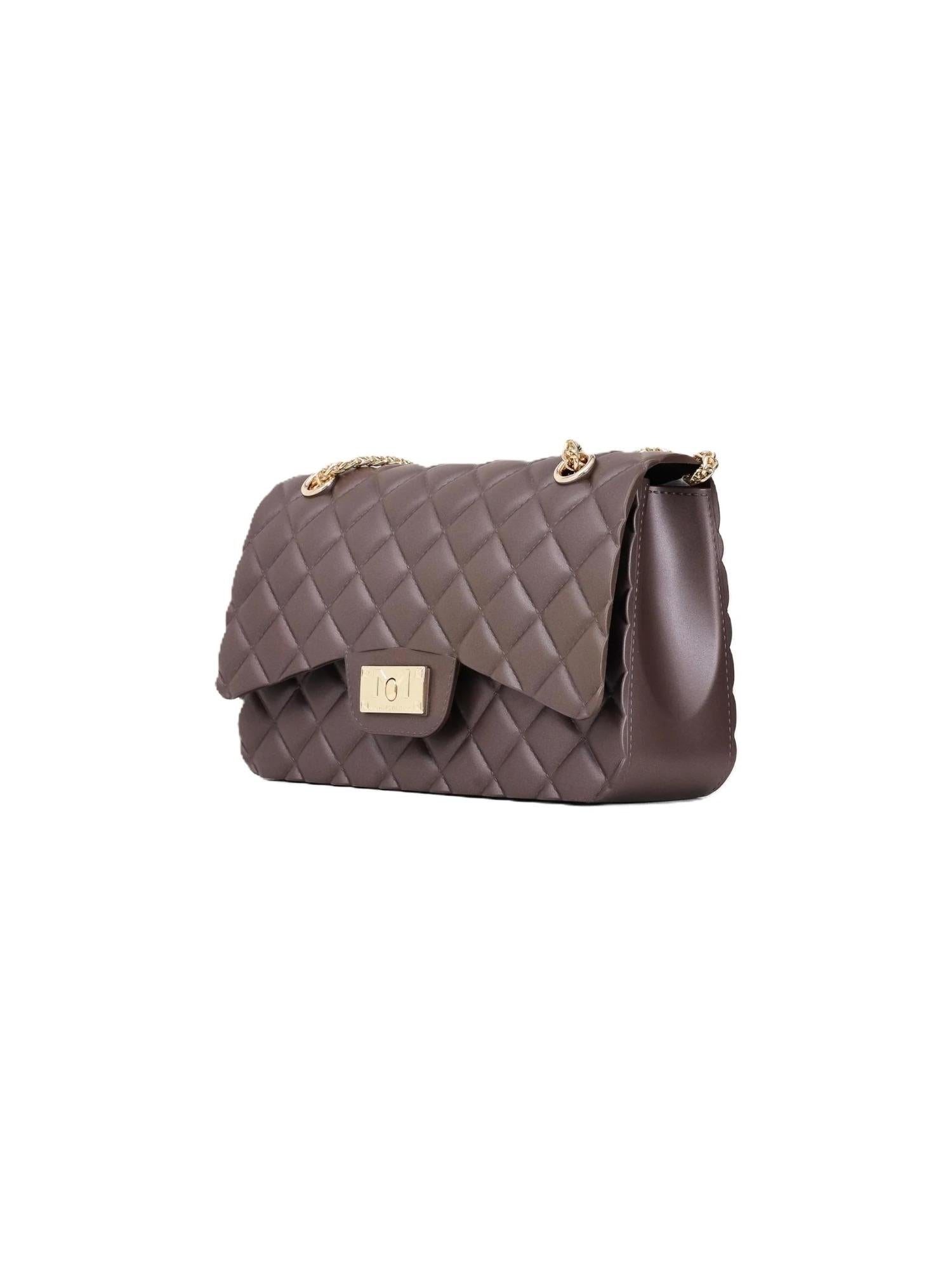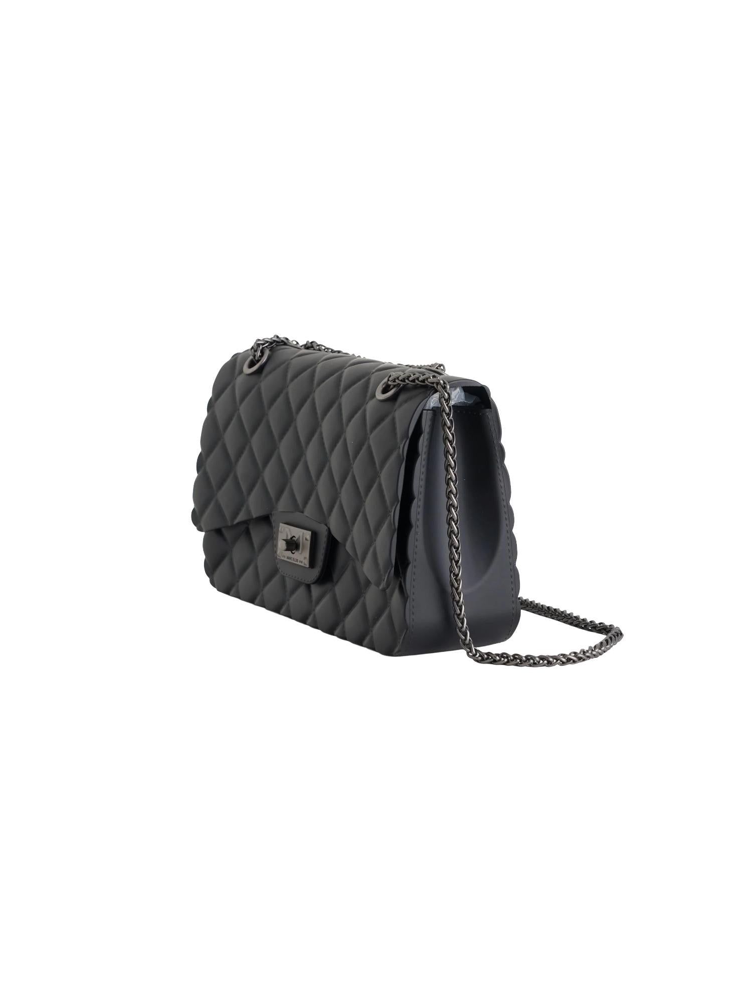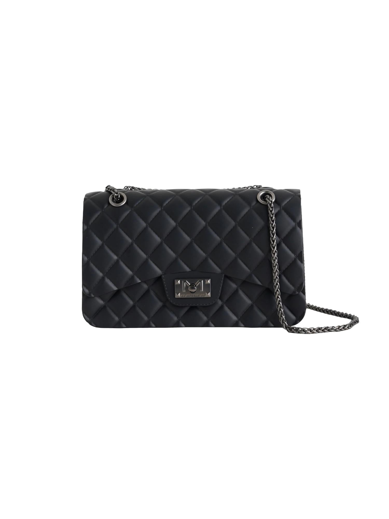 Borsa Marc Ellis New York realizzata in PVC effetto trapuntato con chiusura girello frontale, tracolla in catena e placca logo sul davanti.