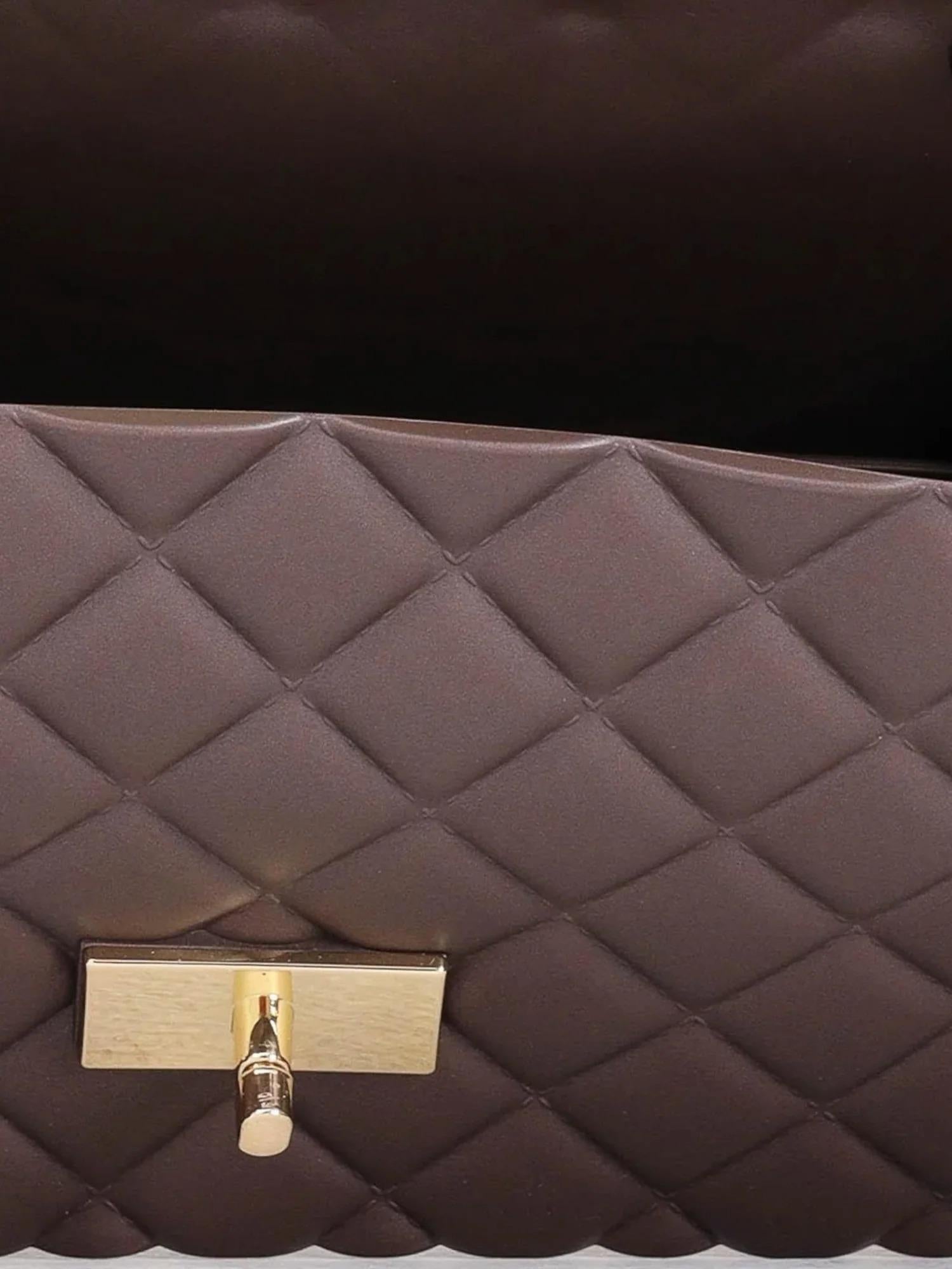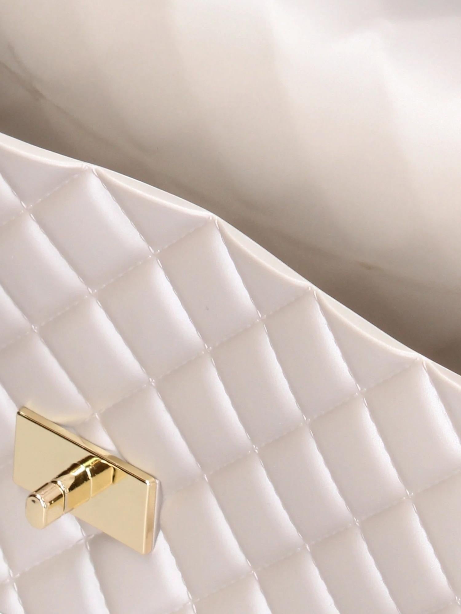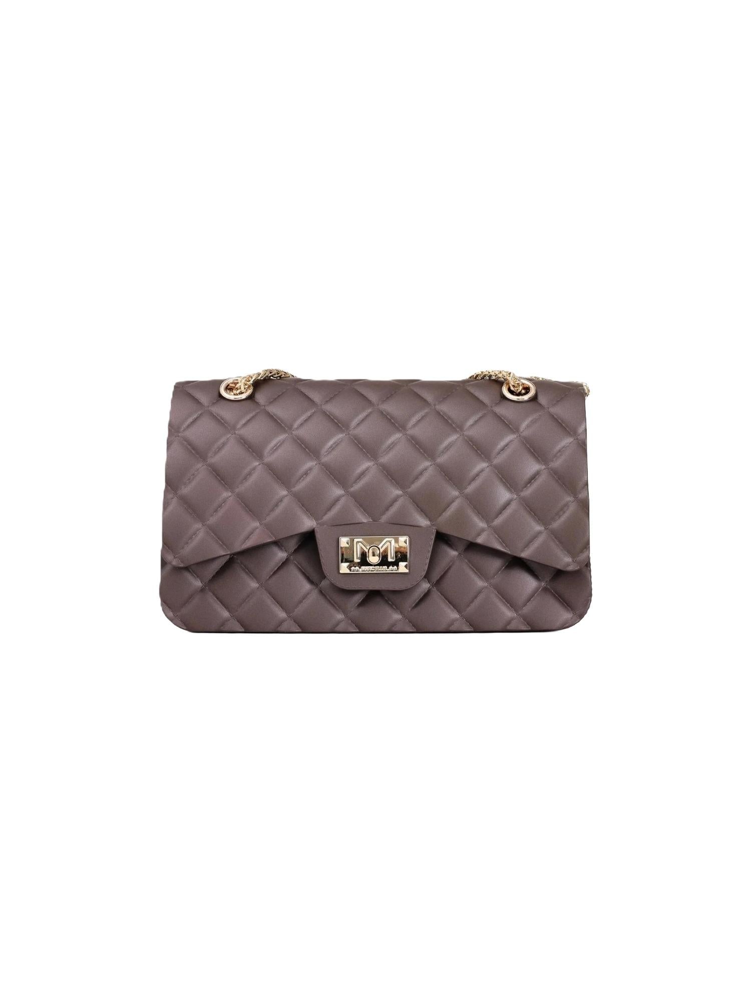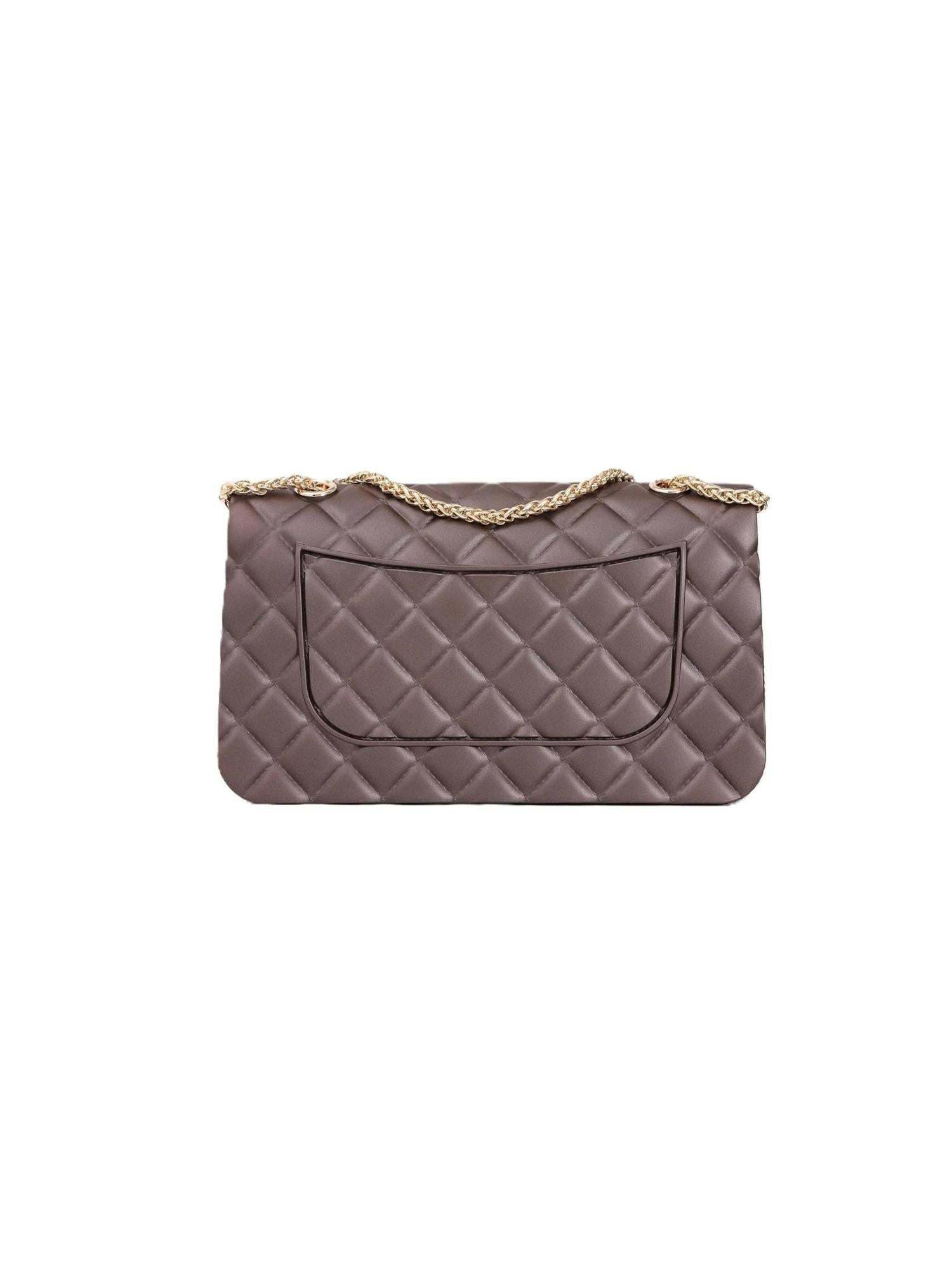 Borsa Marc Ellis New York realizzata in PVC effetto trapuntato con chiusura girello frontale, tracolla in catena e placca logo sul davanti.