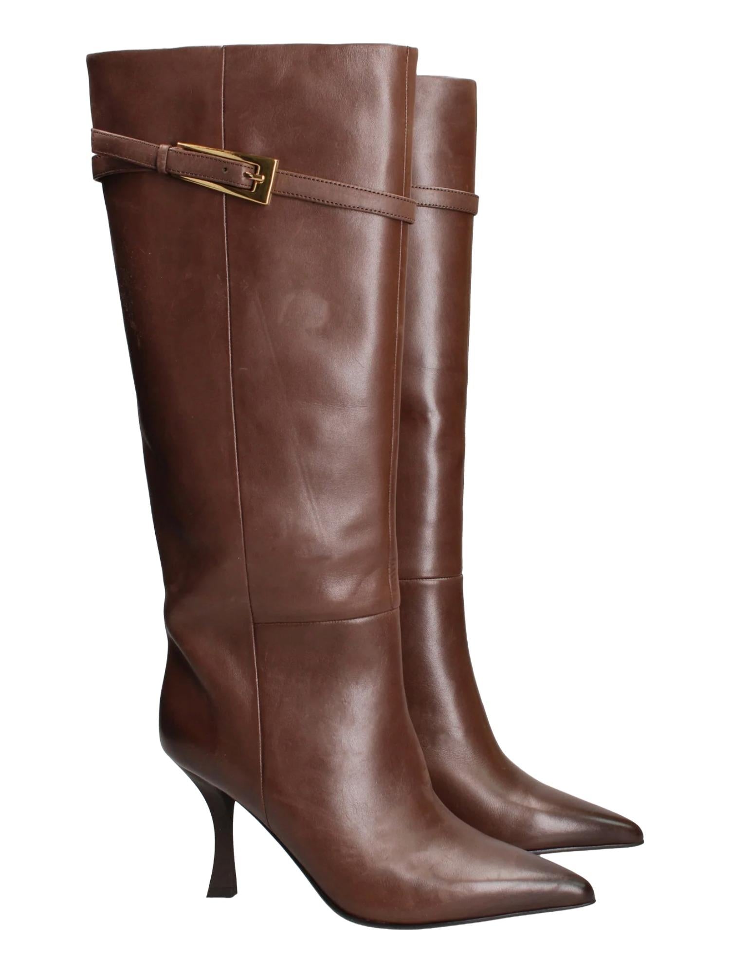 Stivali alti Marc Ellis realizzati in vera pelle con tacco 7 cm e cinturino con fibbietta superiore.
