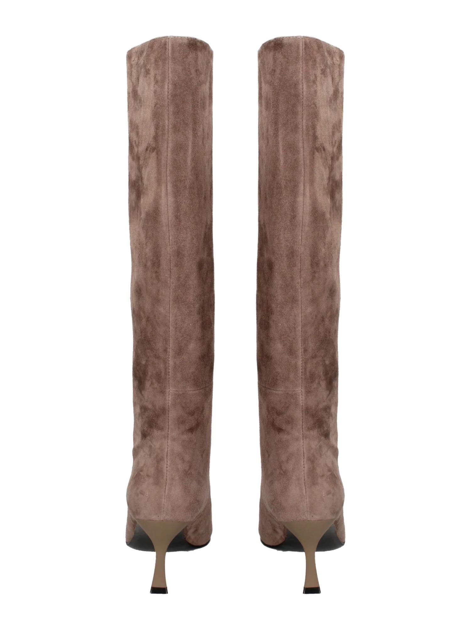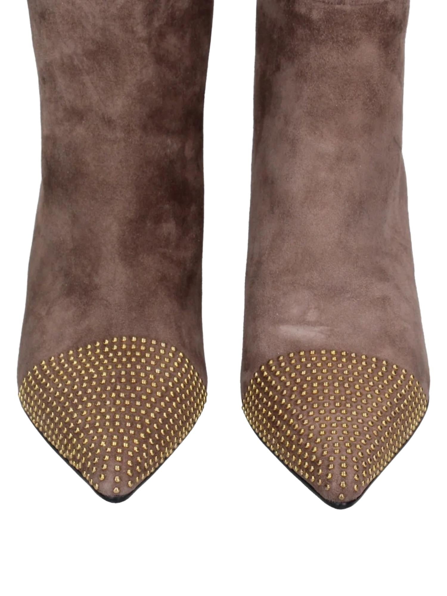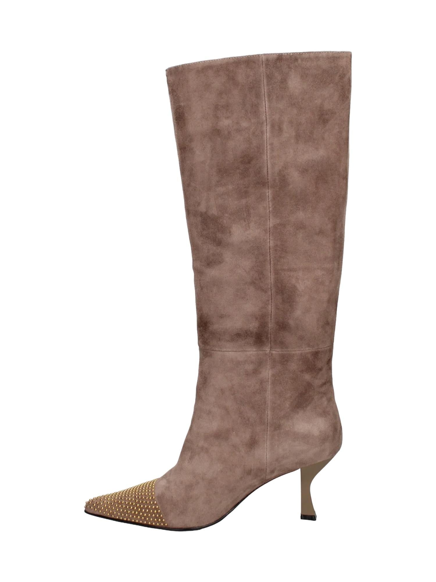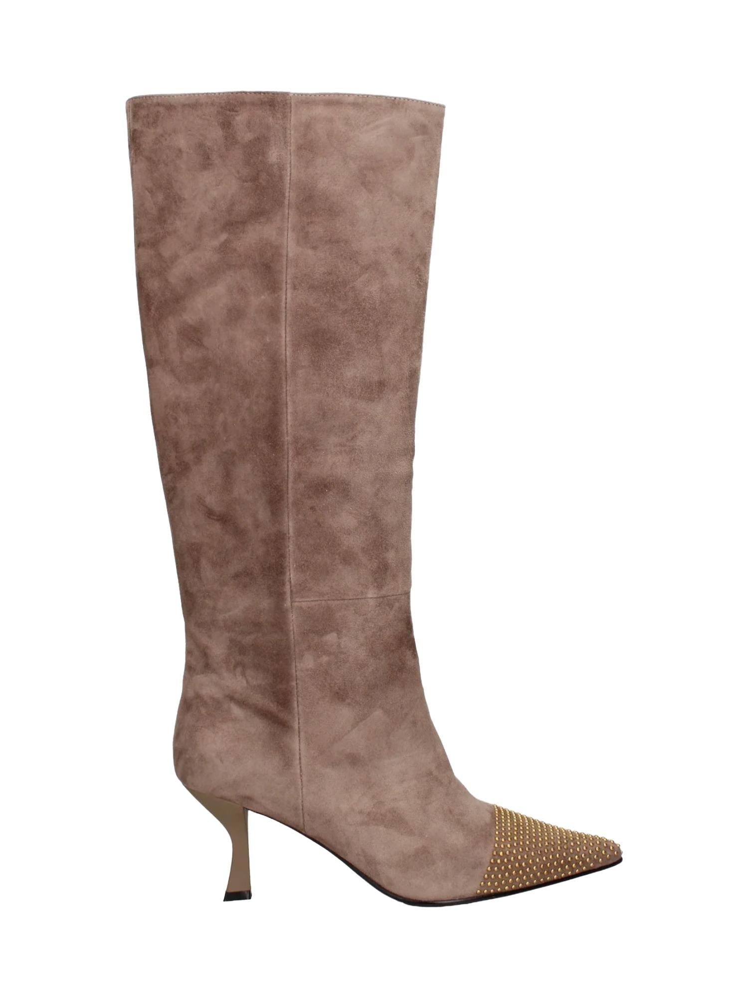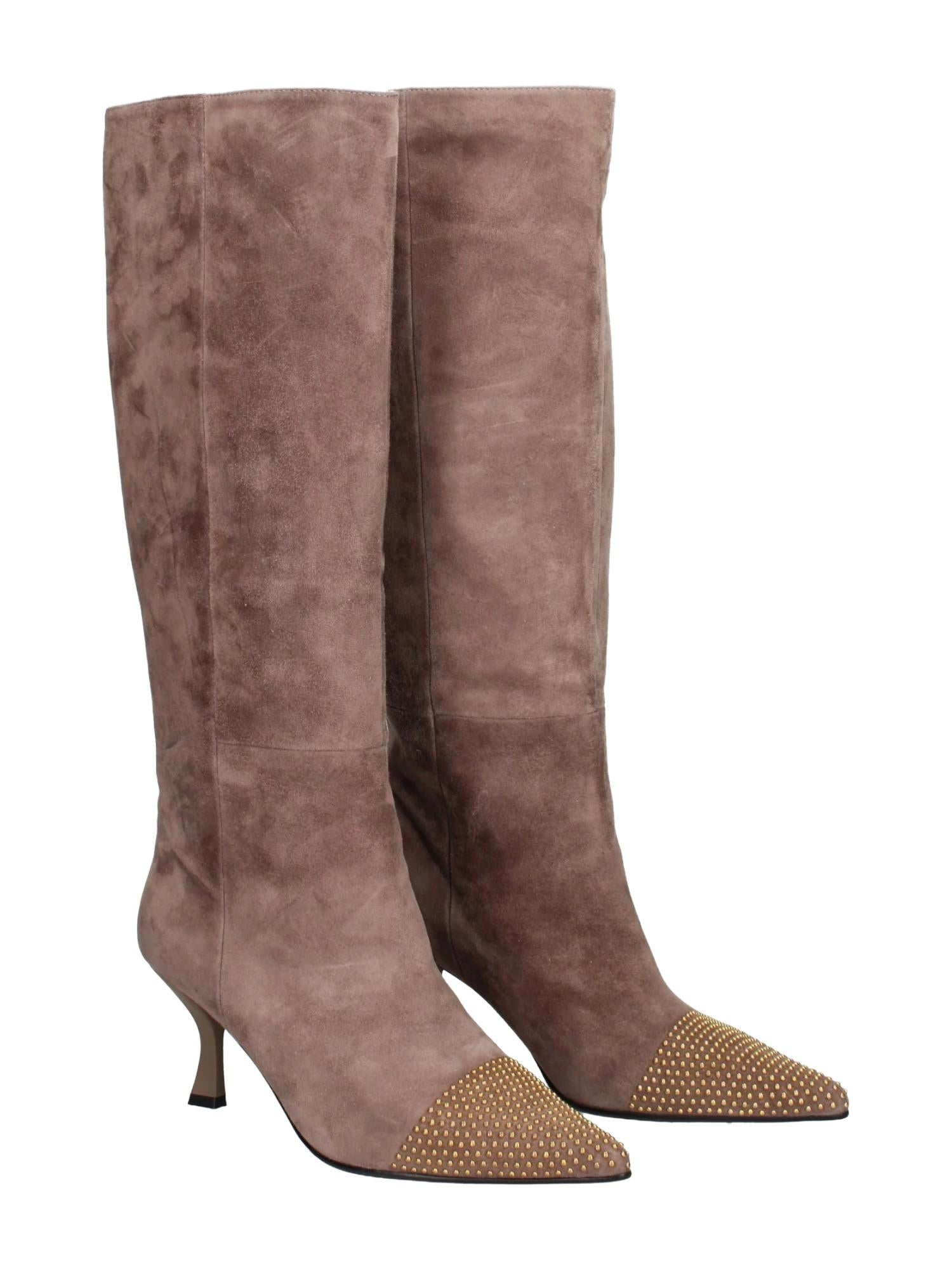 Stivali alti Marc Ellis realizzati in pelle scamosciata con tacco 7 cm e punta con borchie applicate.