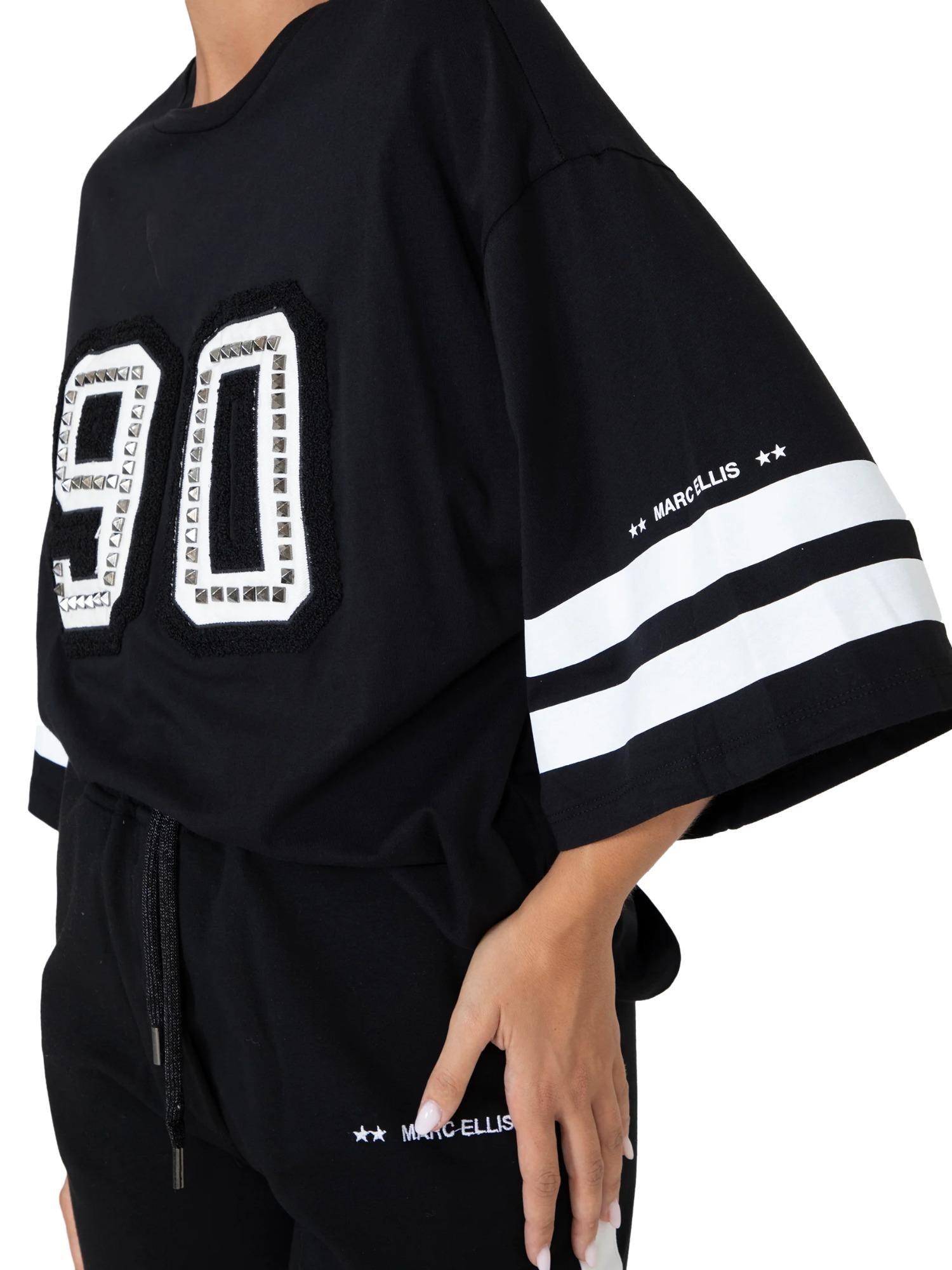 T-shirt oversize a maniche corte Marc Ellis realizzata in 100% cotone con 90 frontale e borchie applicate.
