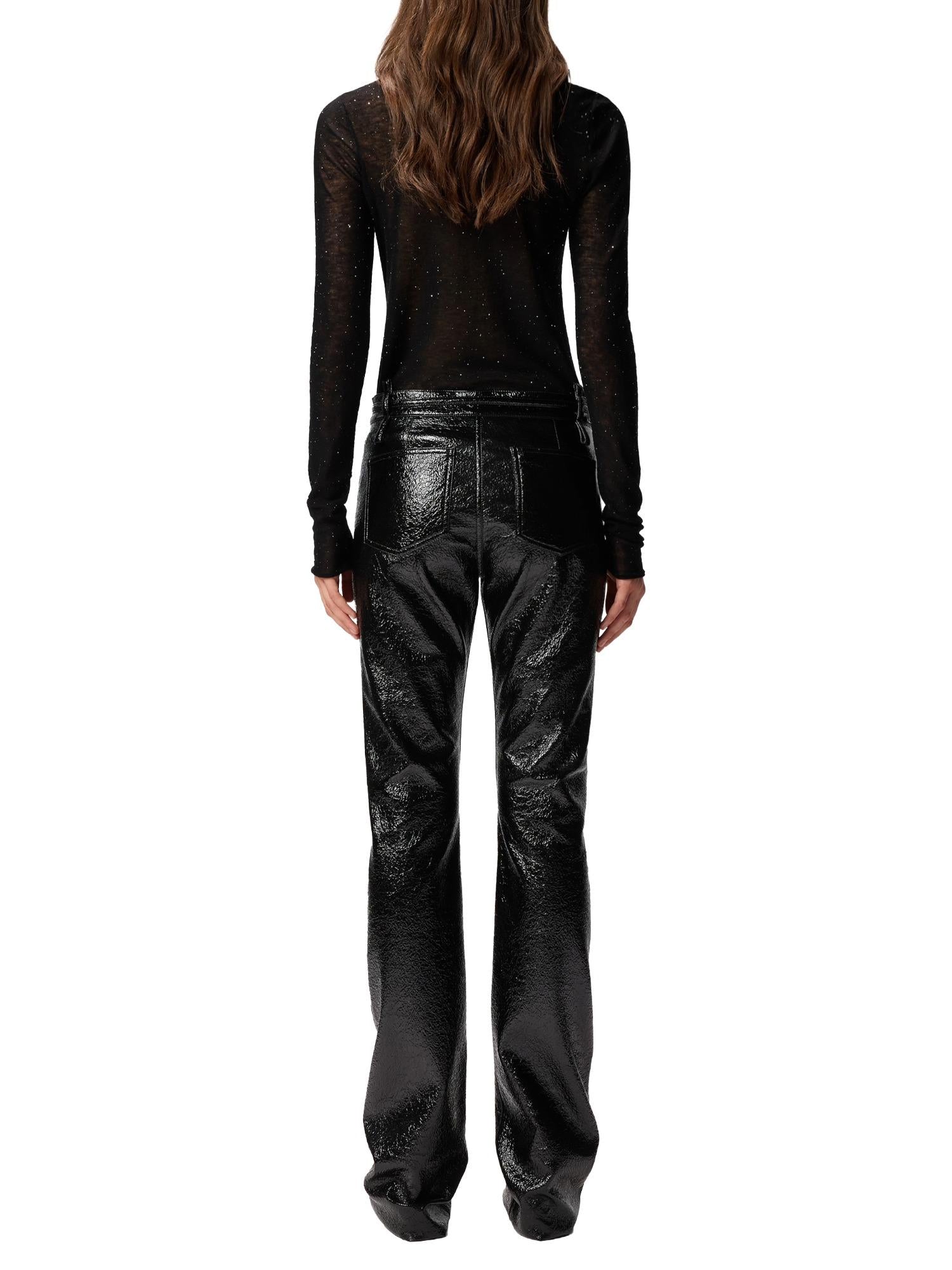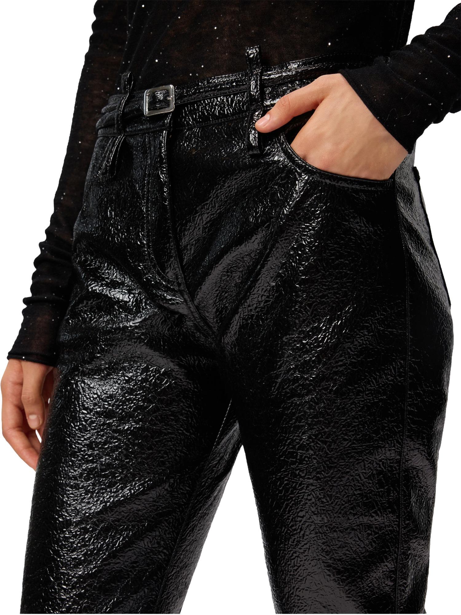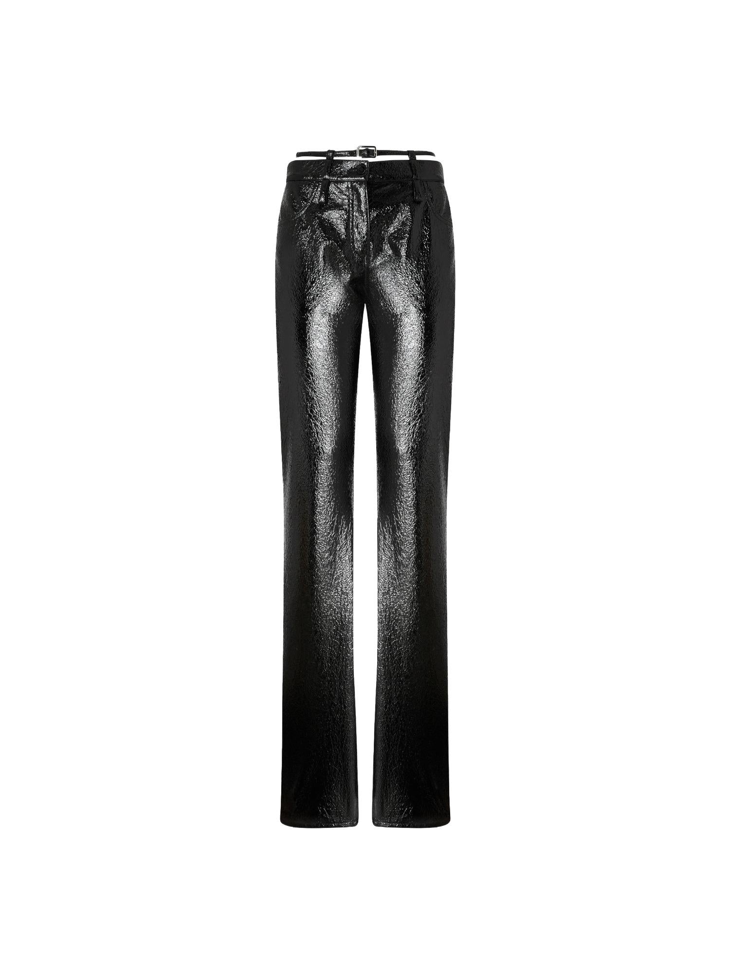Pantalone Pinko realizzato in tessuto effetto vernice con cintura abbinata, chiusura tramite bottone e zip e 4 tasche.