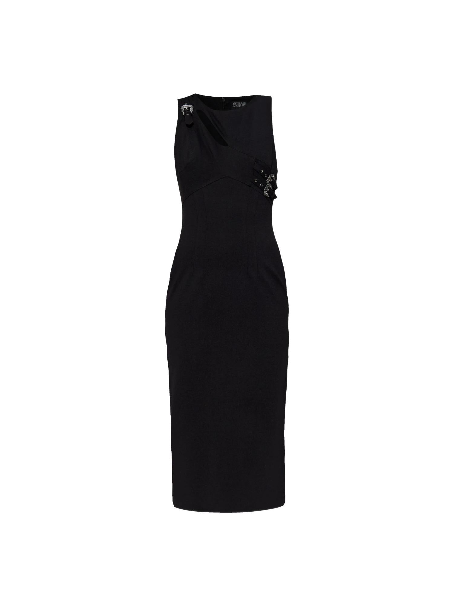 Abito midi Versace Jeans Couture realizzato in maglia di viscosa con chiusura posteriore tramite zip, design smanicato con dettaglio cut-out e fibbie Baroque applicate.