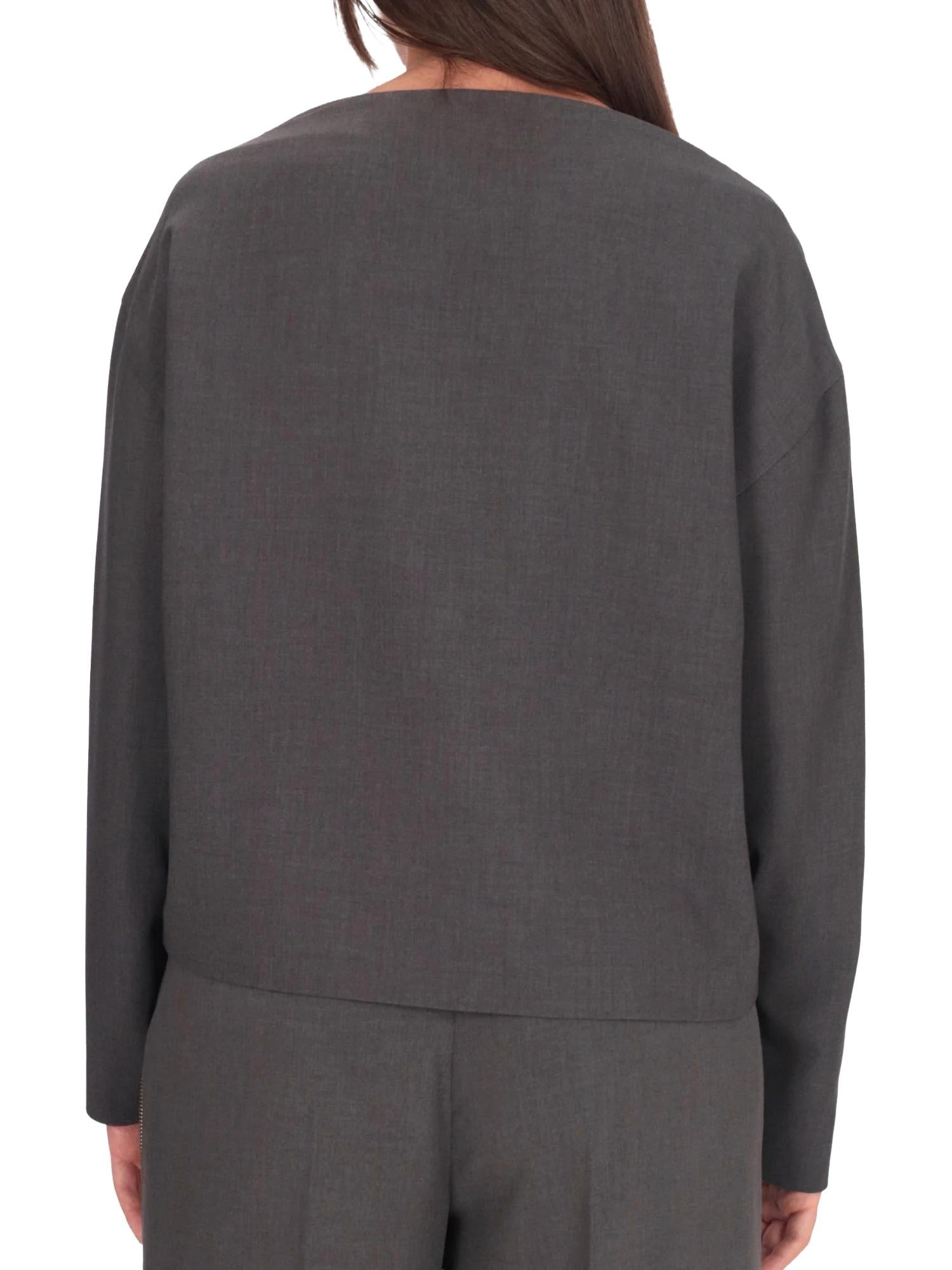 Blusa boxy fit Blugirl realizzata in cady stretch con zip sul collo e sulle maniche con dettagli animalier al di sotto.