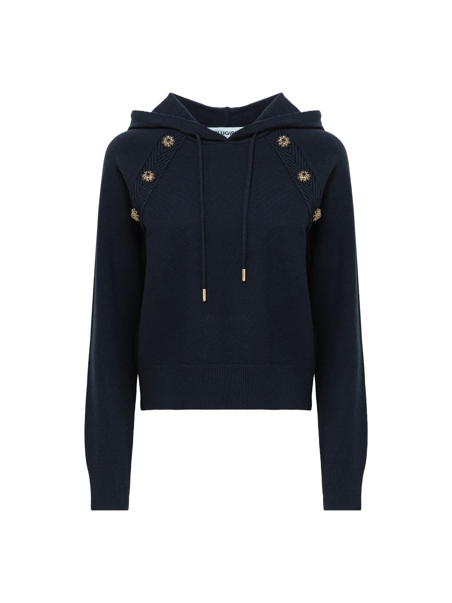 Felpa con cappuccio Blugirl realizzata in maglia di viscosa con bottoni gioiello frontali.