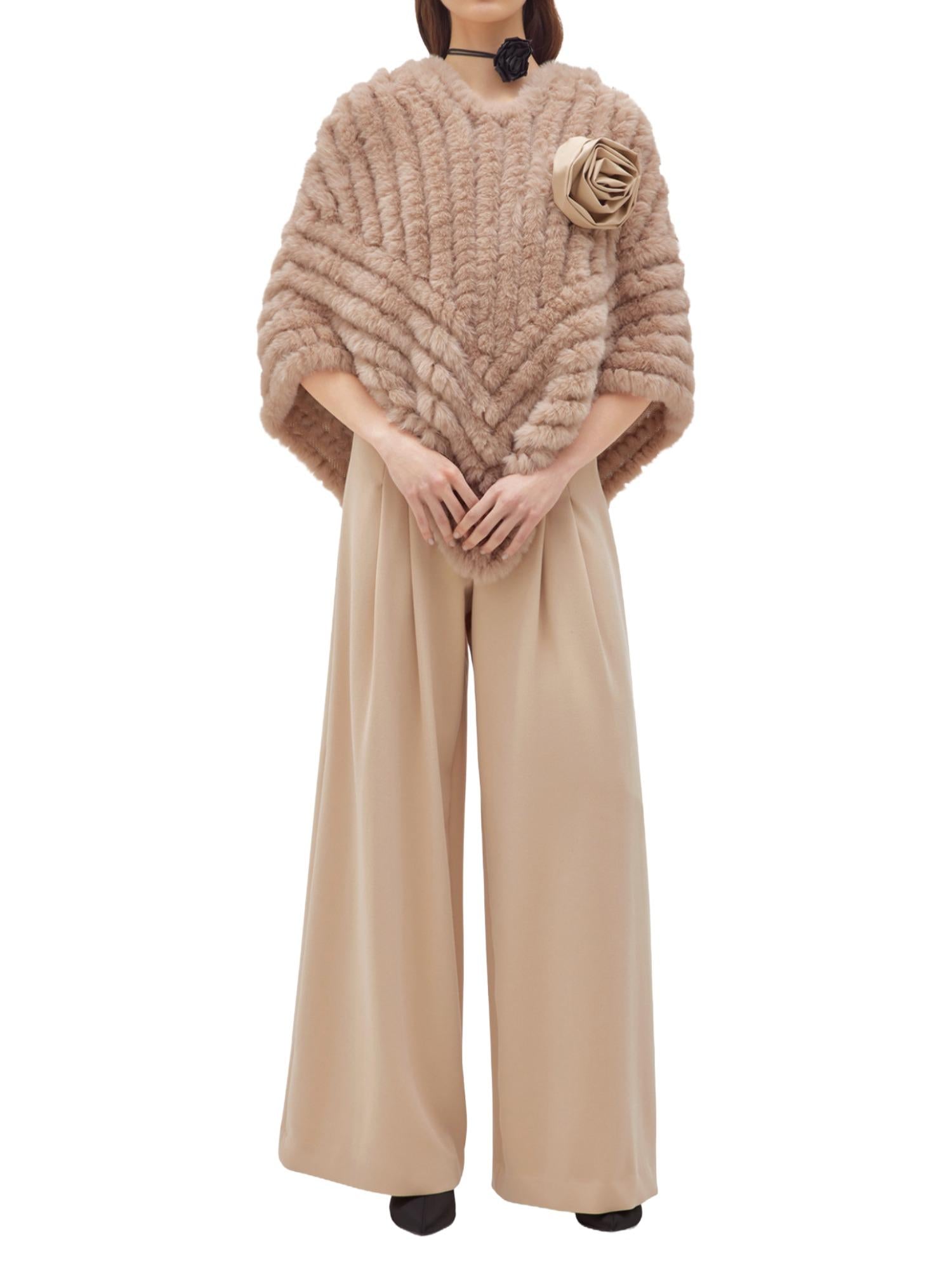 Poncho Blugirl realizzato in ecopelliccia con spilla a forma di rosa applicata sul petto.