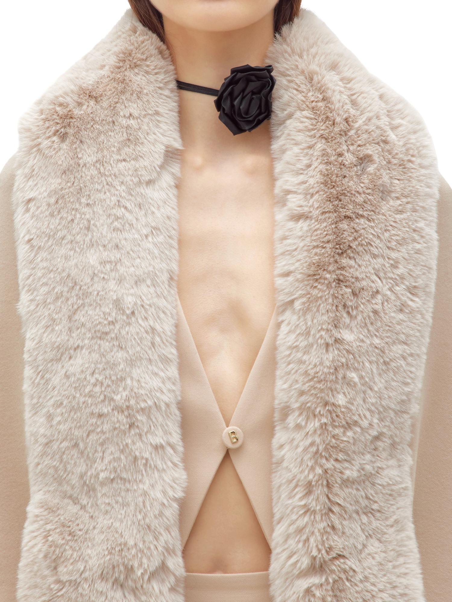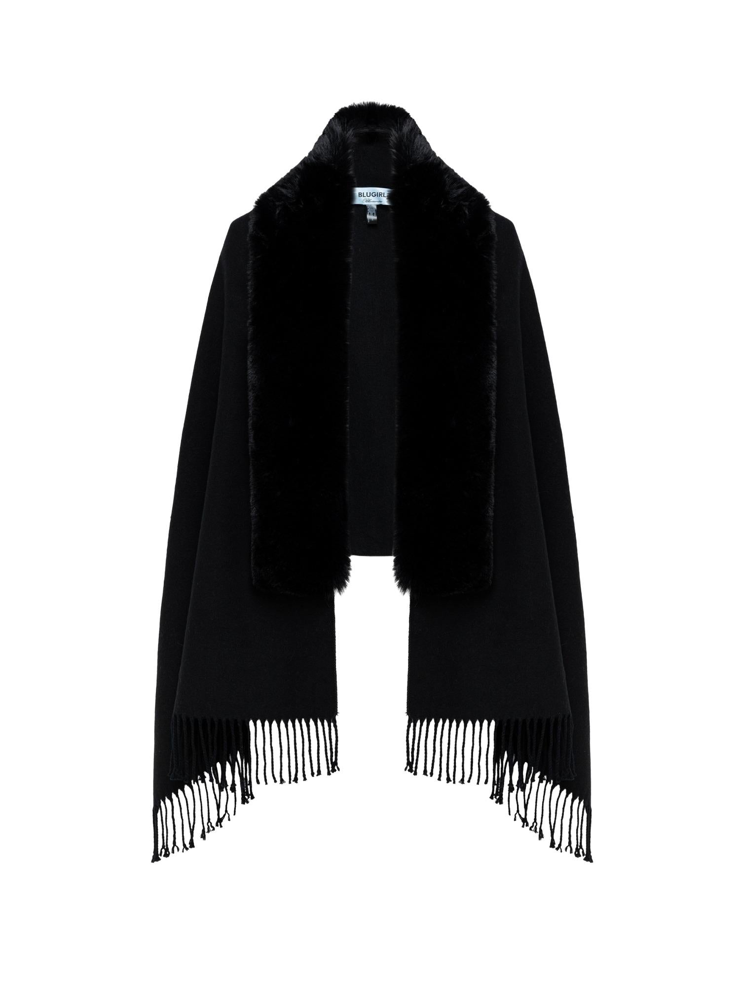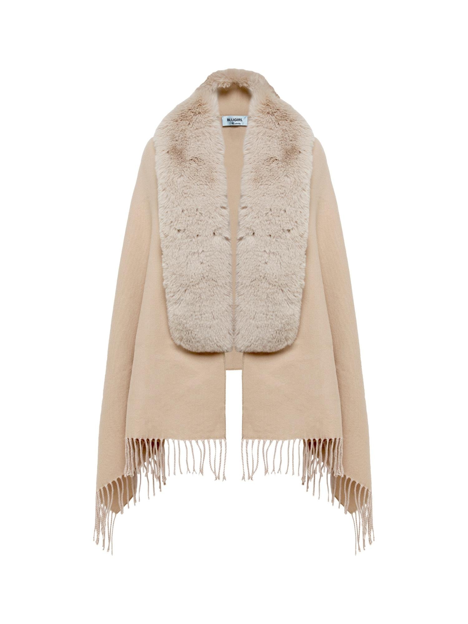 Stola Blugirl 65x170 cm realizzata in maglia di viscosa con collo in ecopelliccia e frange.