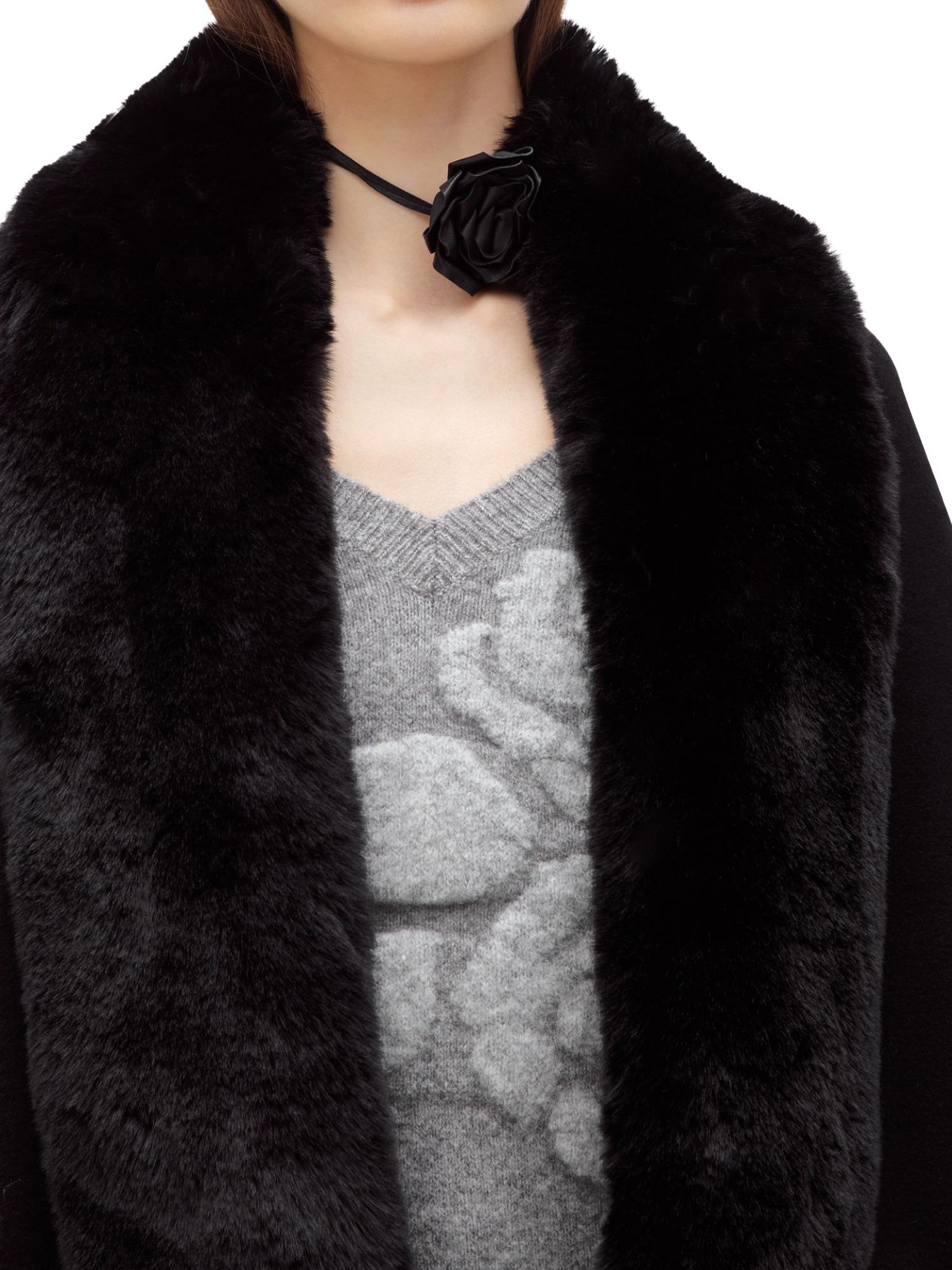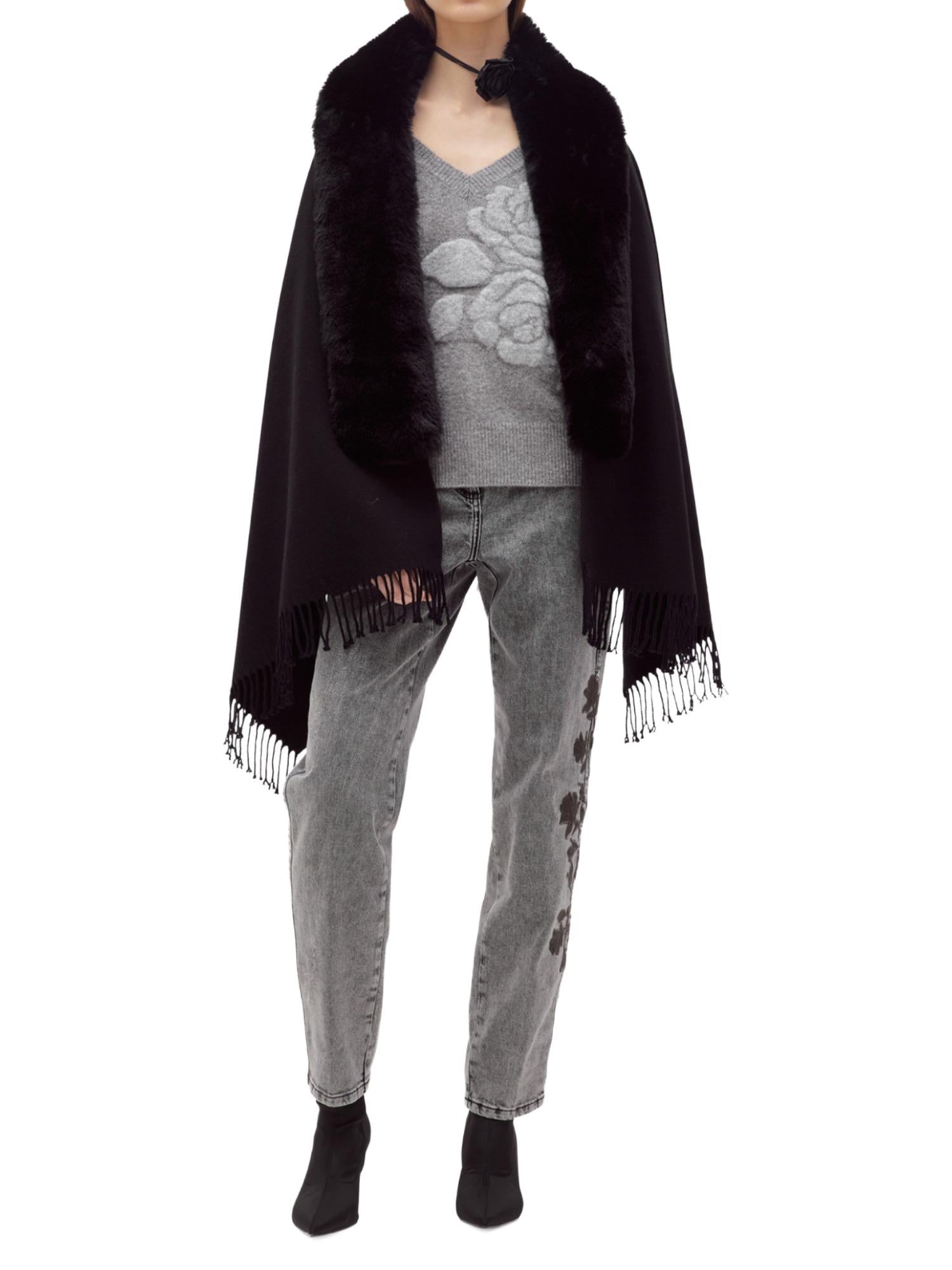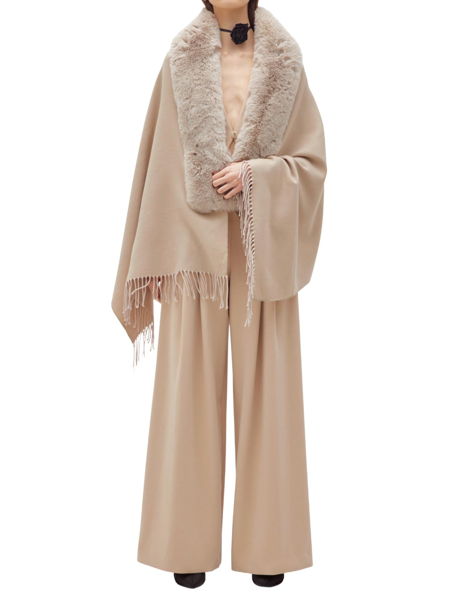Stola Blugirl 65x170 cm realizzata in maglia di viscosa con collo in ecopelliccia e frange.