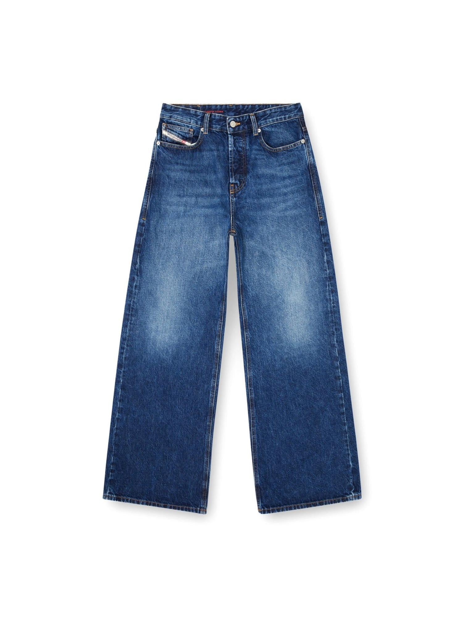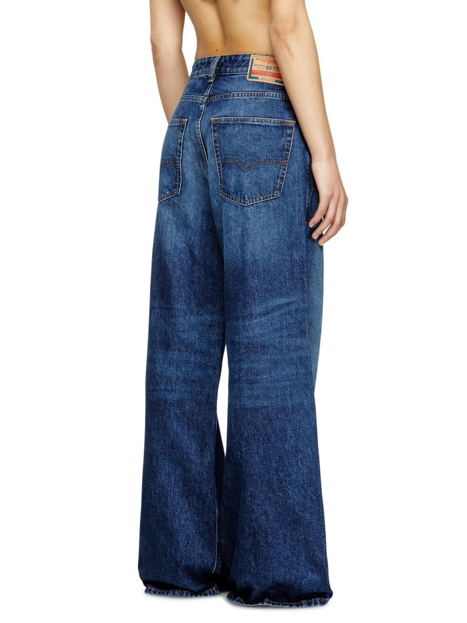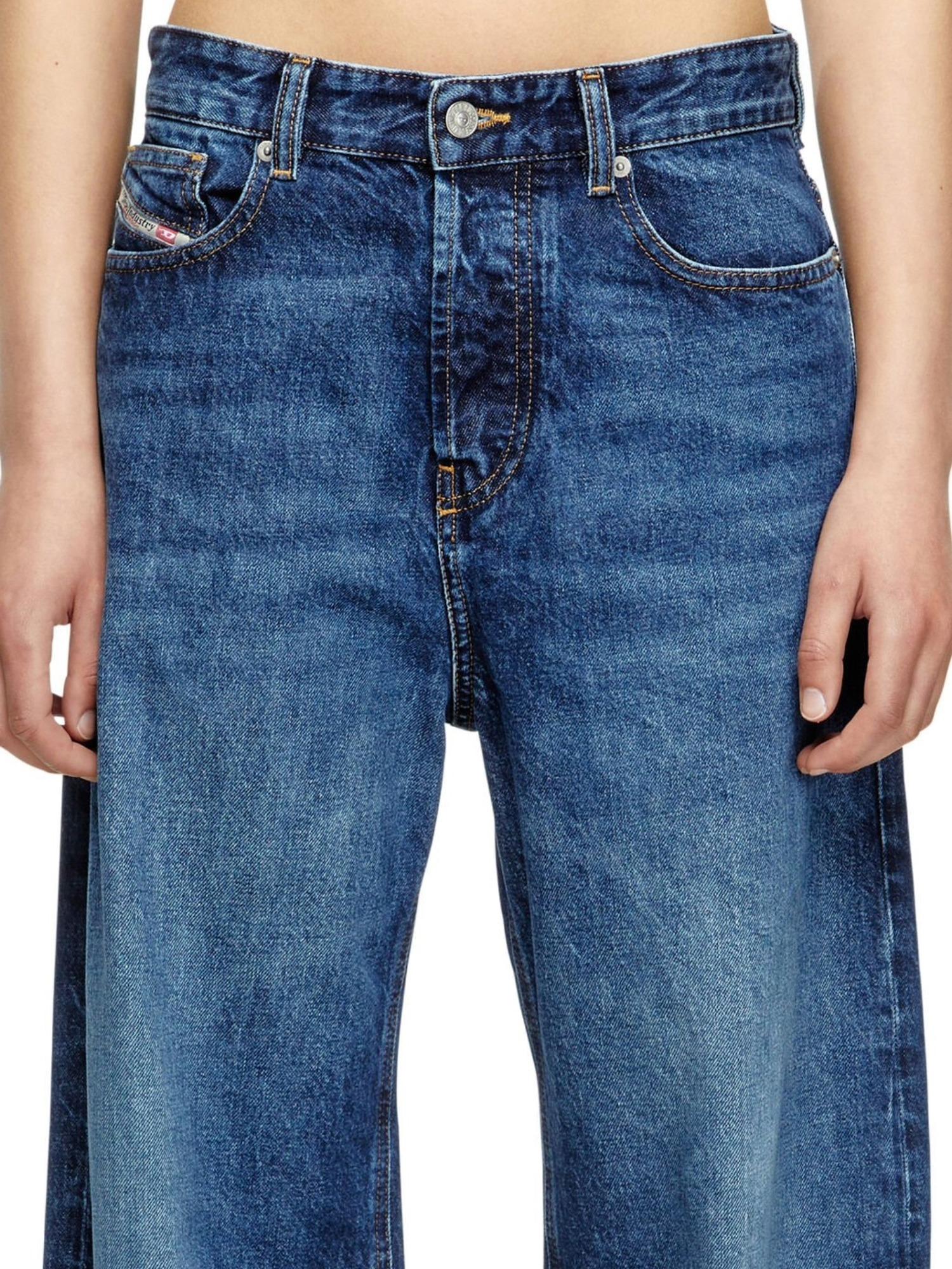 Jeans relaxed fit a vita e cavallo basso Diesel, realizzato in denim fermo con chiusura tramite zip e bottone, passanti per la cintura, salpa logata e 5 tasche.