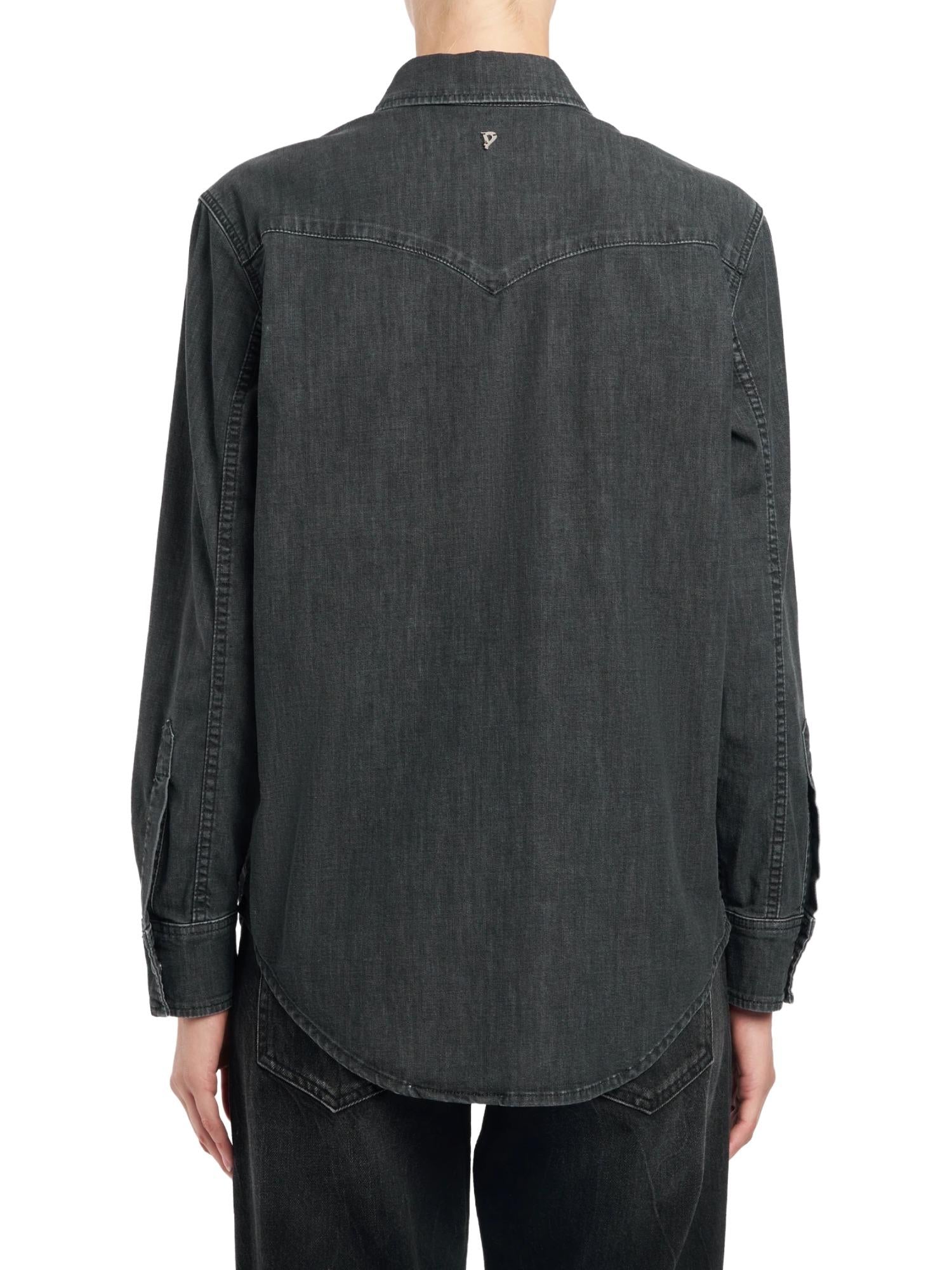 Camicia di jeans Dondup realizzata in denim elasticizzato con abbottonatura frontale, colletto all'italiana e tasche sul petto.