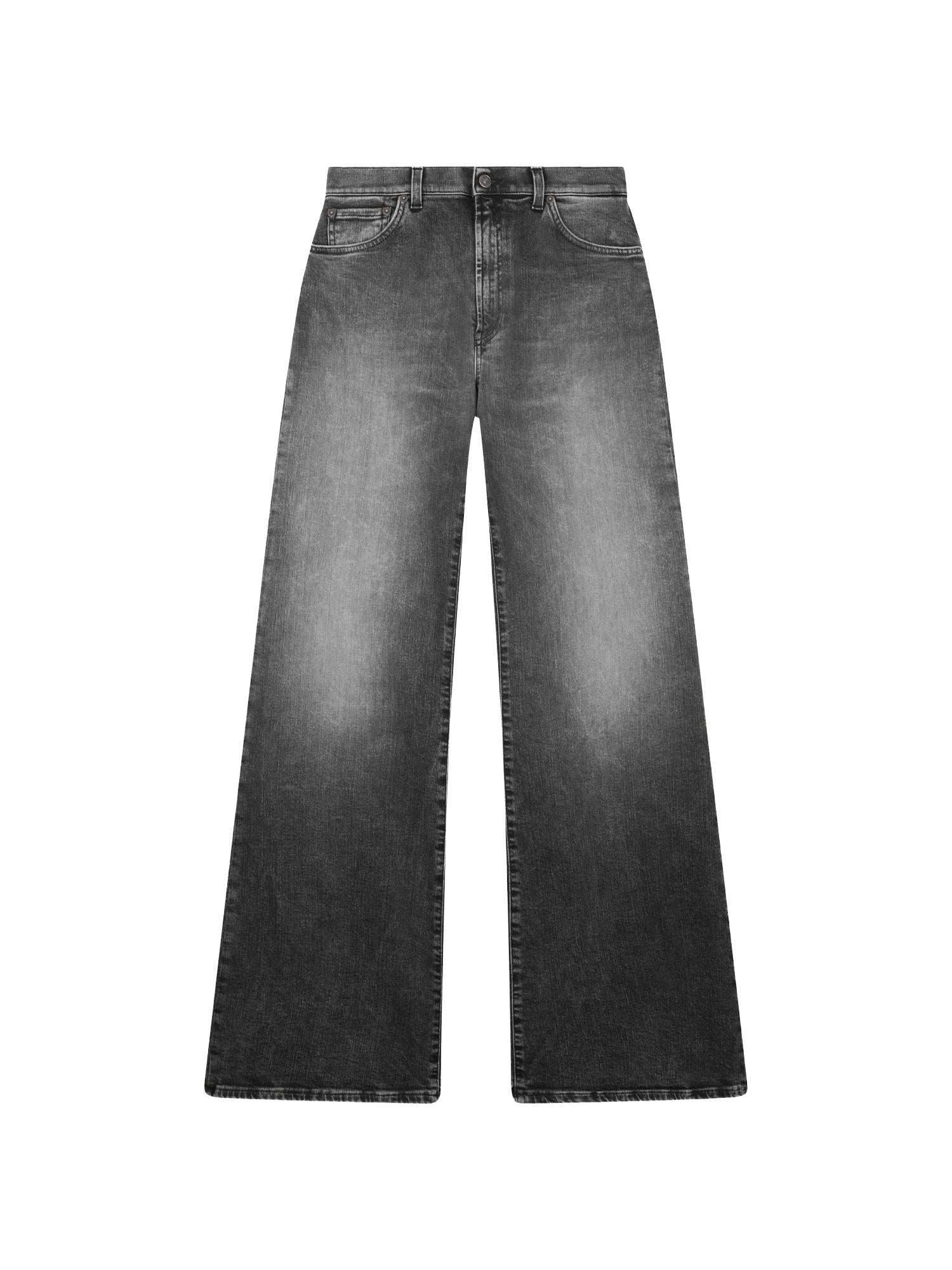 Jeans wide leg Dondup realizzato in denim elasticizzato e lyocell con chiusura tramite zip e bottone, passanti per la cintura, salpa logata in pelle e 5 tasche.