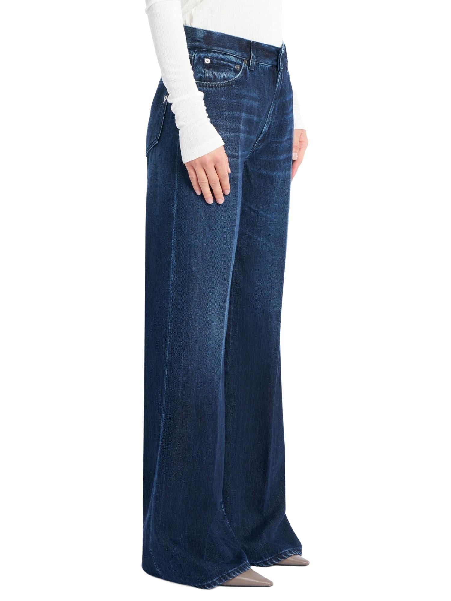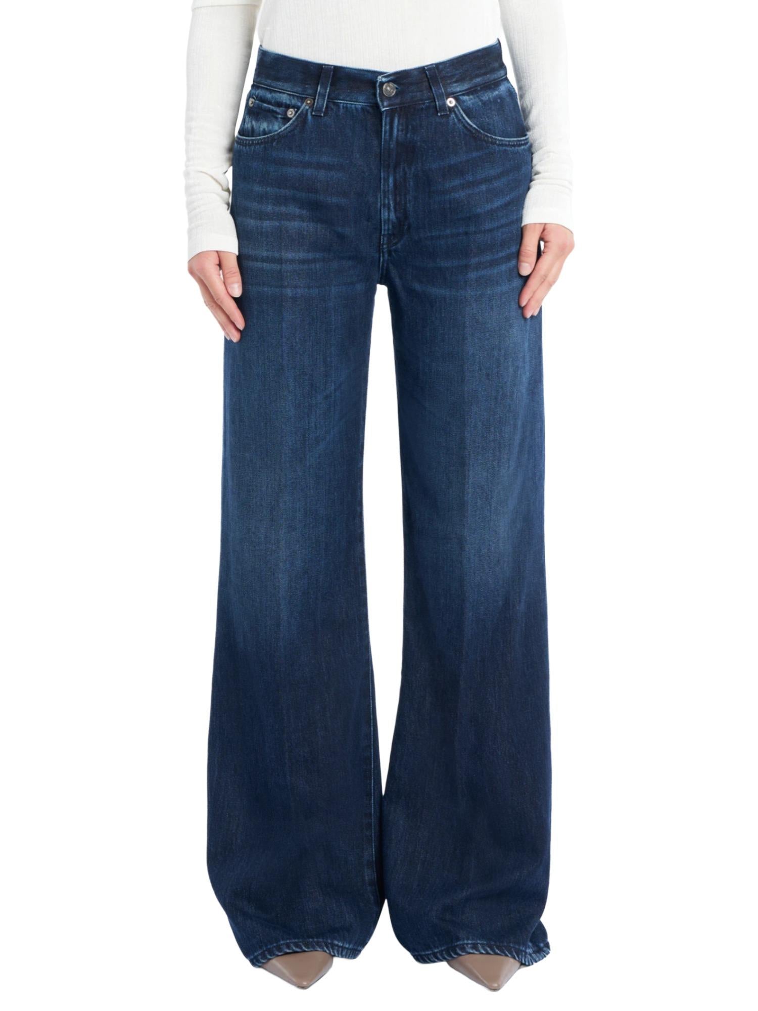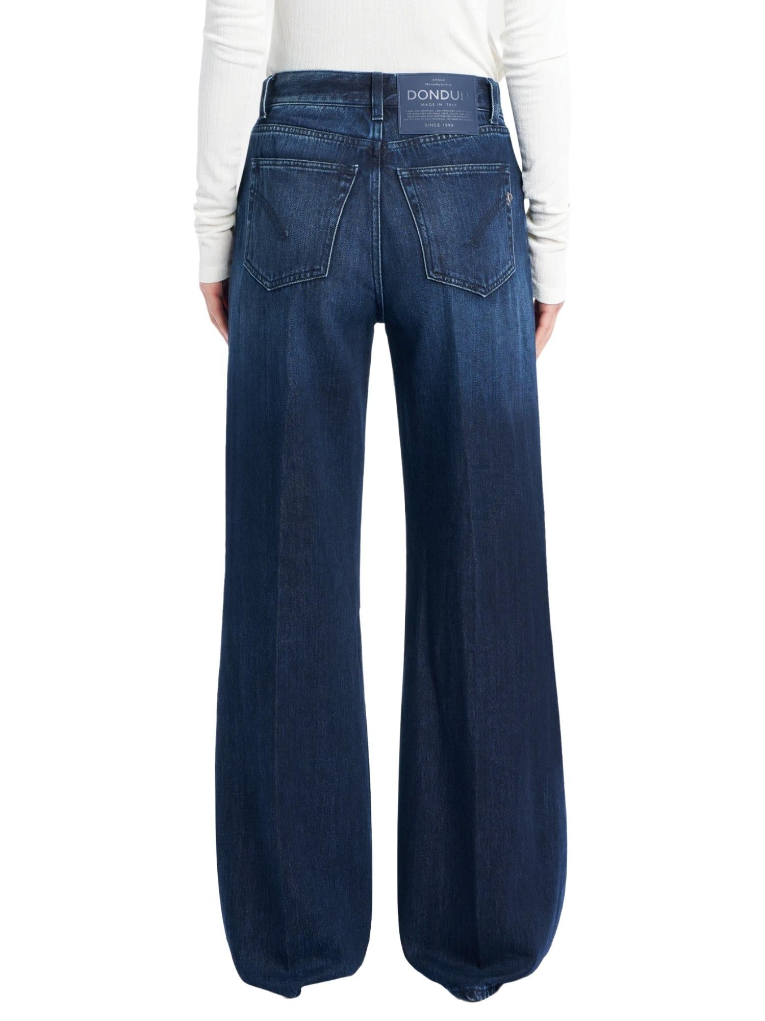 Jeans wide leg Dondup realizzato in denim di cotone e lyocell con chiusura tramite zip e bottone, passanti per la cintura, salpa logata e 5 tasche.