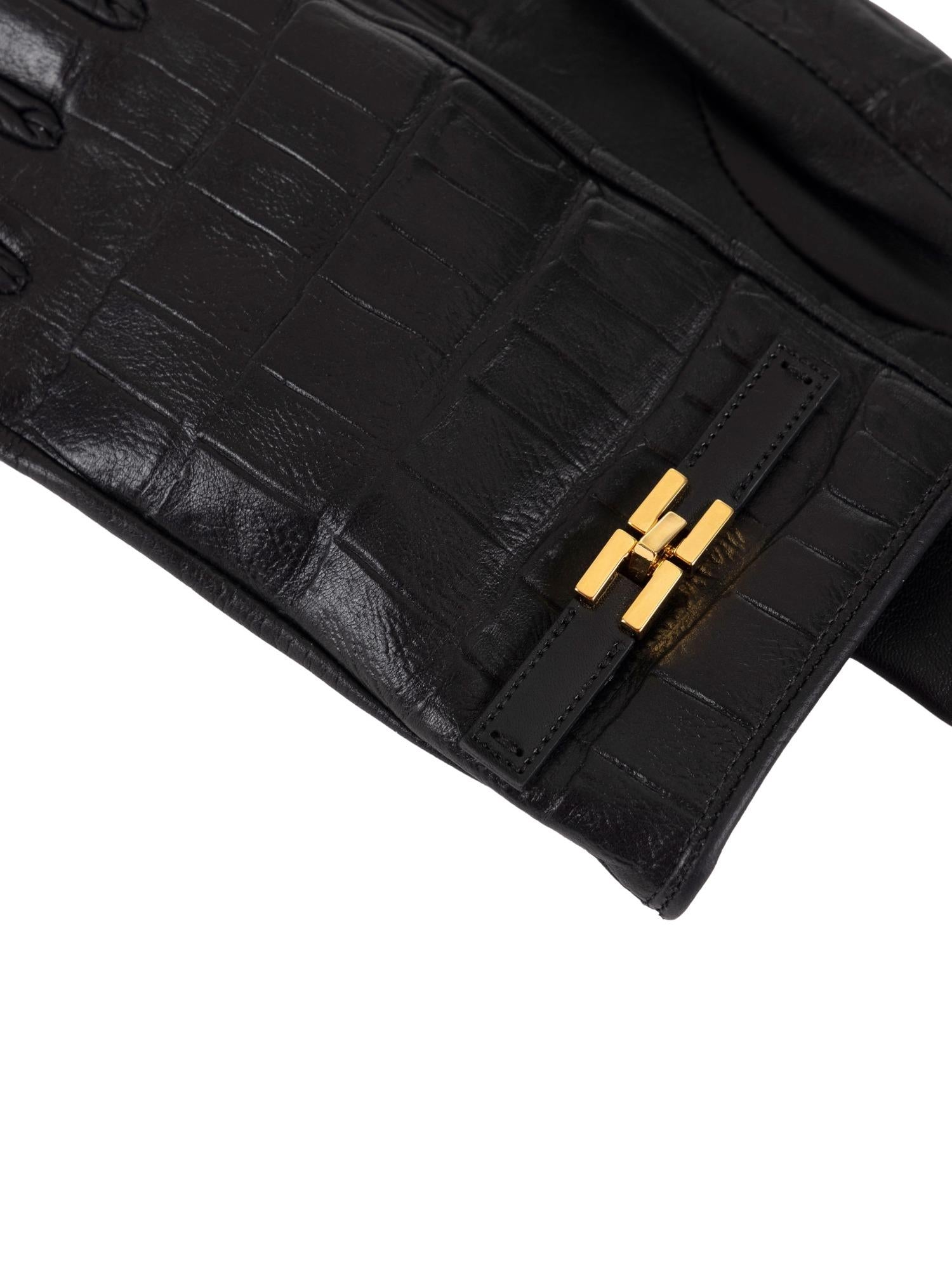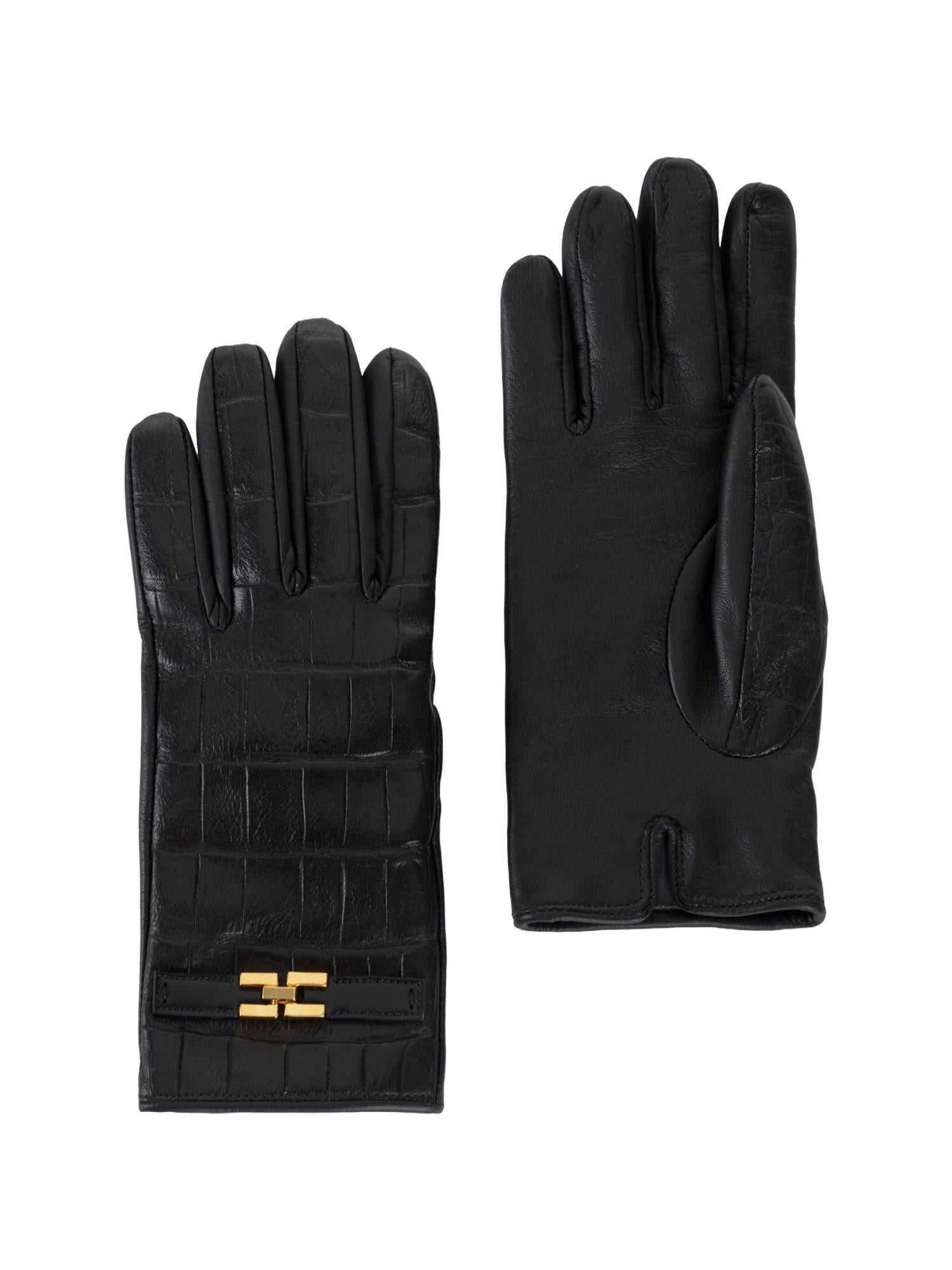 Guanti Elisabetta Franchi realizzati in vera pelle stampa cocco con fodera interna in lana e morsetto logato in metallo oro.