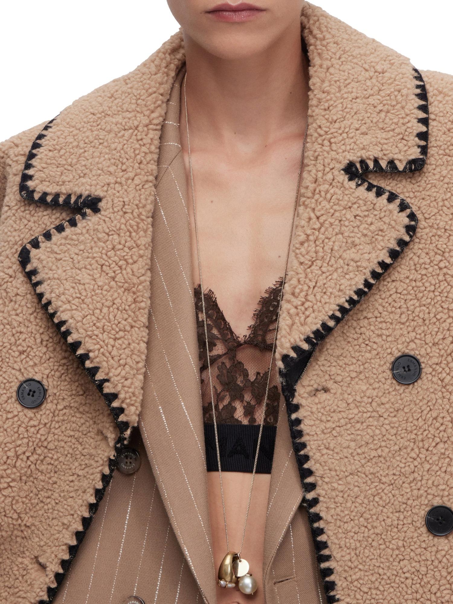 Cappotto midi Ermanno Firenze realizzato in montone ecologico con chiusura doppiopetto, revers a lancia, tasche a toppa e profili ricamati.
