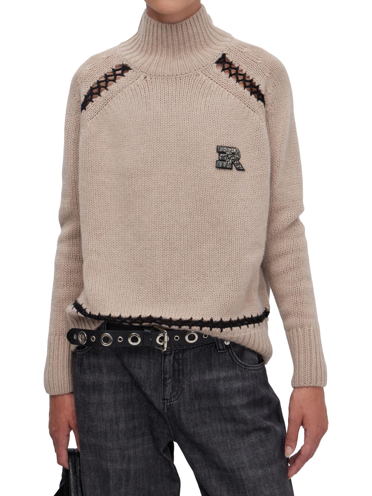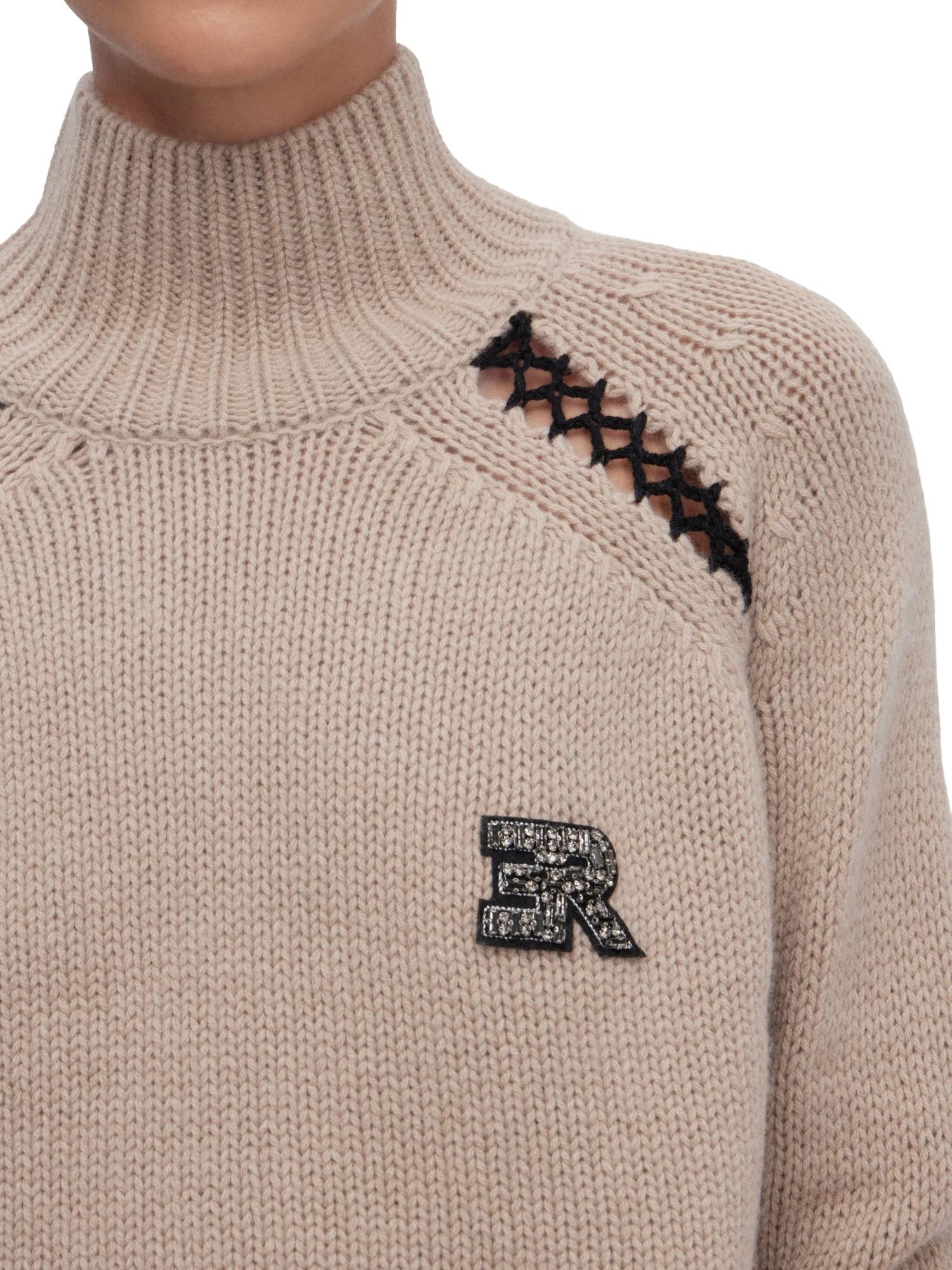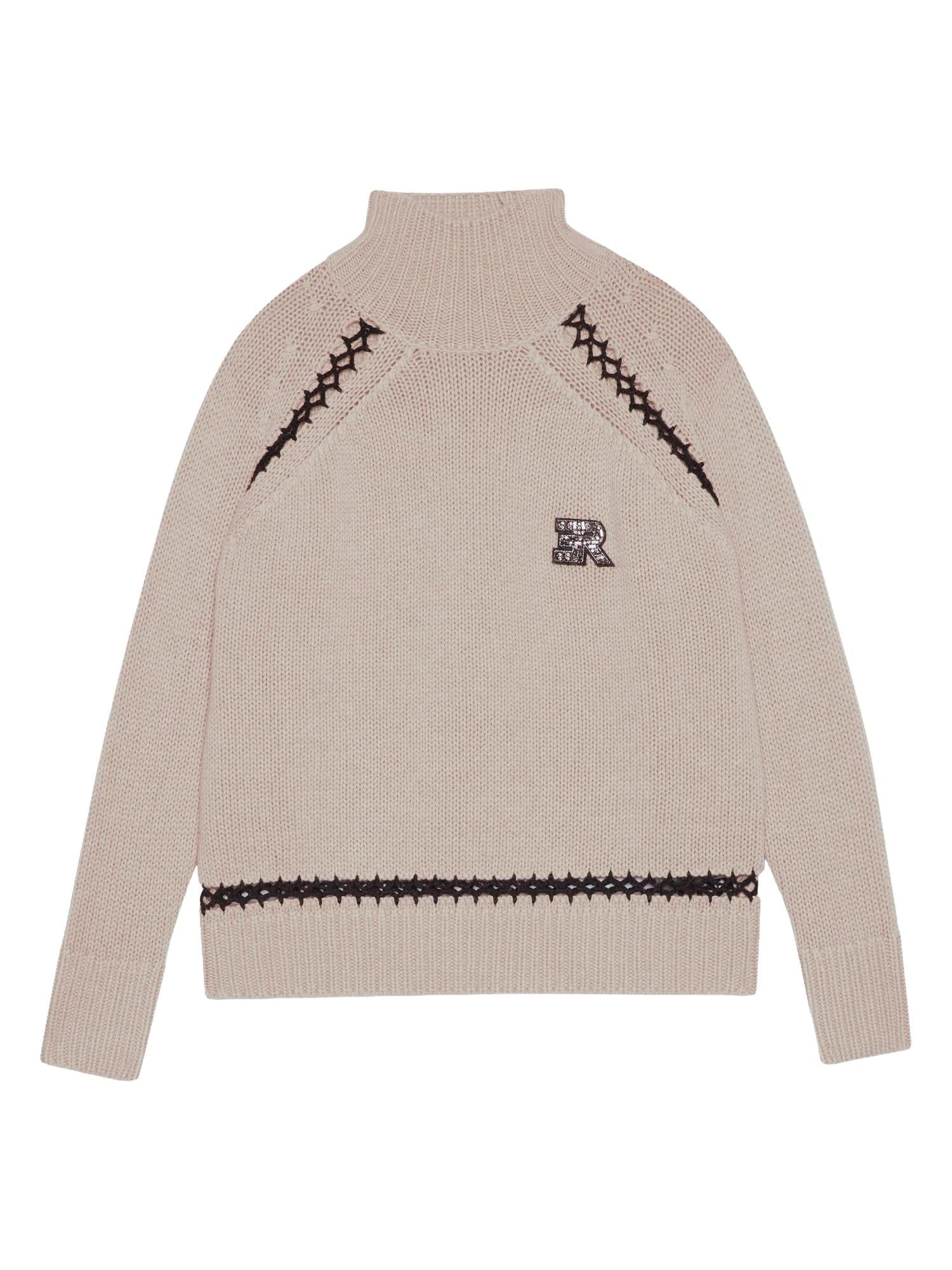 Maglia a dolcevita Ermanno Firenze realizzata in misto lana e cashmere con logo gioiello e intrecci criss cross ricamati.