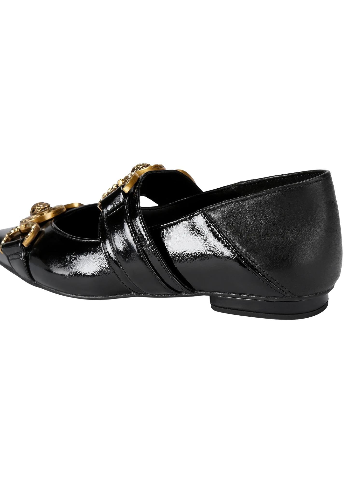 Mocassini Kurt Geiger realizzati in vera pelle lucida con parte posteriore indossabile normalmente o piegata, suola in gomma e dettagli gioiello nella parte frontale.