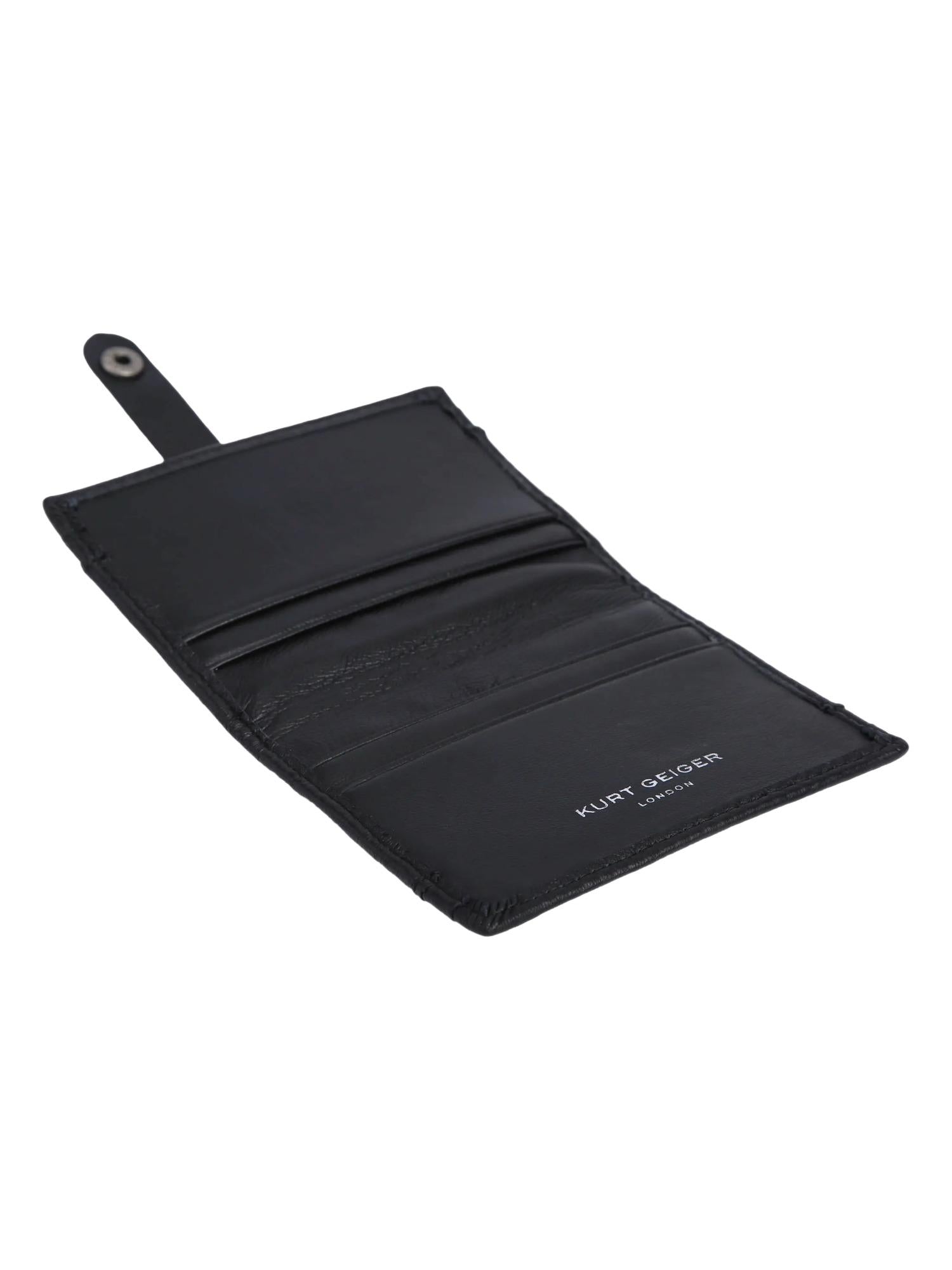 Portacarte Kurt Geiger realizzata in vera pelle trapuntata con chiusura tramite bottone e logo dell'aquila superiore.