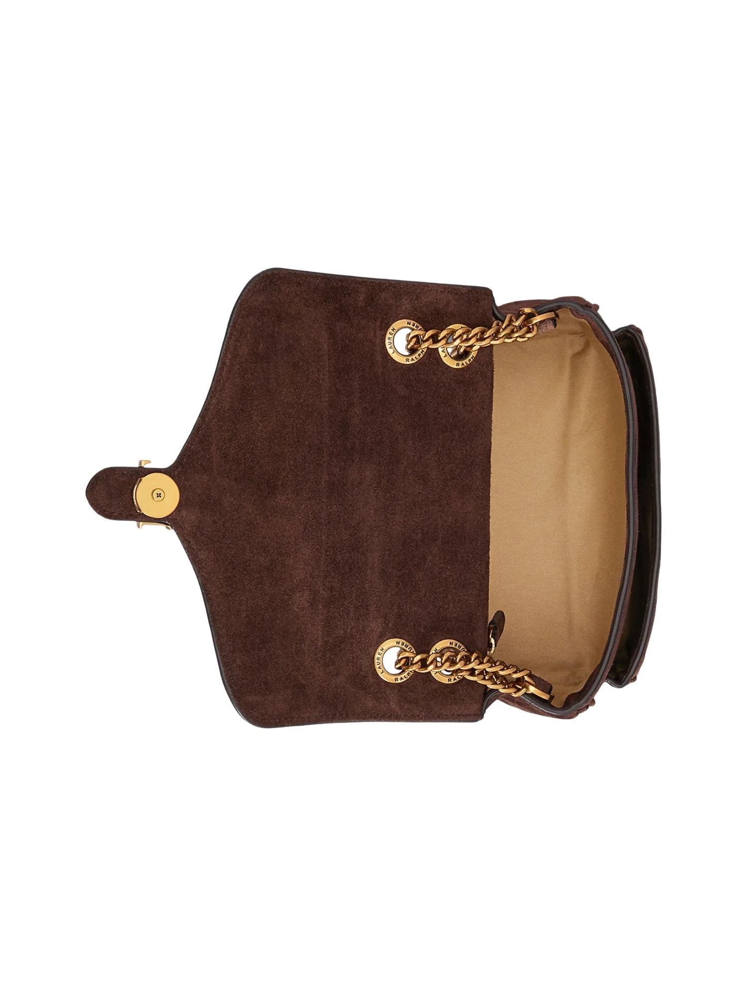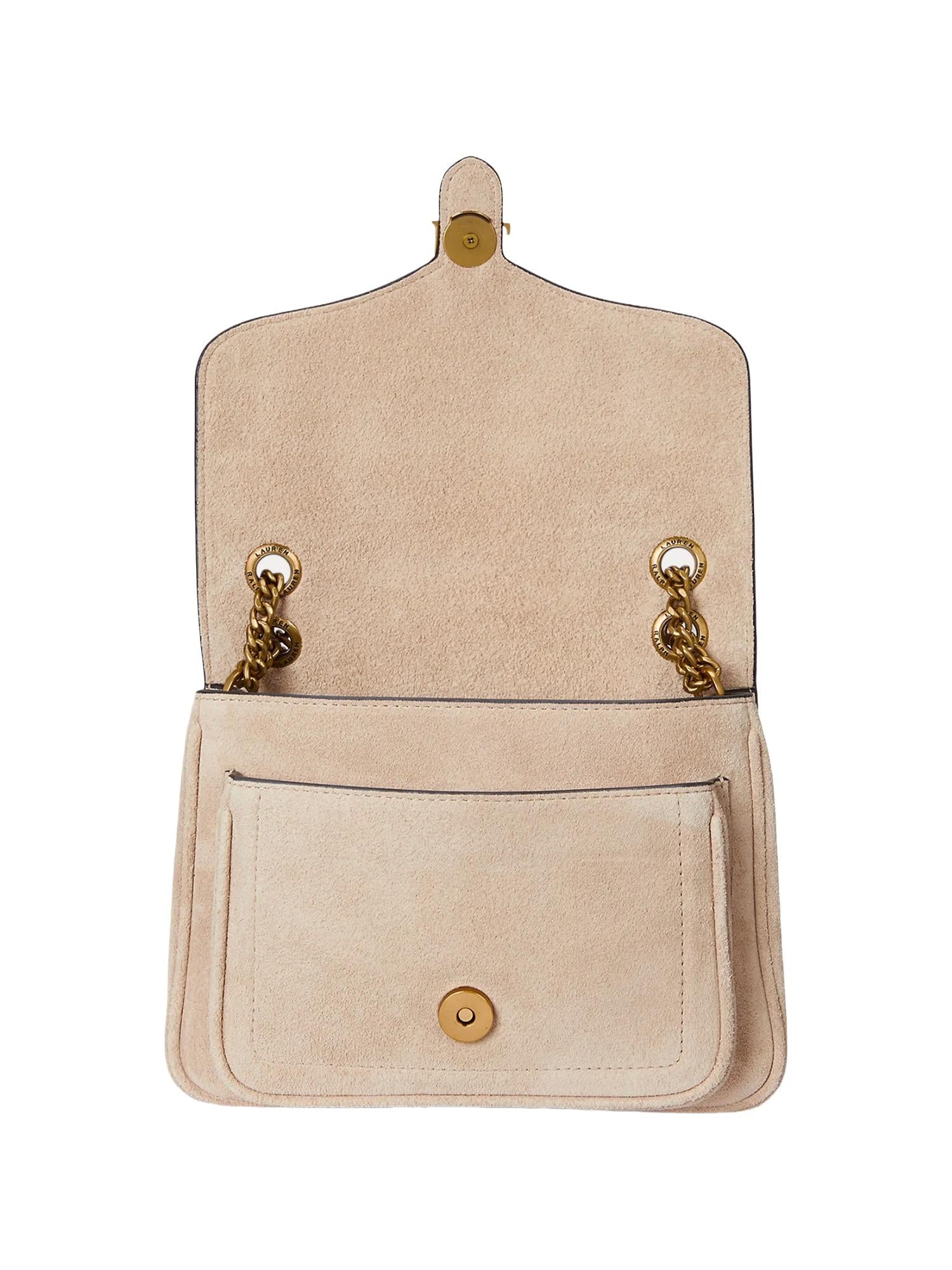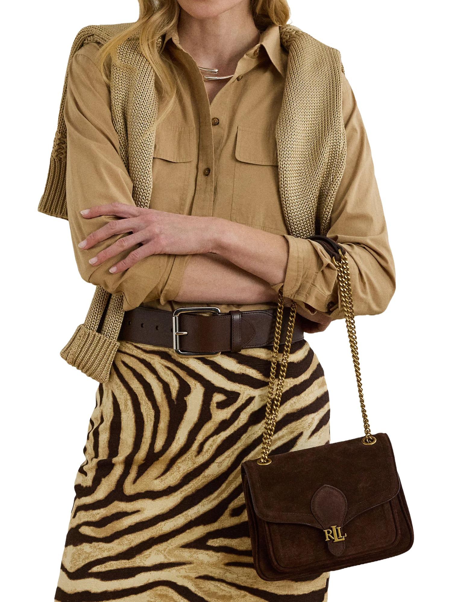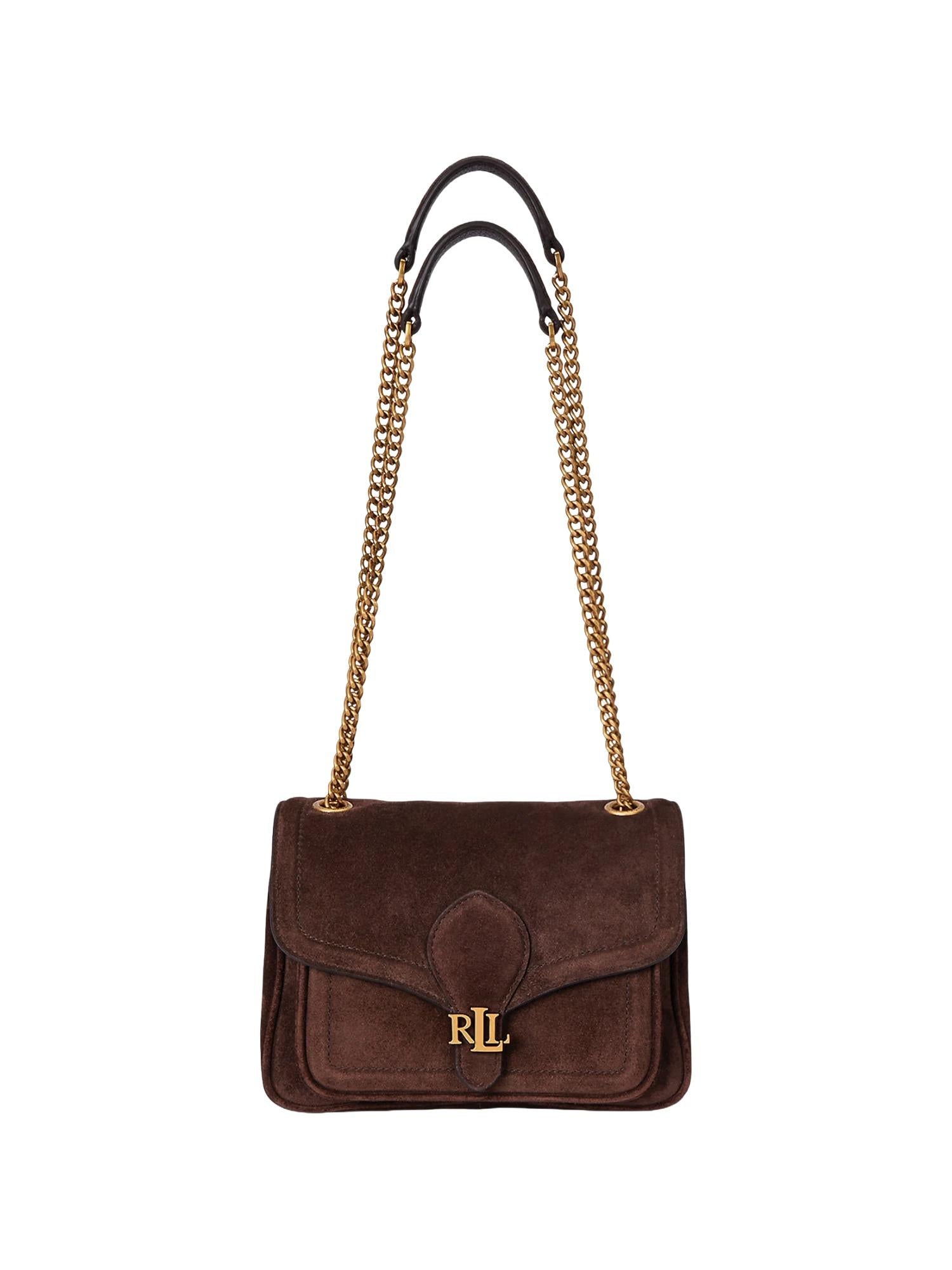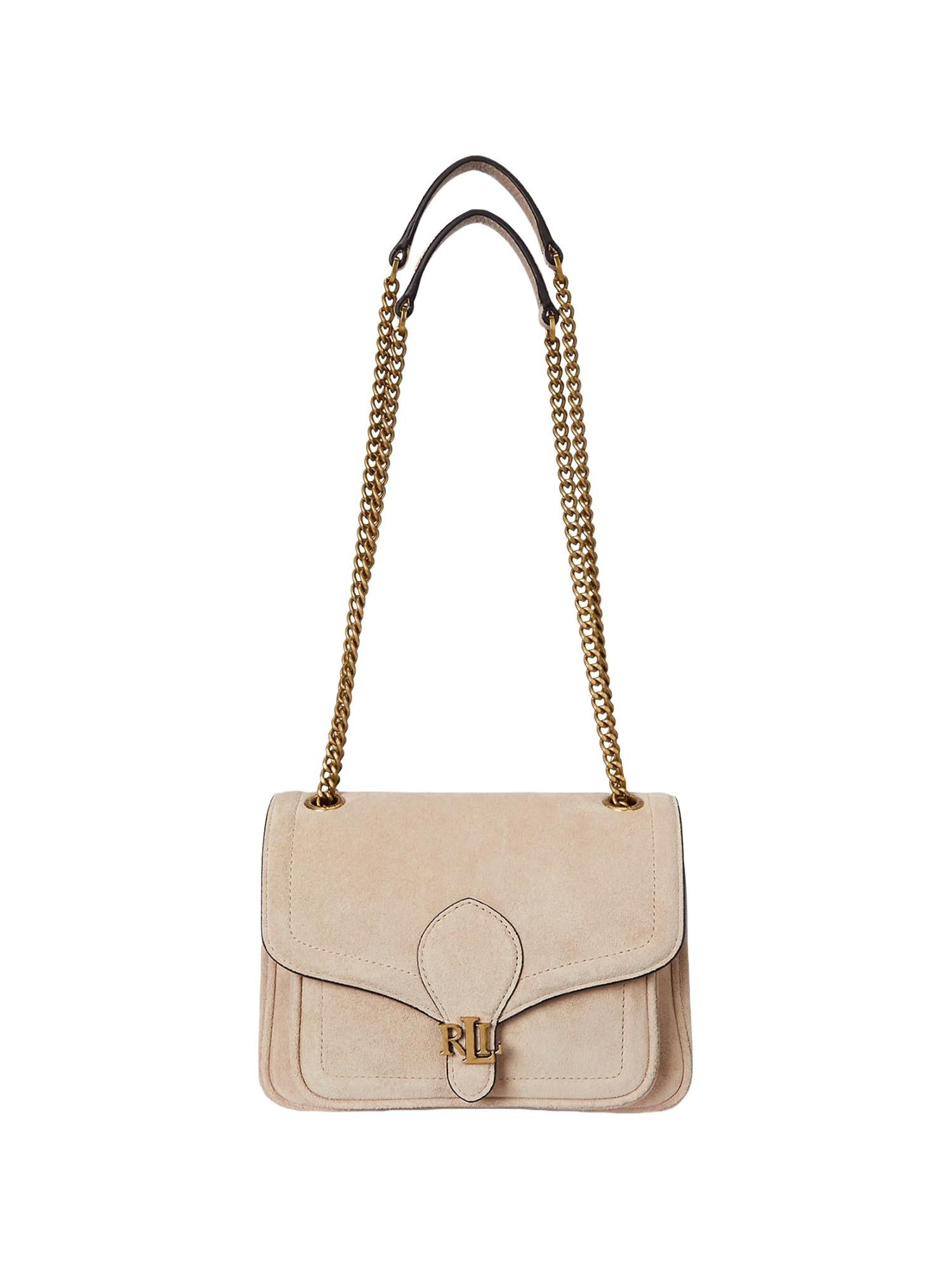 Borsa di piccole dimensioni Lauren Ralph Lauren realizzata in vera pelle scamosciata con chiusura tramite bottone, tracolla in catena con spallaccio, unico scomparto interno, tasca frontale e placca logo sul davanti.