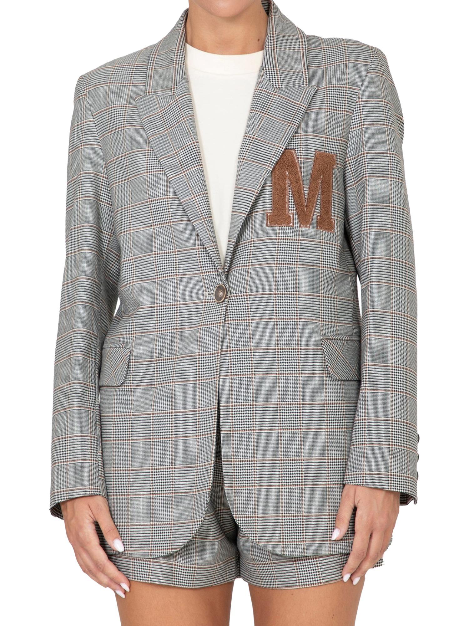 Giacca Marc Ellis realizzati in misto poliestere, viscosa ed elastane con chiusura monopetto tramite singolo bottone, revers a lancia, tasche con patta, design a quadri e logo M in spugna applicato sul petto.