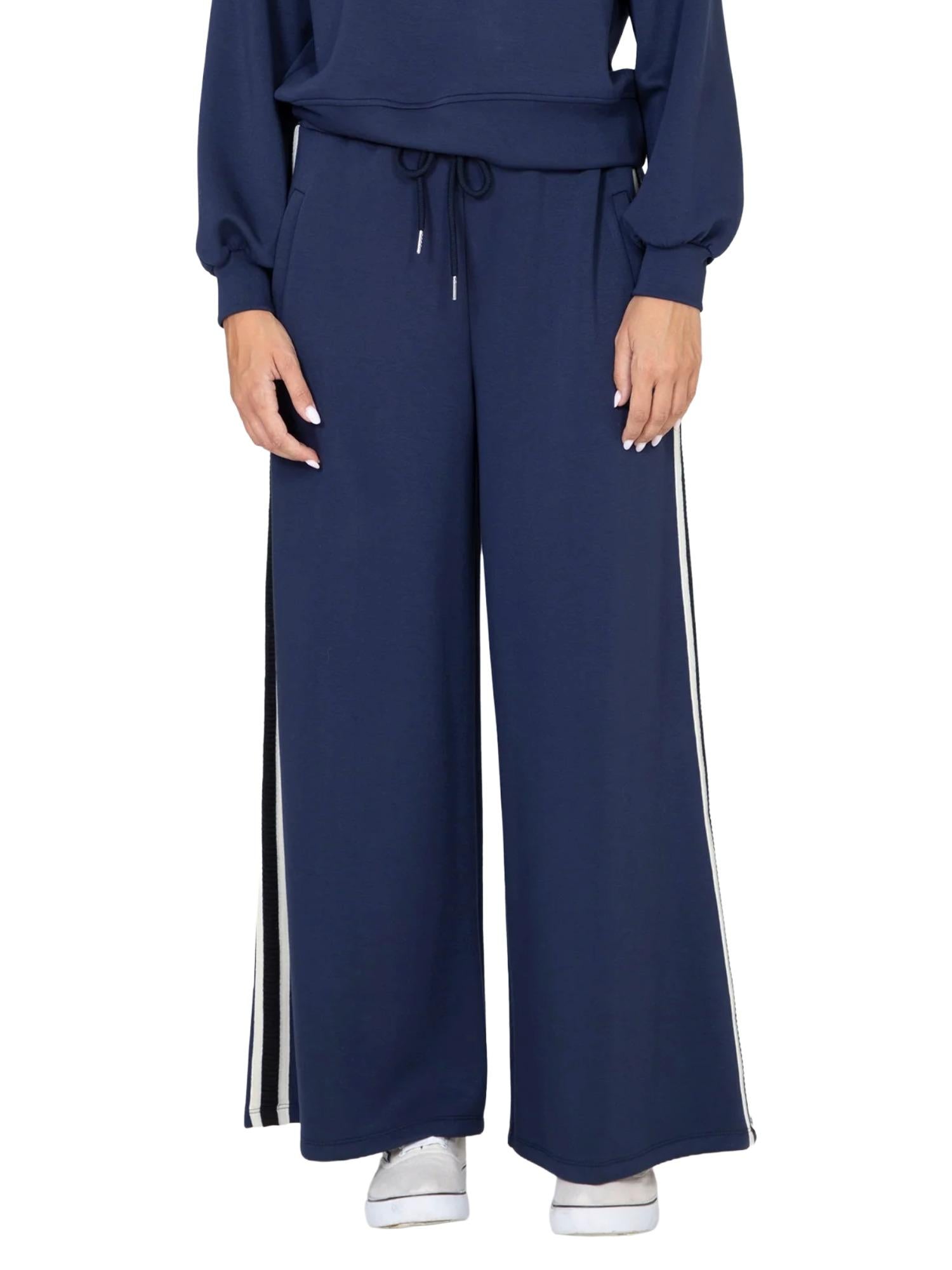 Pantalone ampio Marc Ellis realizzato in misto viscosa, poliestere ed elastane con girovita con coulisse, tasche e bande laterali a contrasto.
