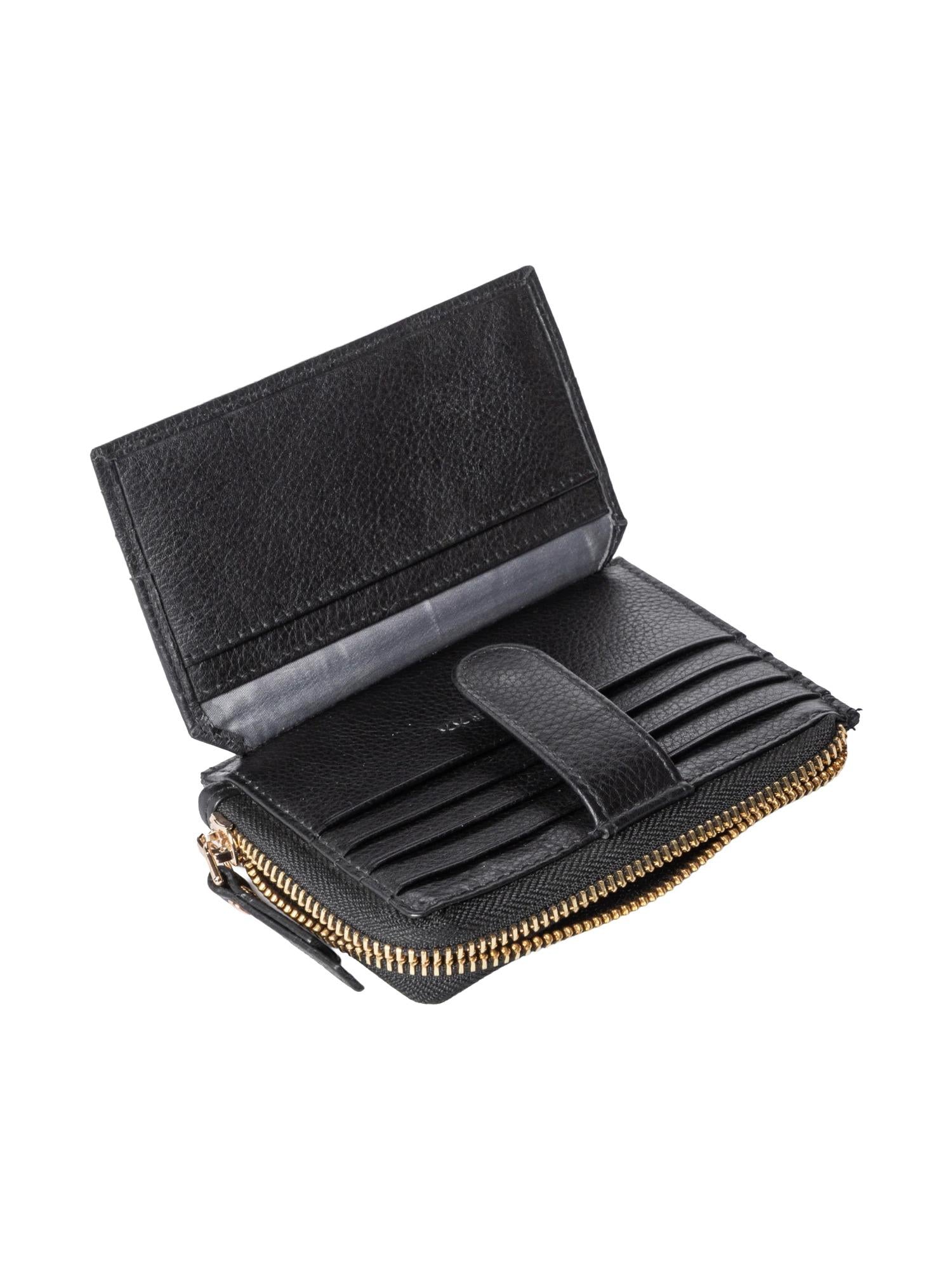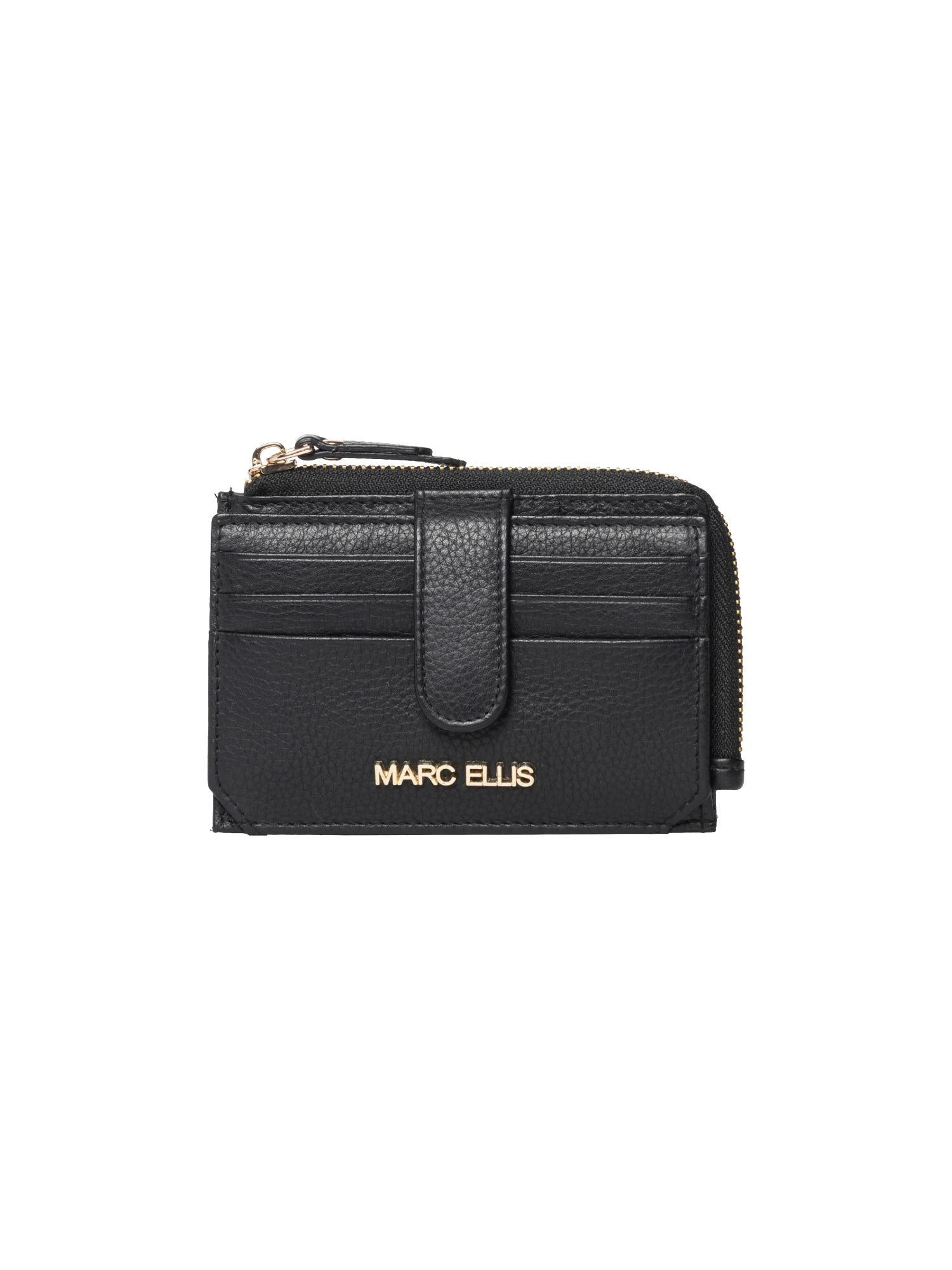 Portacarte Marc Ellis realizzato in pelle martellata con chiusura tramite bottone, taschino portamonete con zip e vari scomparti portacarte.