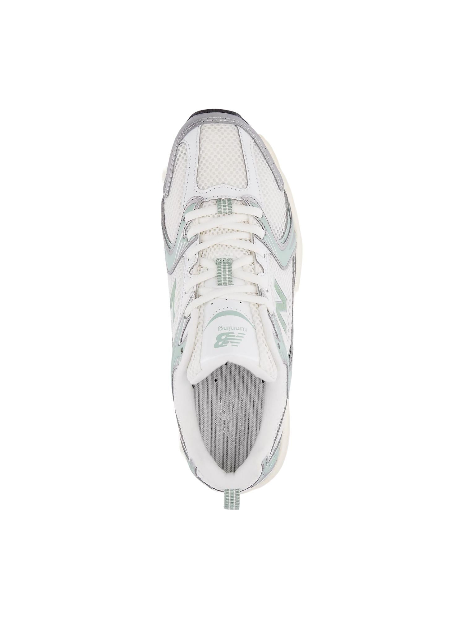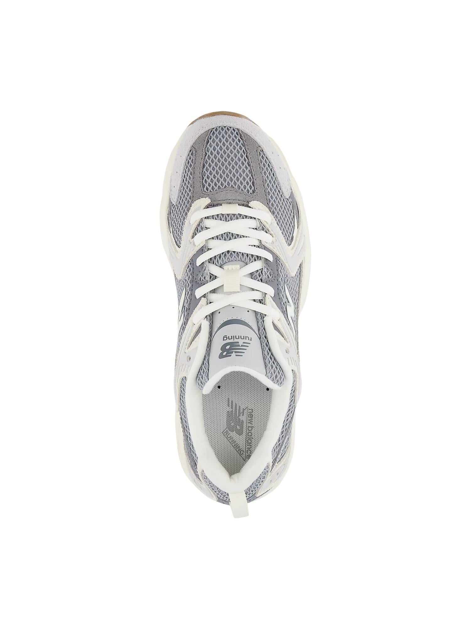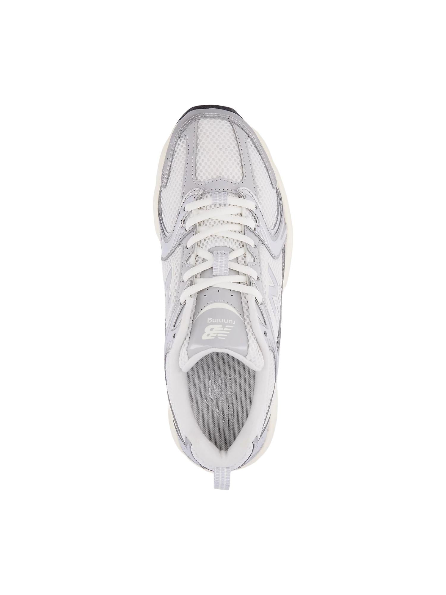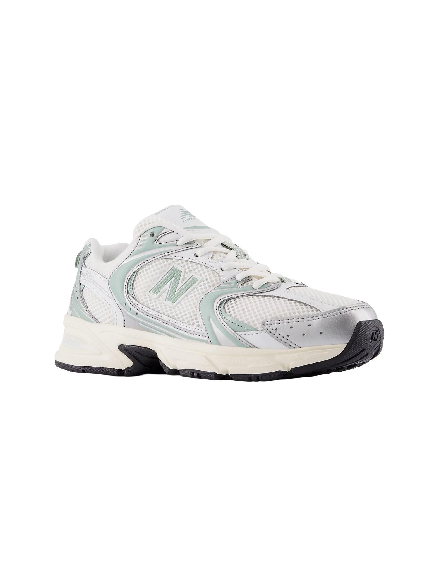 Sneakers New Balance modello 530 realizzate in pelle con inserti in mesh, allacciatura frontale, suola in gomma, intersuola con ammortizzazione Abzorb e logo N laterale.