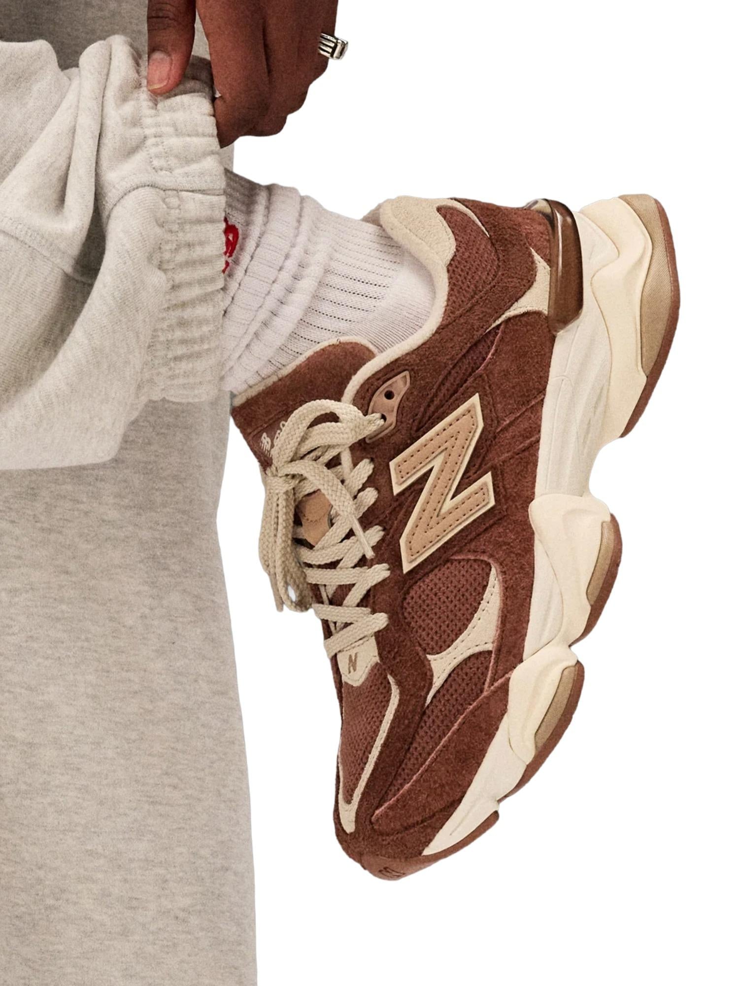 Sneakers New Balance modello 9060 con tomaia realizzata in mesh con inserti in pelle/suede/nabuk, suola in gomma, intersuola con tecnologie Abzorb e SBS che rendono l'ammortizzazione ottimale, allacciatura frontale e logo N laterale.