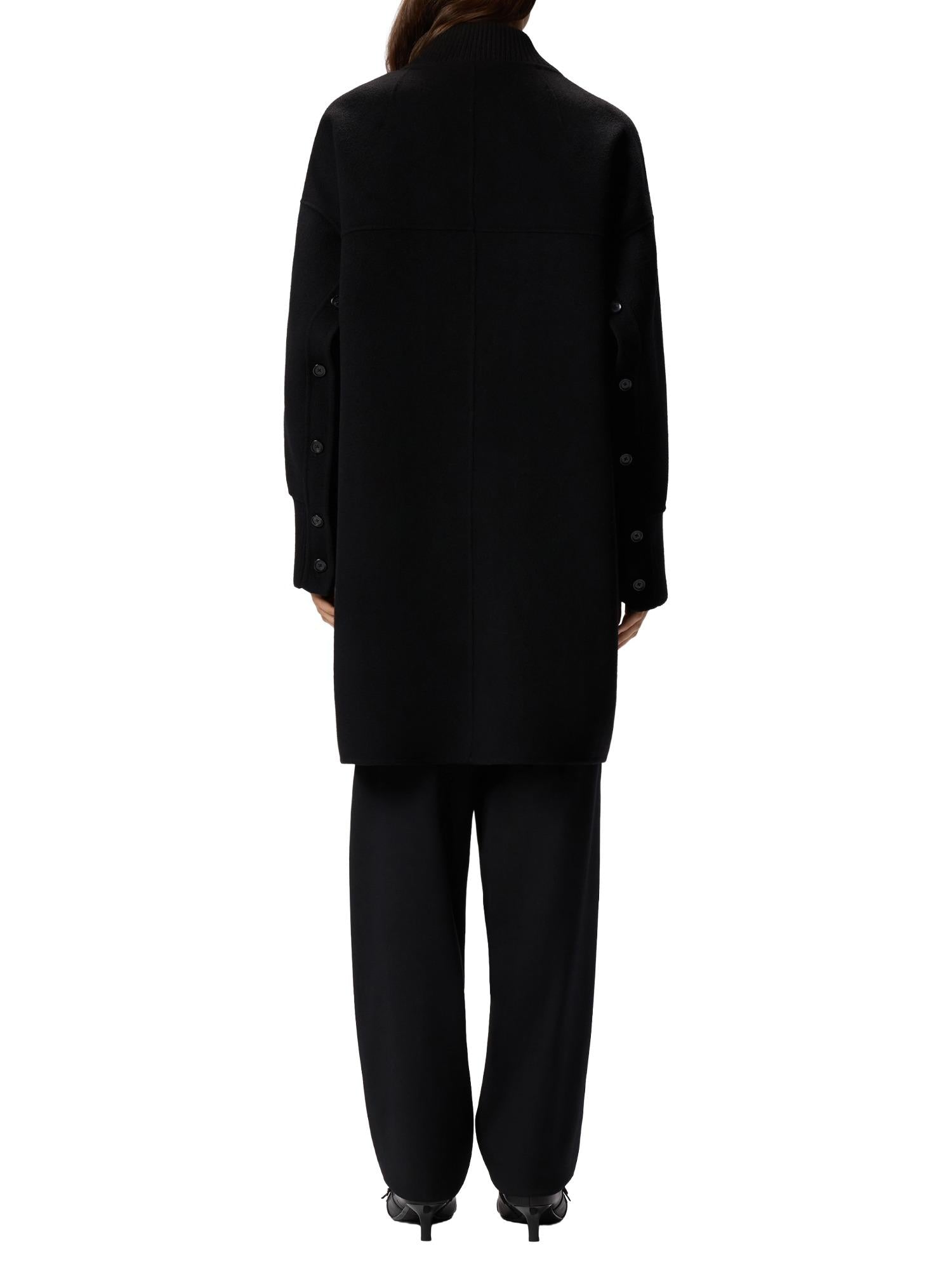 Cappotto midi Pinko realizzato in pura lana con abbottonatura frontale, tasche oblique e bottoni sul retro delle maniche.